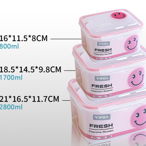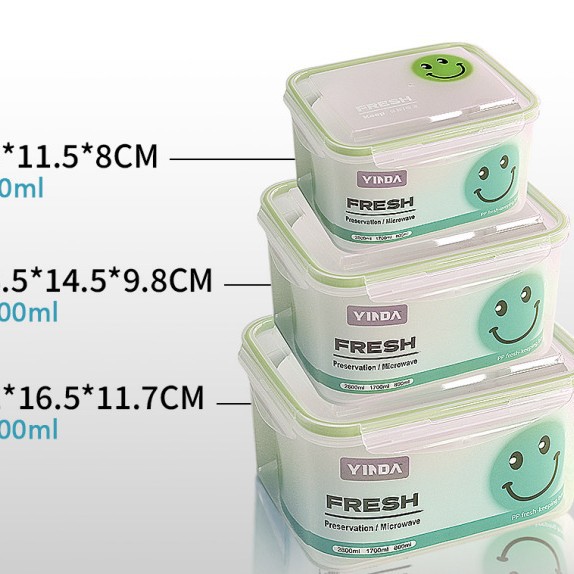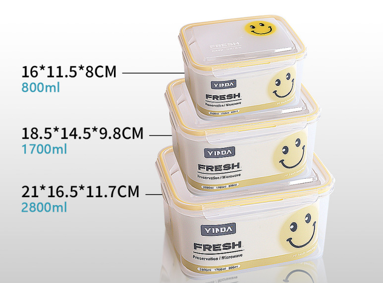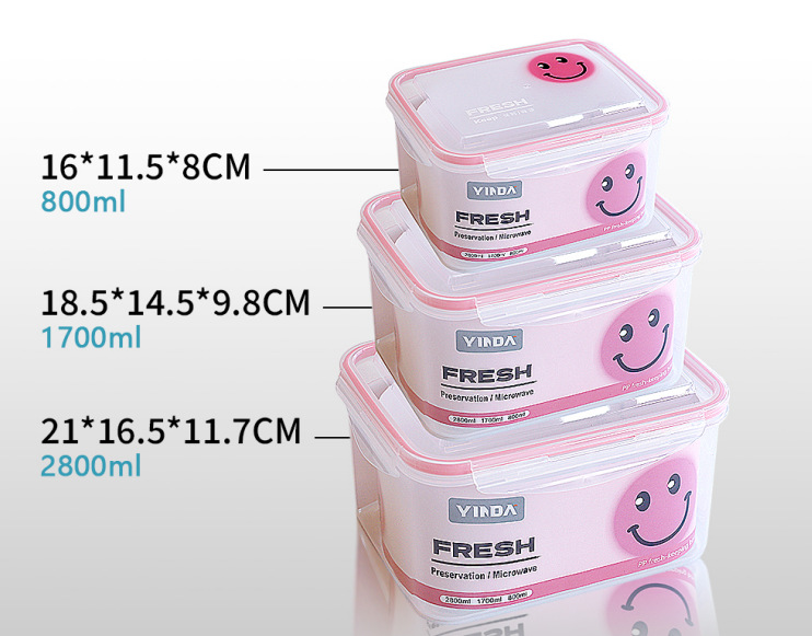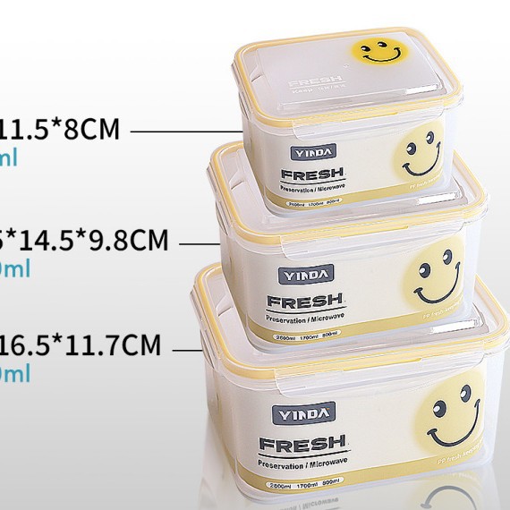 笑脸简约保鲜盒新款透明塑料厨房外出便携保鲜水果蔬菜保鲜盒跨境