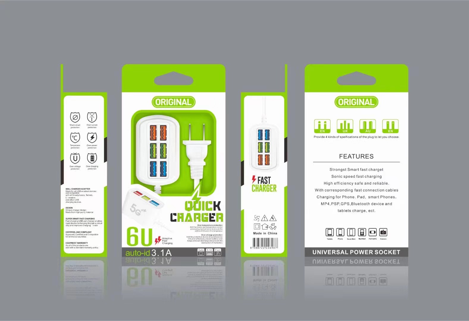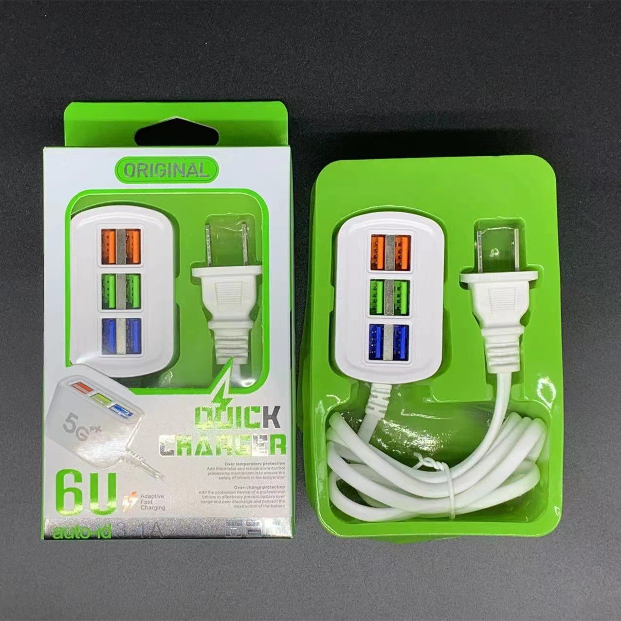新款插座长充电器6usb适用于苹果安卓手机通用多口充头排插外贸3a