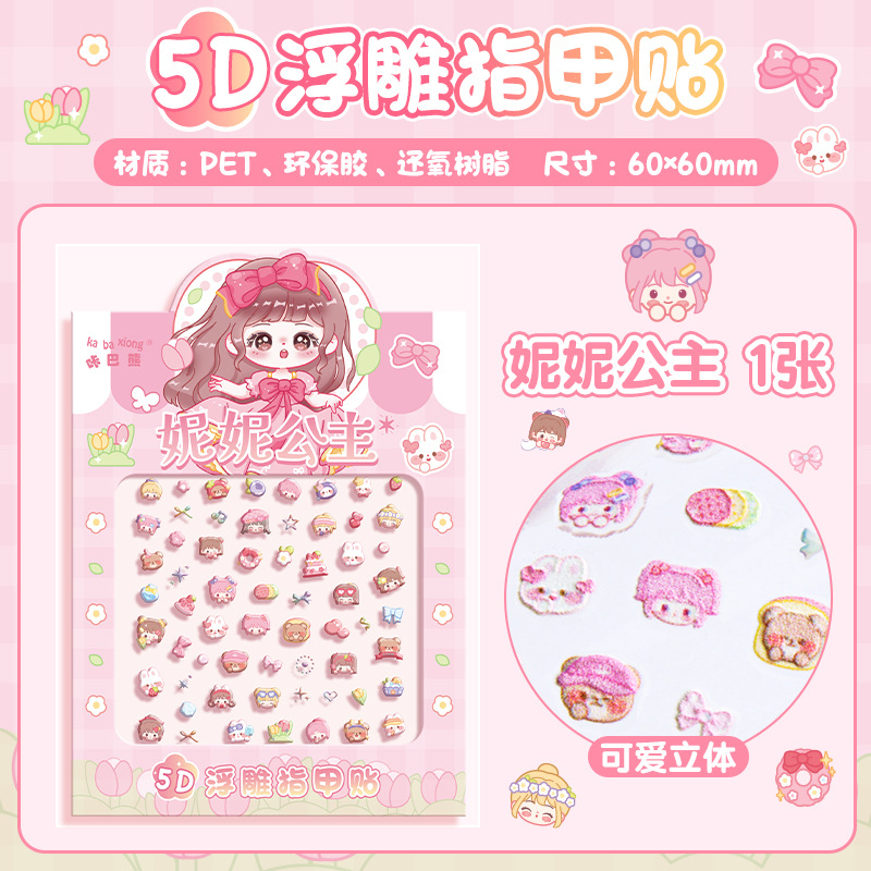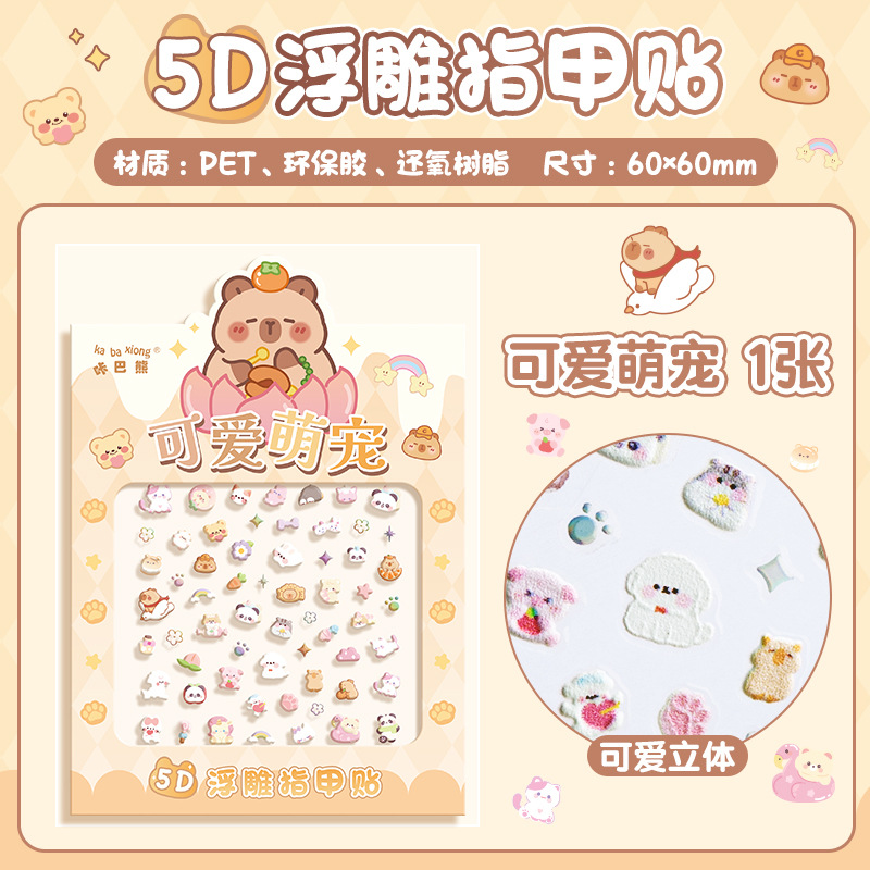 可可爱爱ins夏日果冻短甲贴纸搞怪美甲贴纸透明立体贴纸浮雕立体