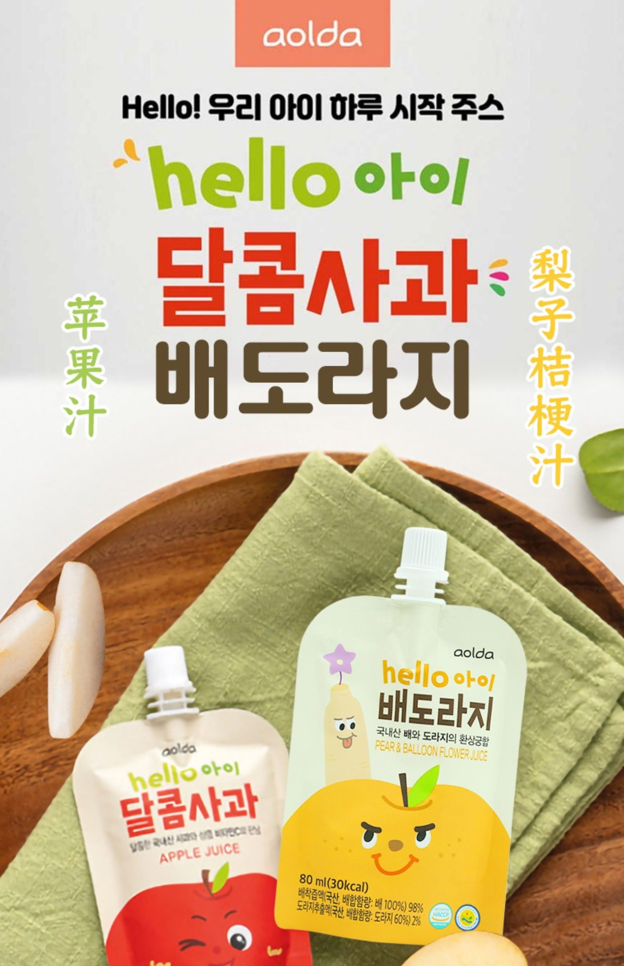 韩国进口福乐正哈喽小孩果汁甜味苹果汁梨子桔梗汁风味饮料