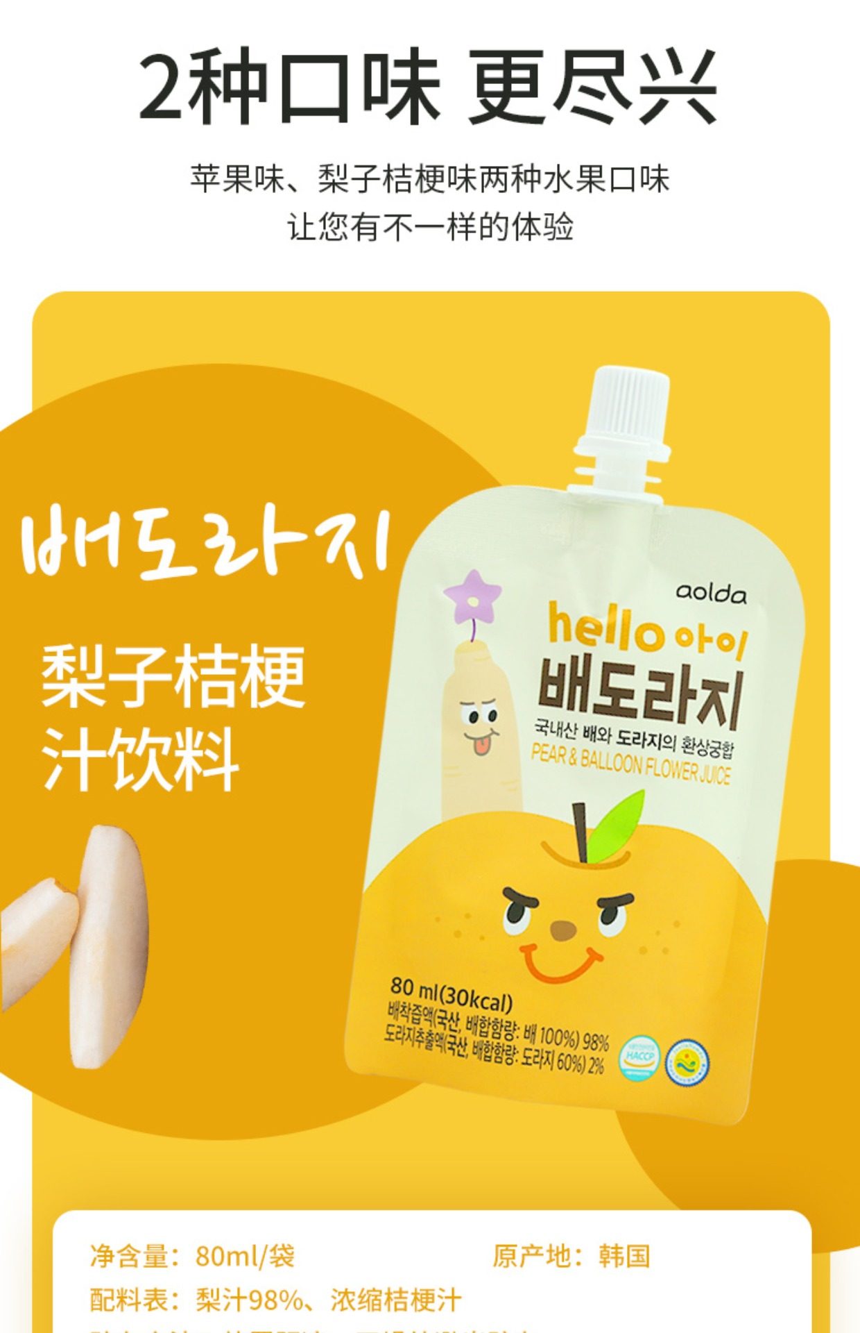 | pear platycodon grandiflorum juice 80ml(梨子桔梗汁80ml) | USD $1.28 | 8 piece available |