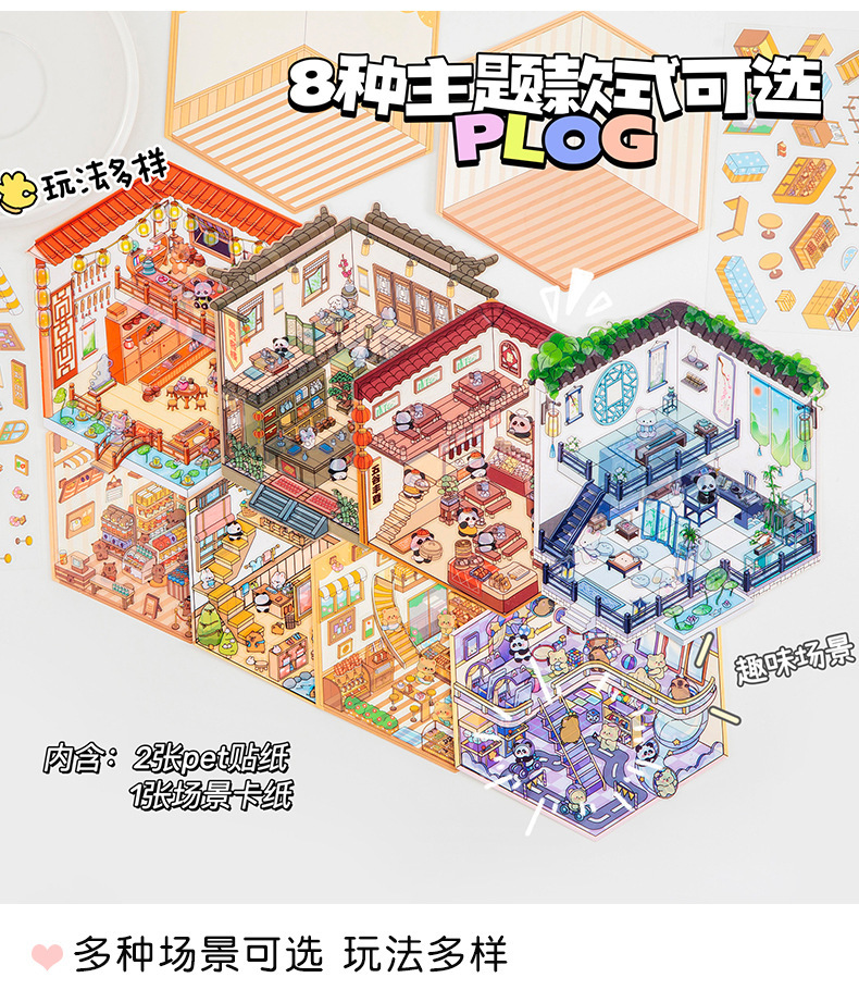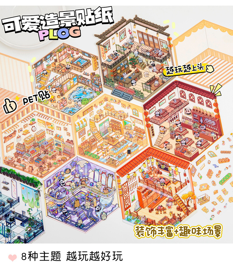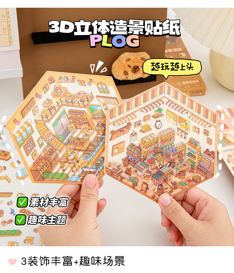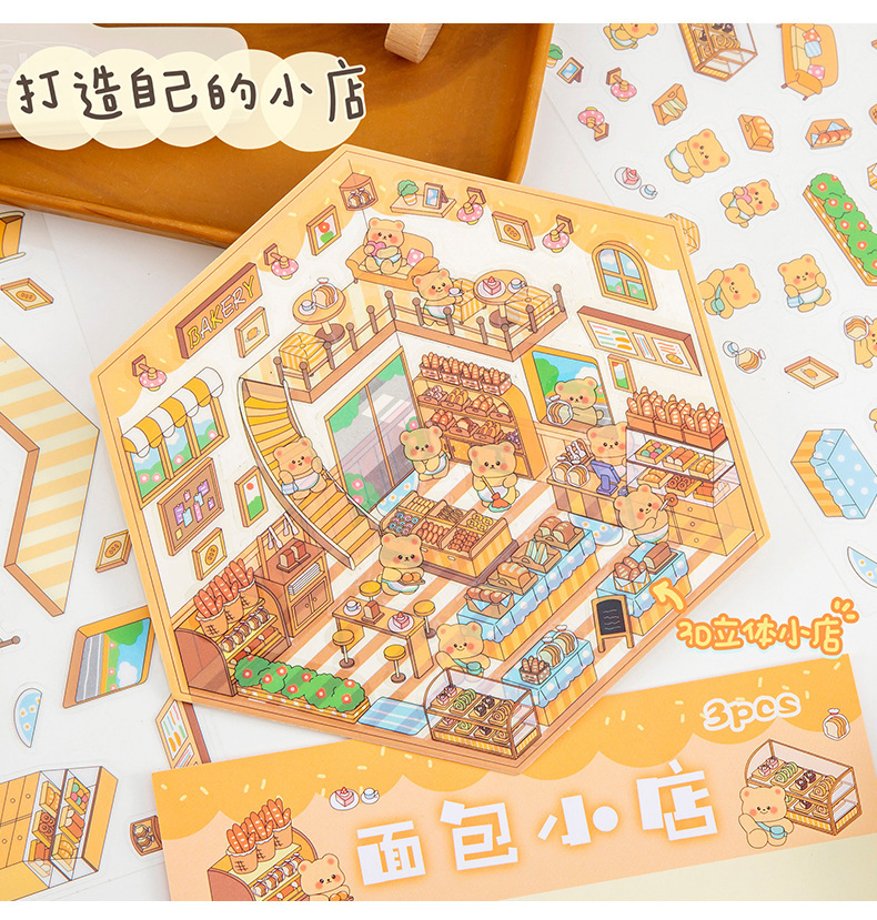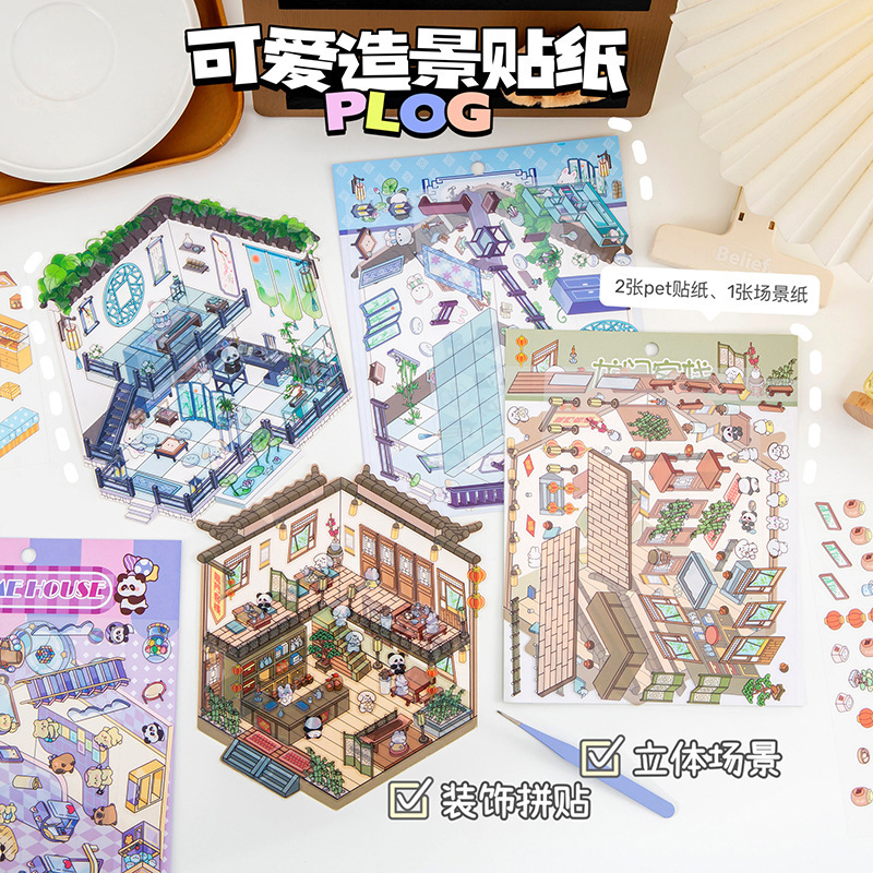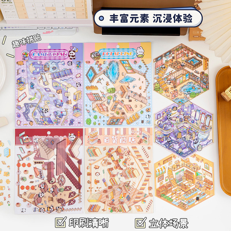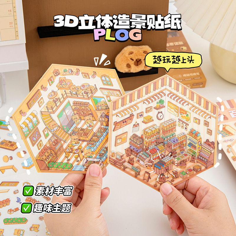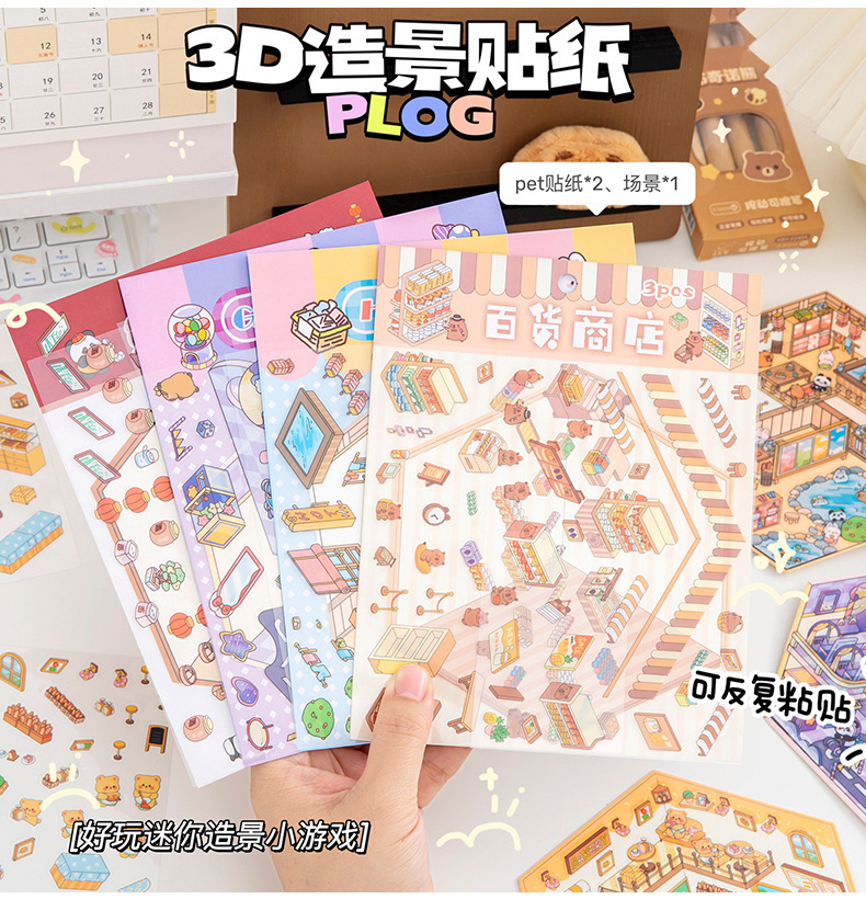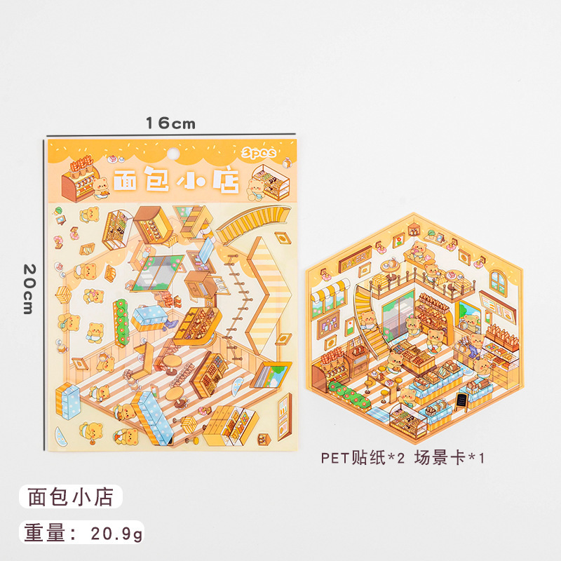 晓梦创意可爱造景贴纸微缩场景拼画diy儿童3D立体拼装手账贴画