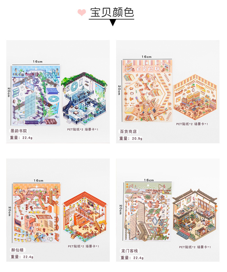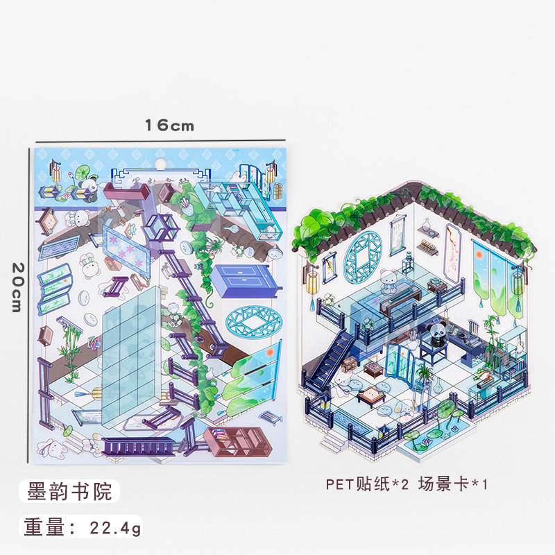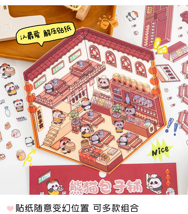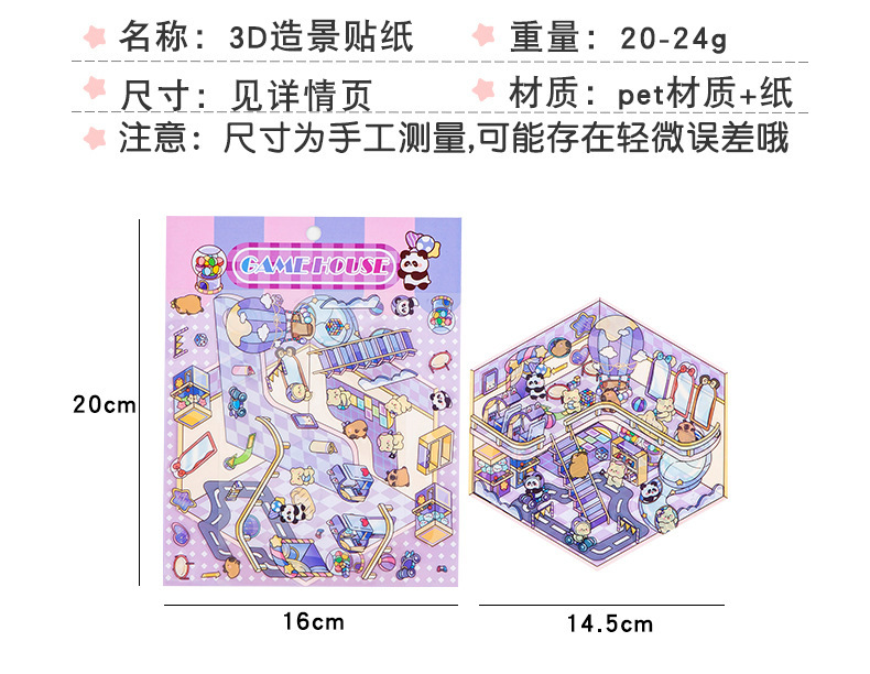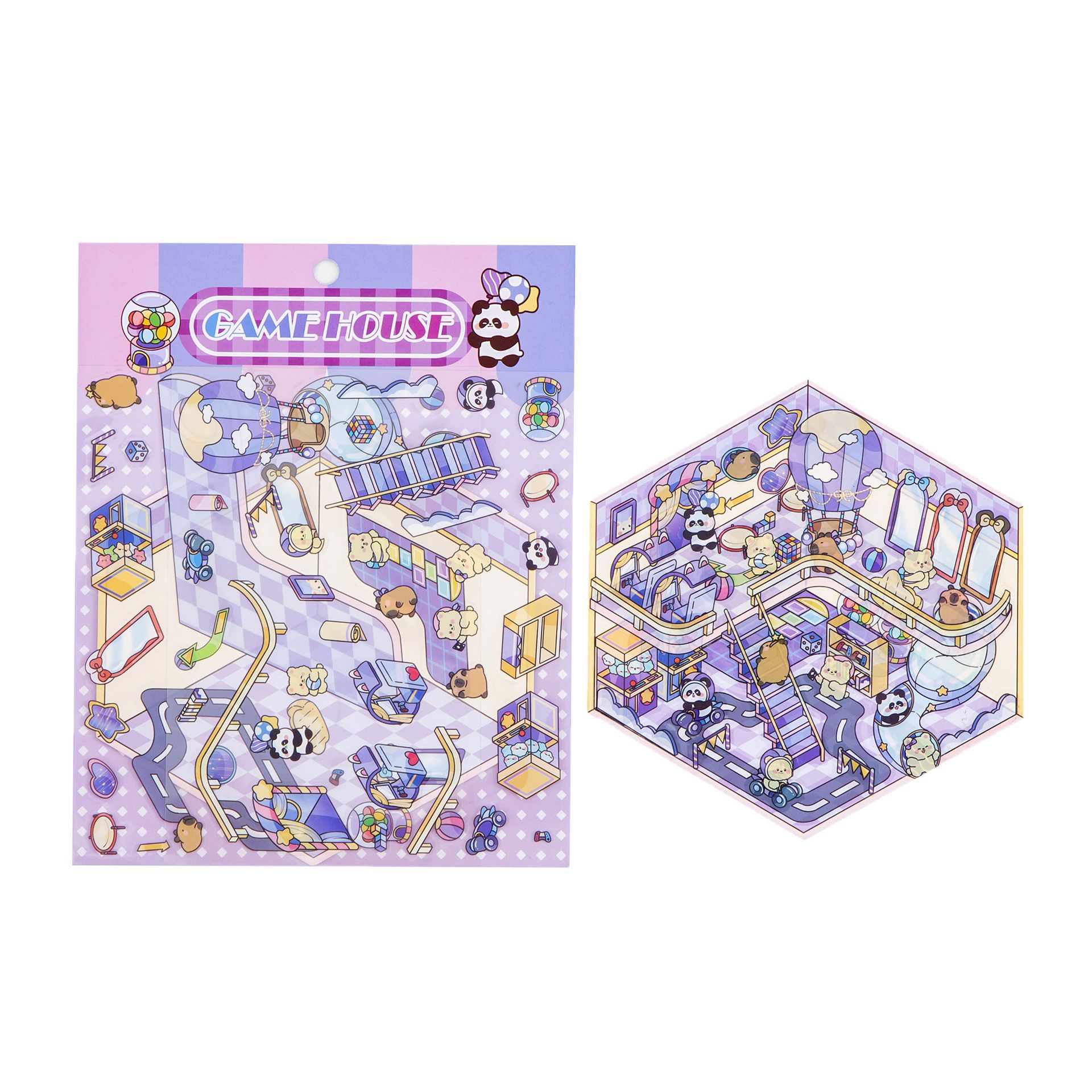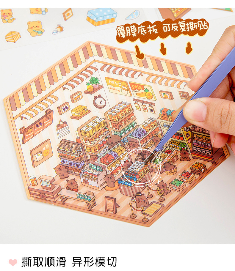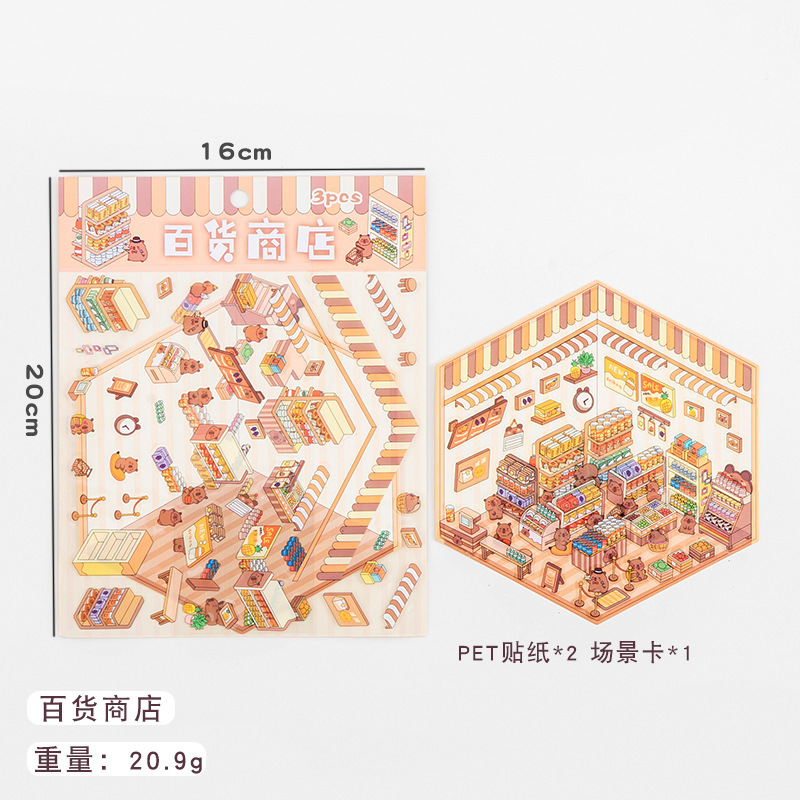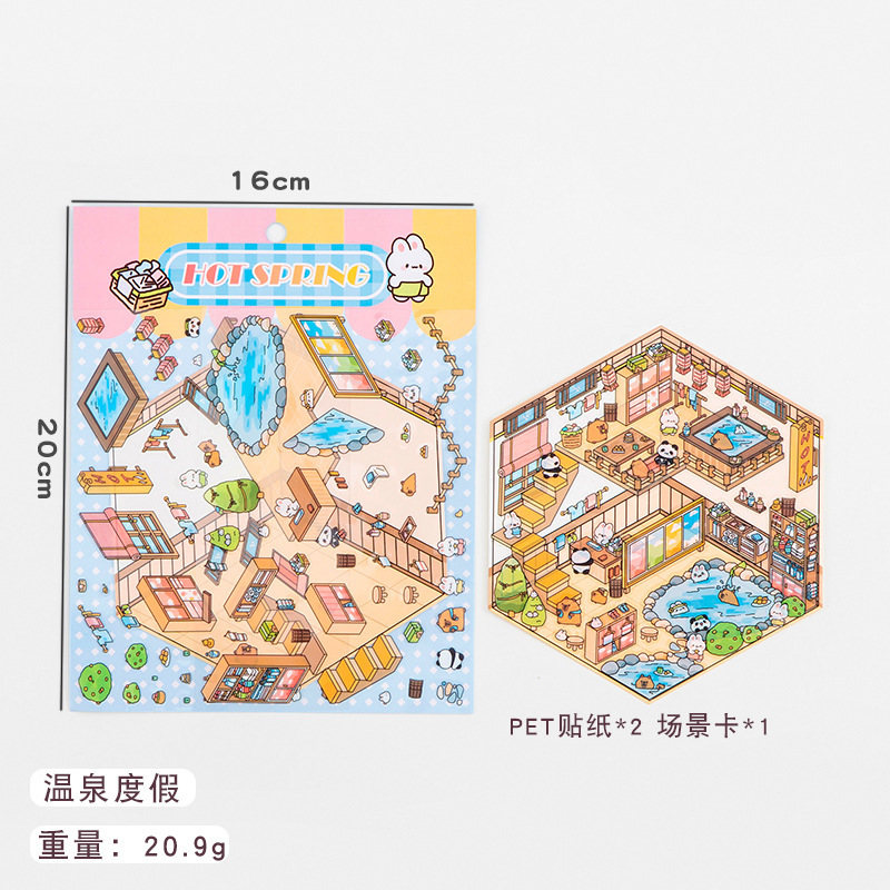 晓梦创意可爱造景贴纸微缩场景拼画diy儿童3D立体拼装手账贴画