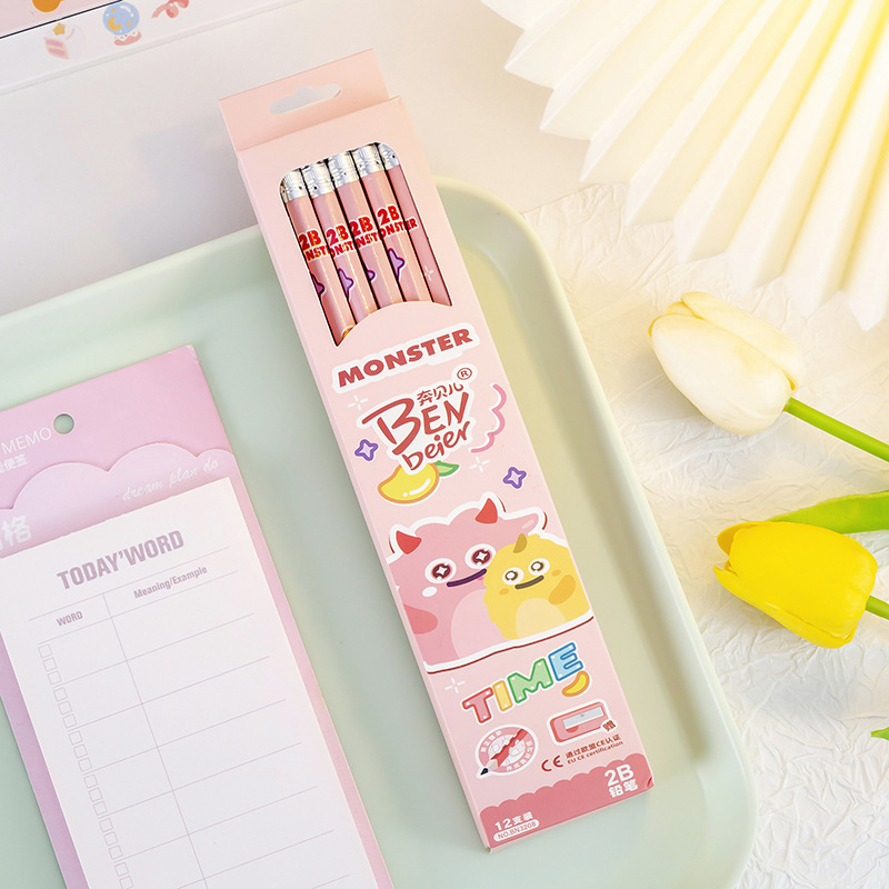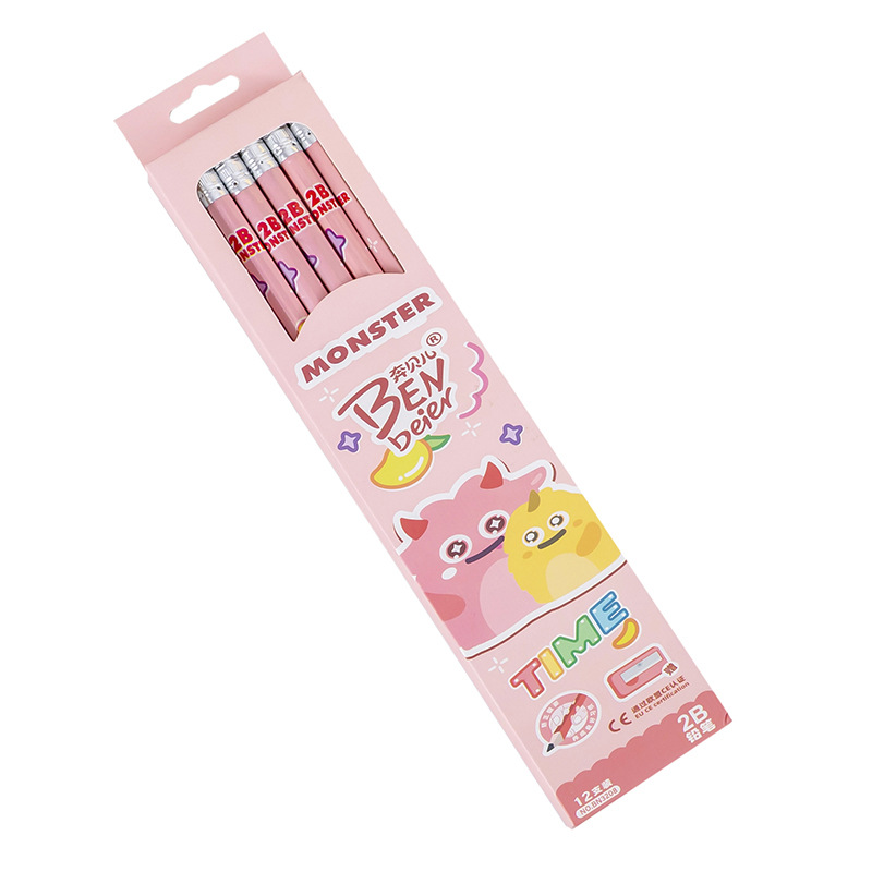 新款卡通12支盒装铅笔小学生文具儿童2B铅笔带橡皮头学习文具批发