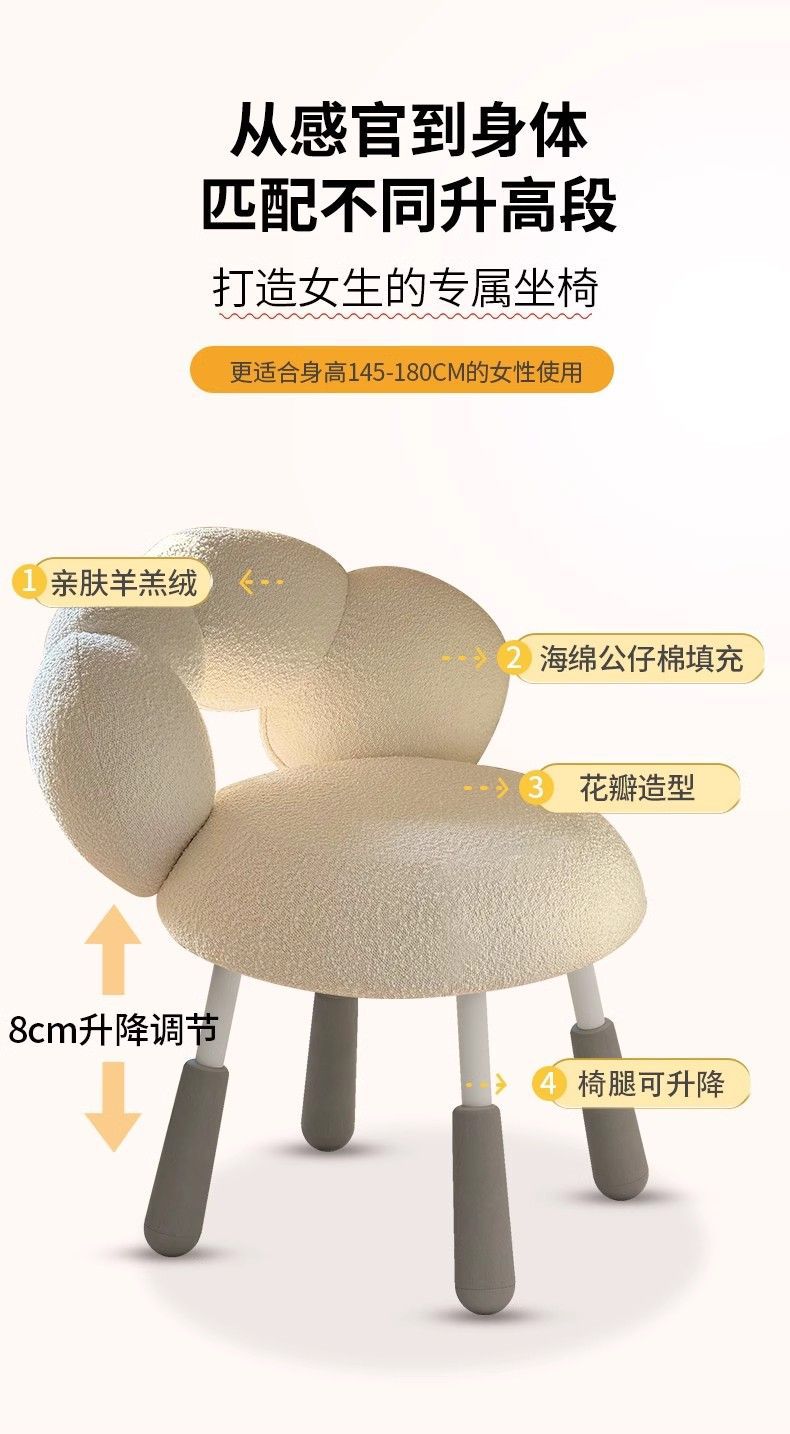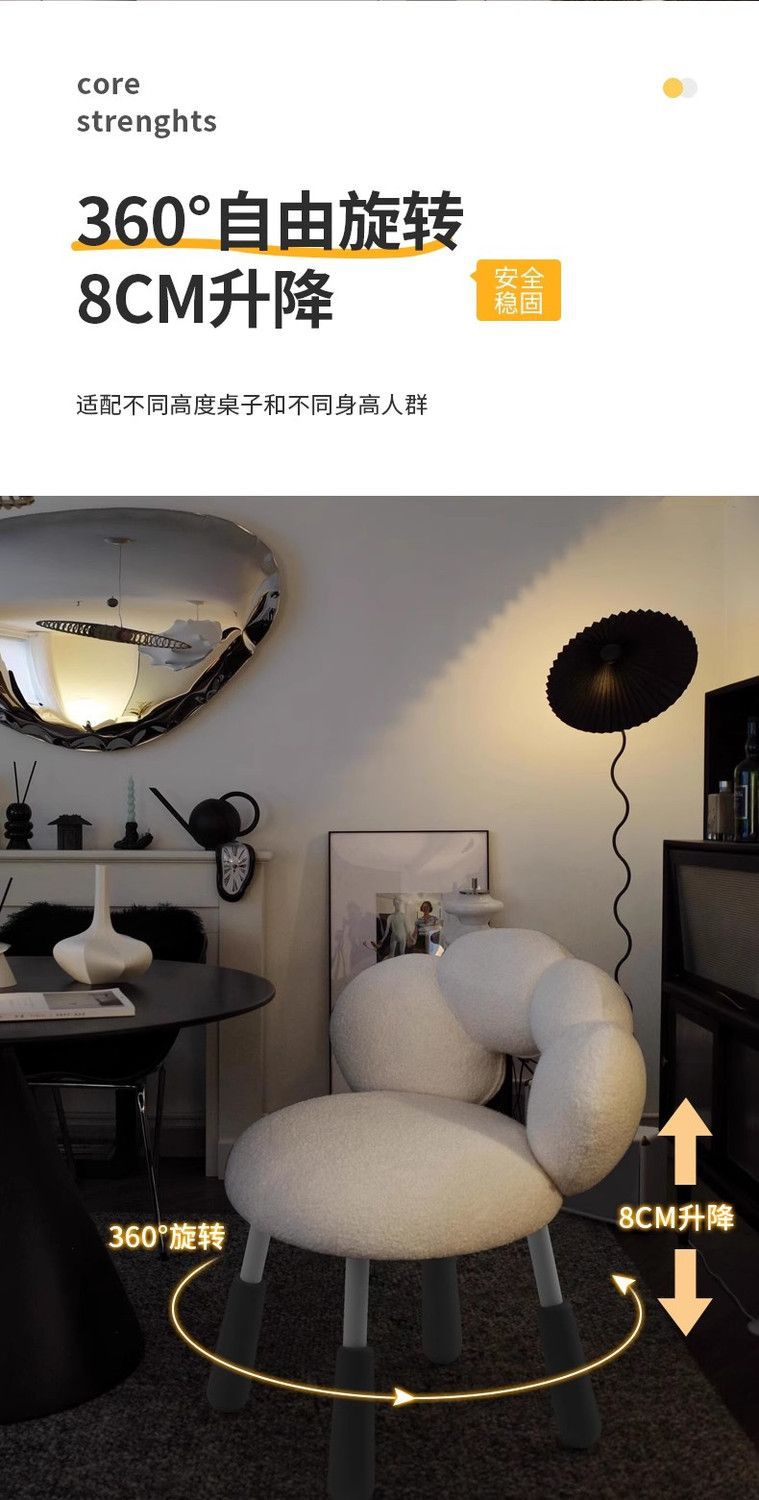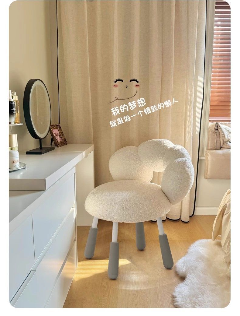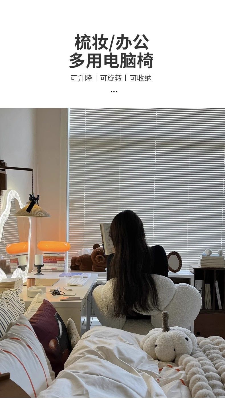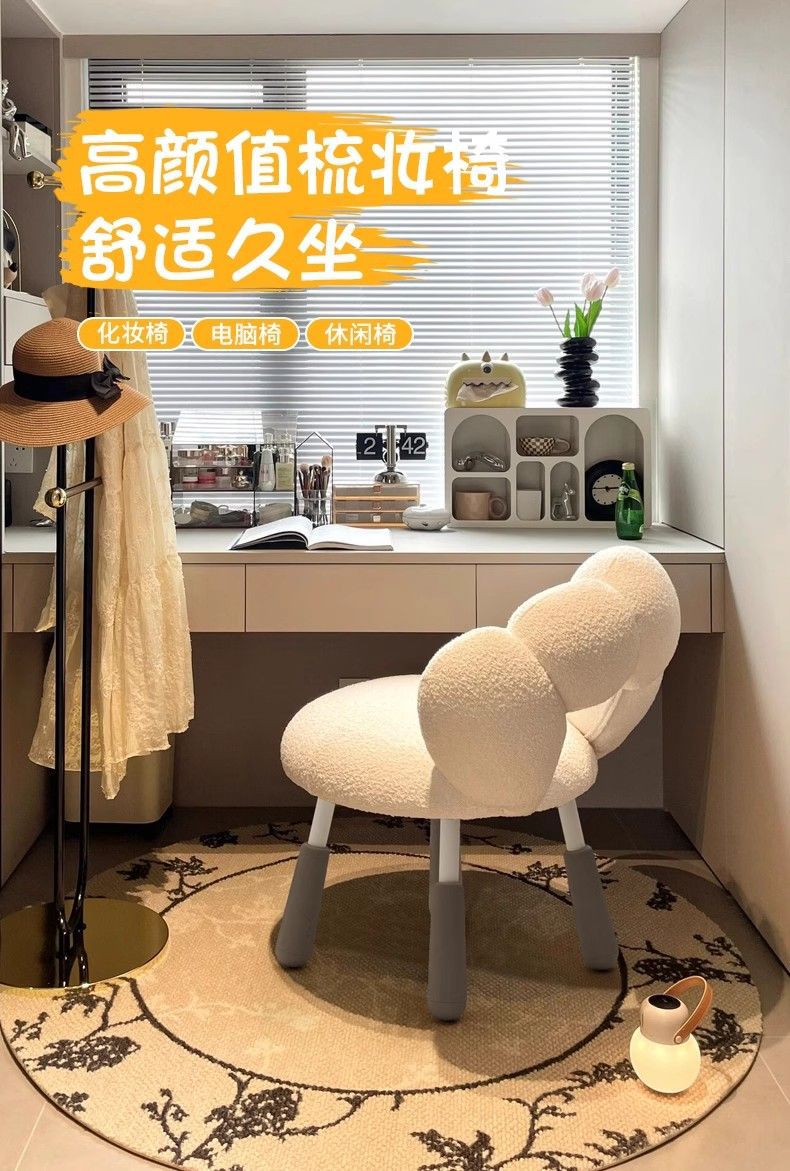 梳妆凳奶油风可旋转化妆椅子羊羔绒小户型卧室女生网红书桌电脑椅