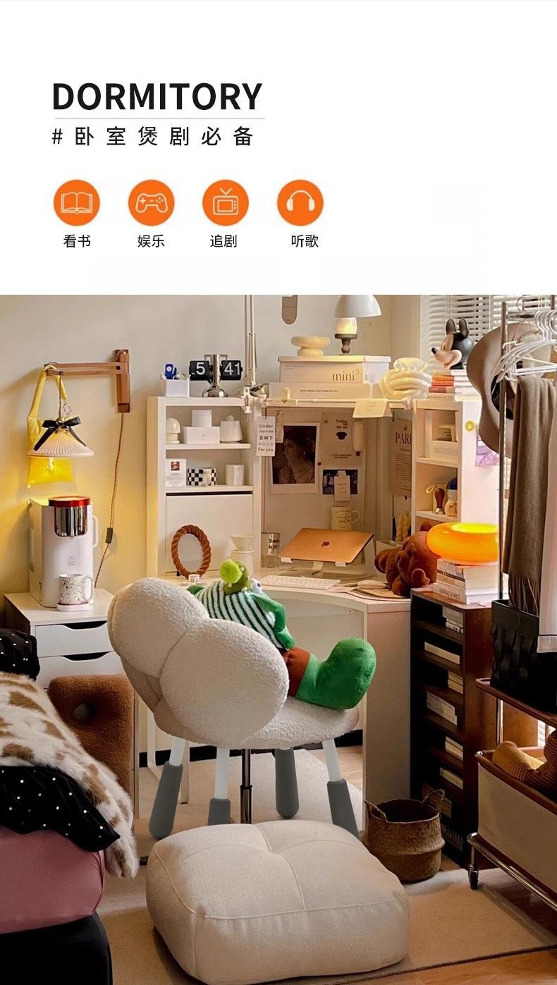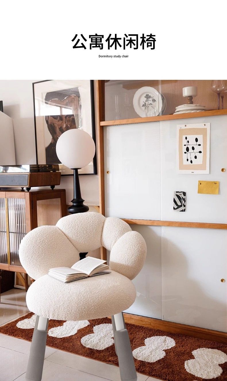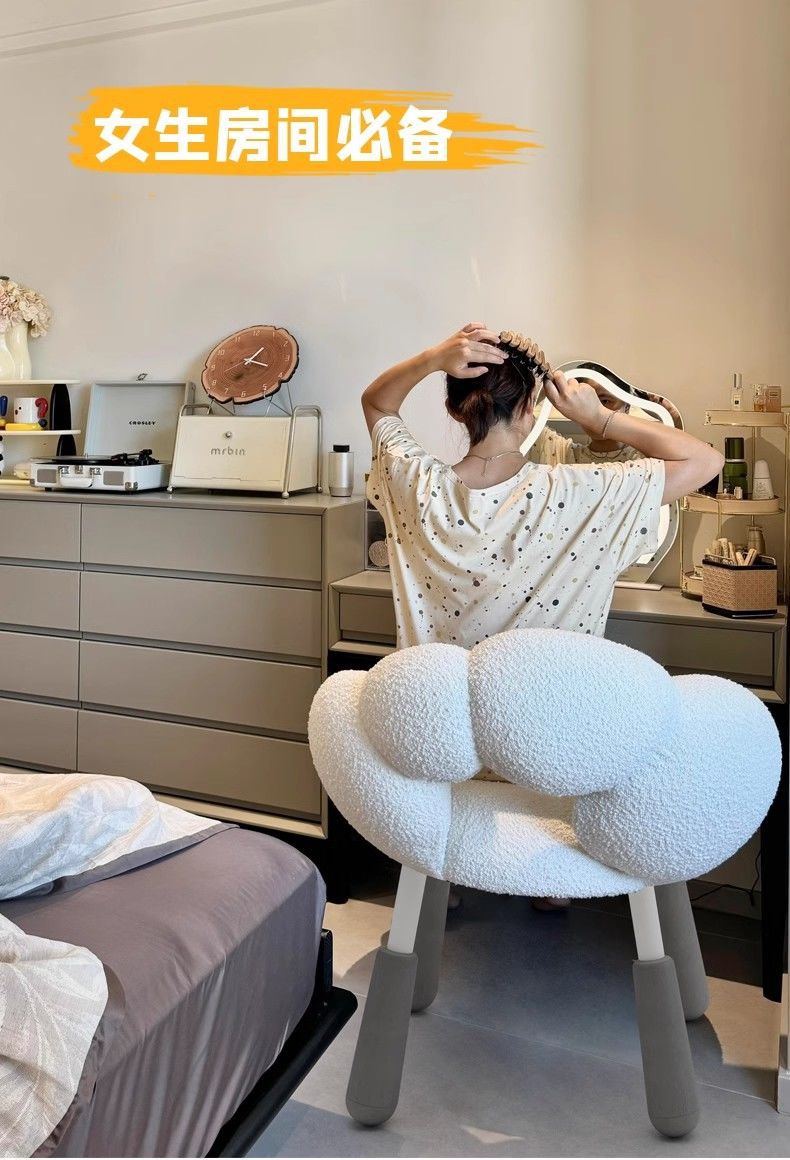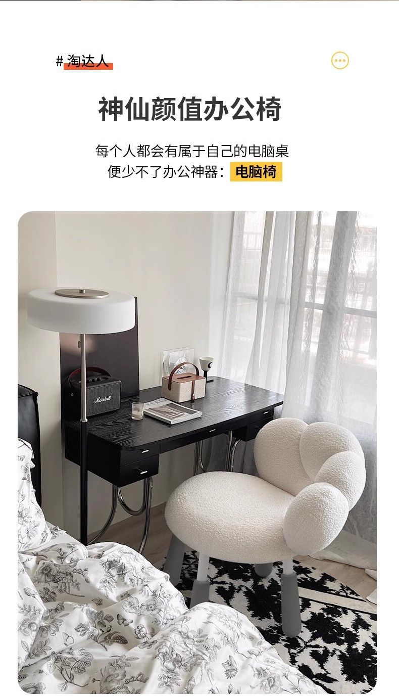 梳妆凳奶油风可旋转化妆椅子羊羔绒小户型卧室女生网红书桌电脑椅