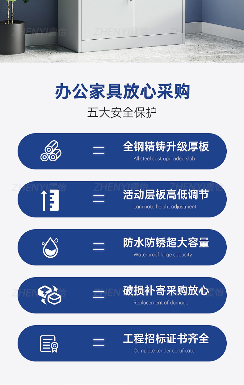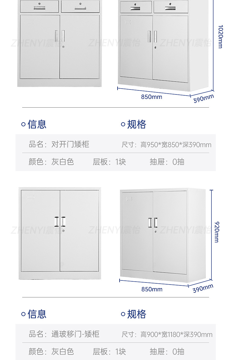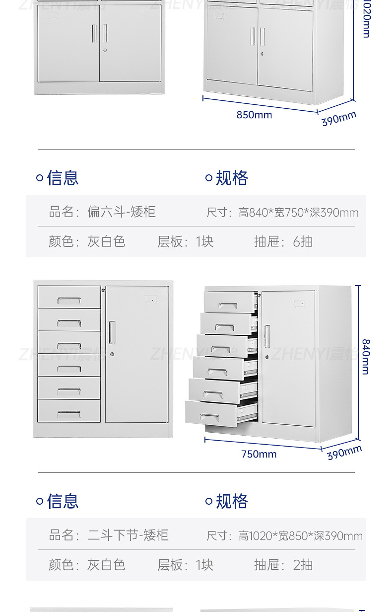 钢制文件柜办公柜铁皮柜办公室放杂物柜子档案柜储物柜铁艺矮柜