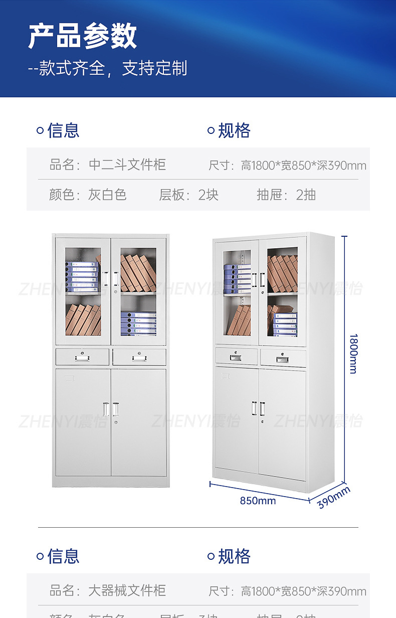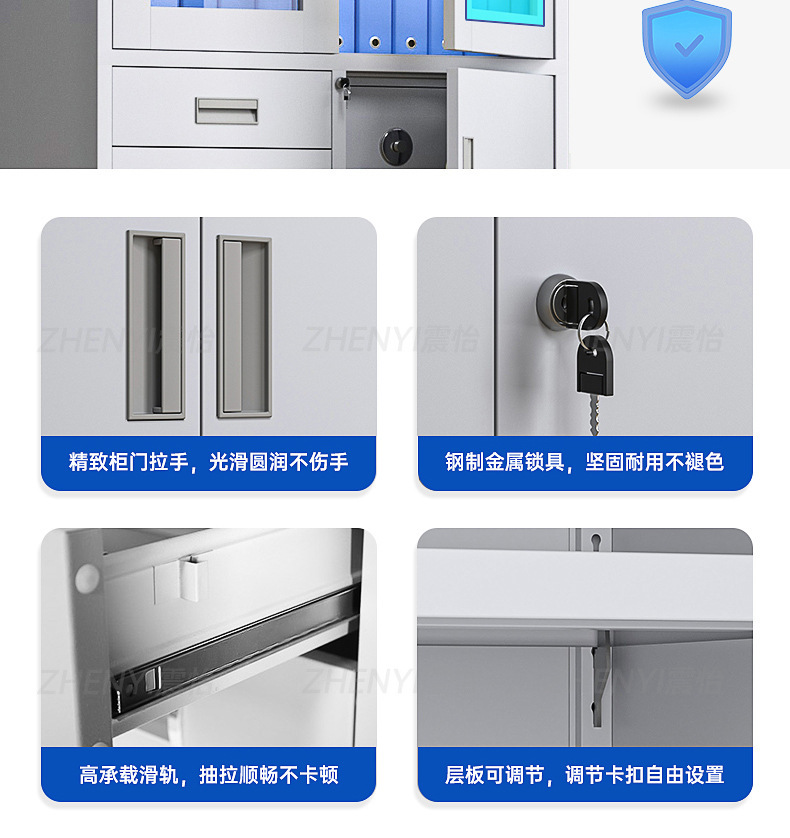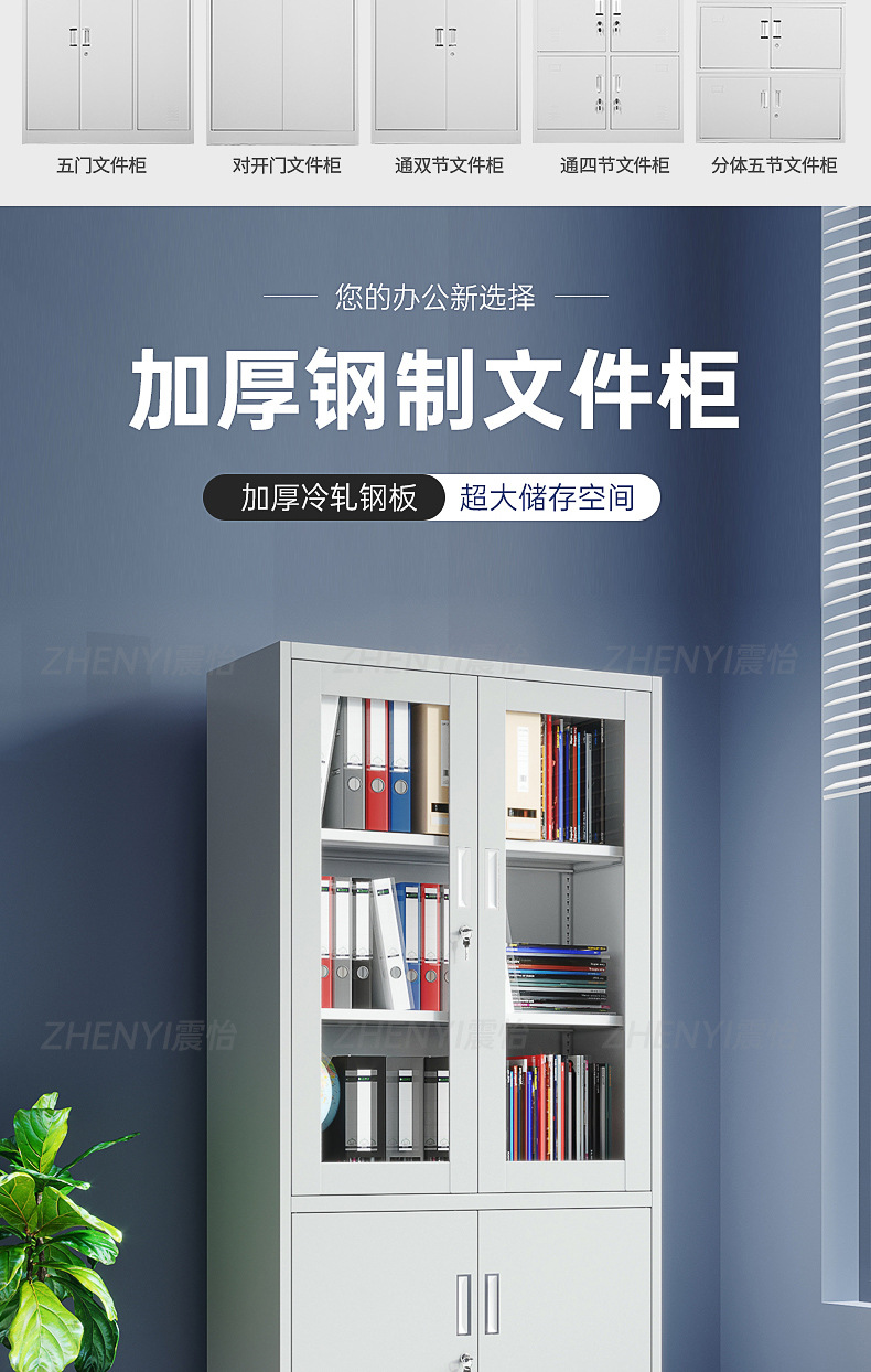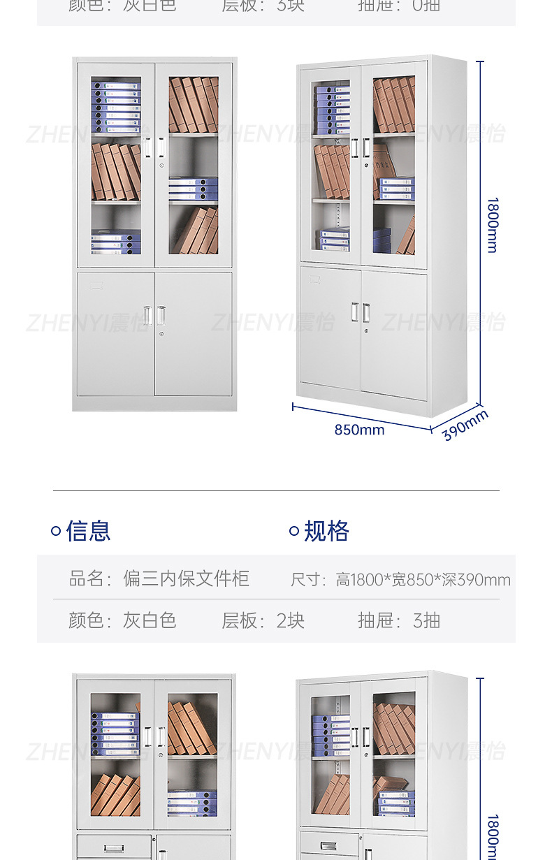 钢制文件柜办公柜铁皮柜办公室放杂物柜子档案柜储物柜铁艺矮柜