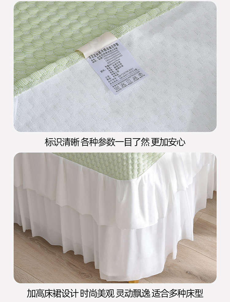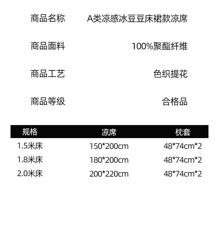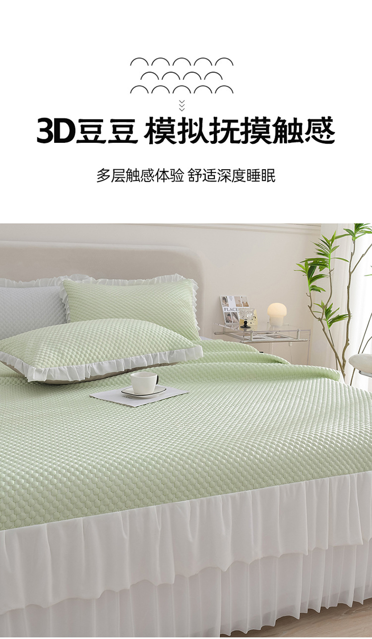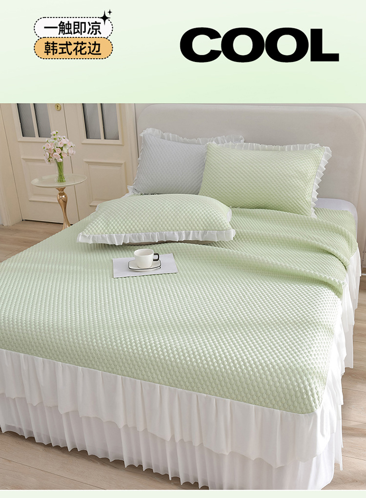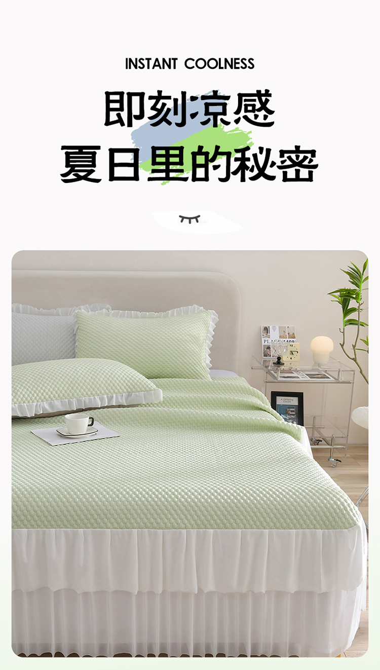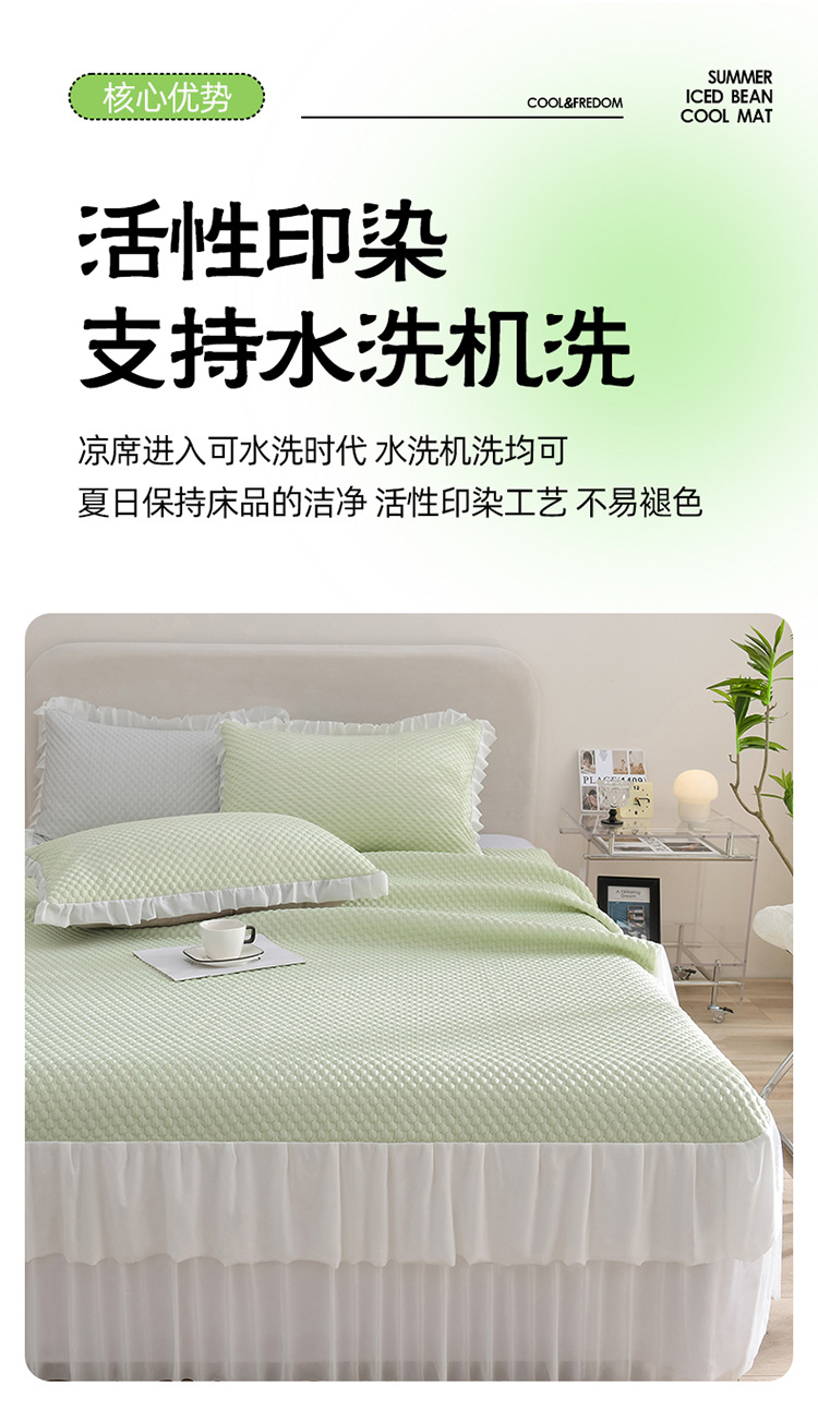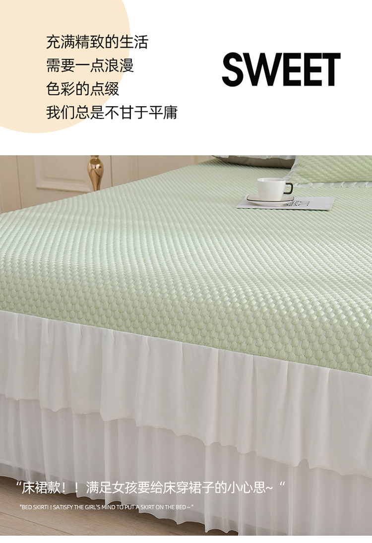凉席纯色凉感豆凉席三件套床裙款冰丝软席子裸睡凉席透气夏