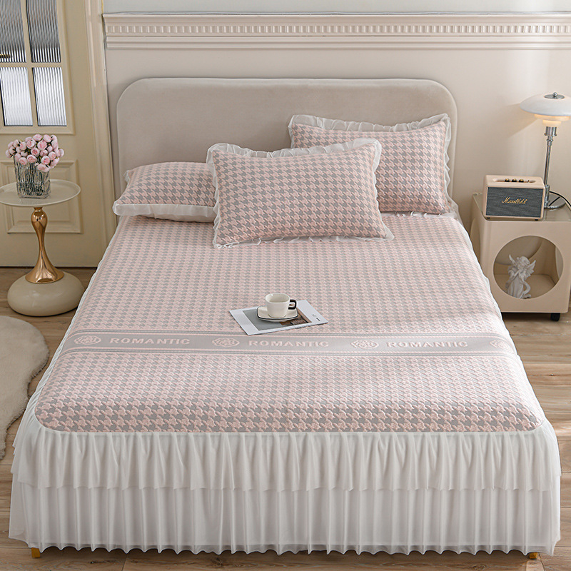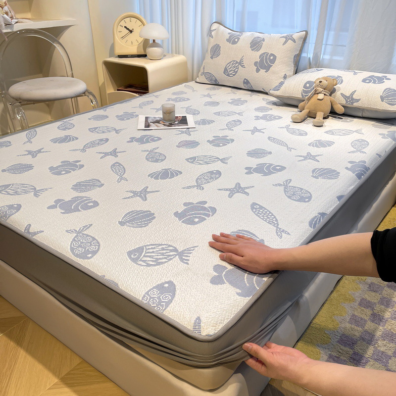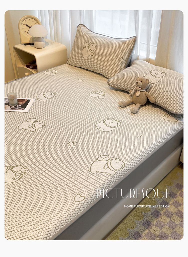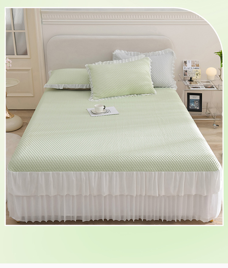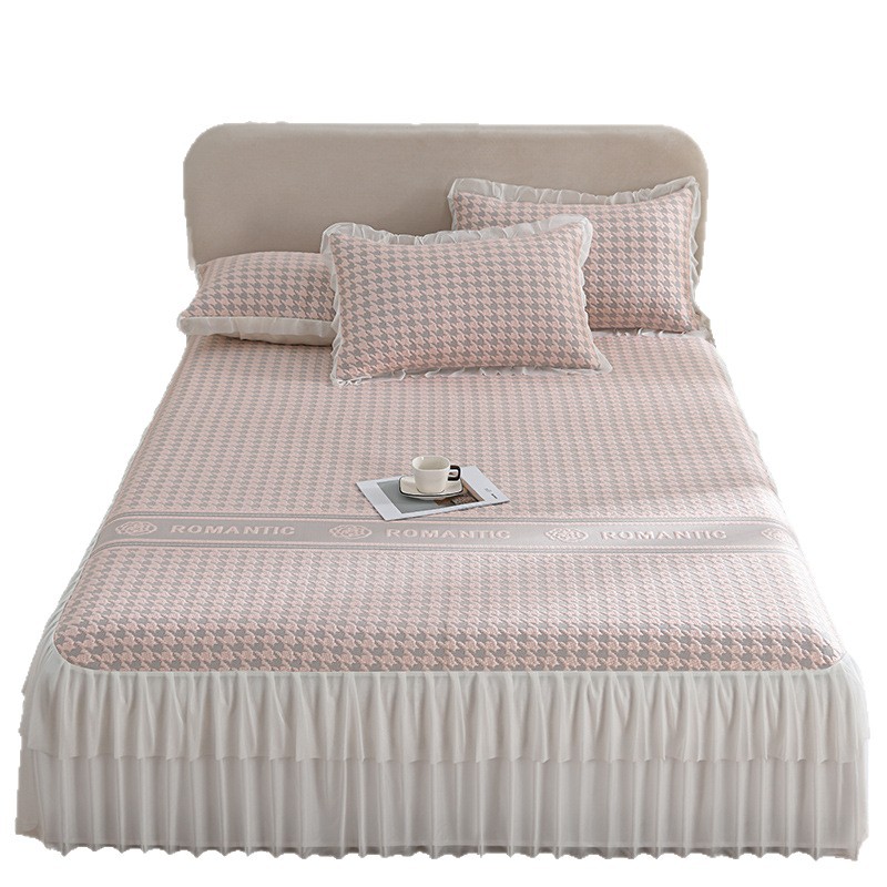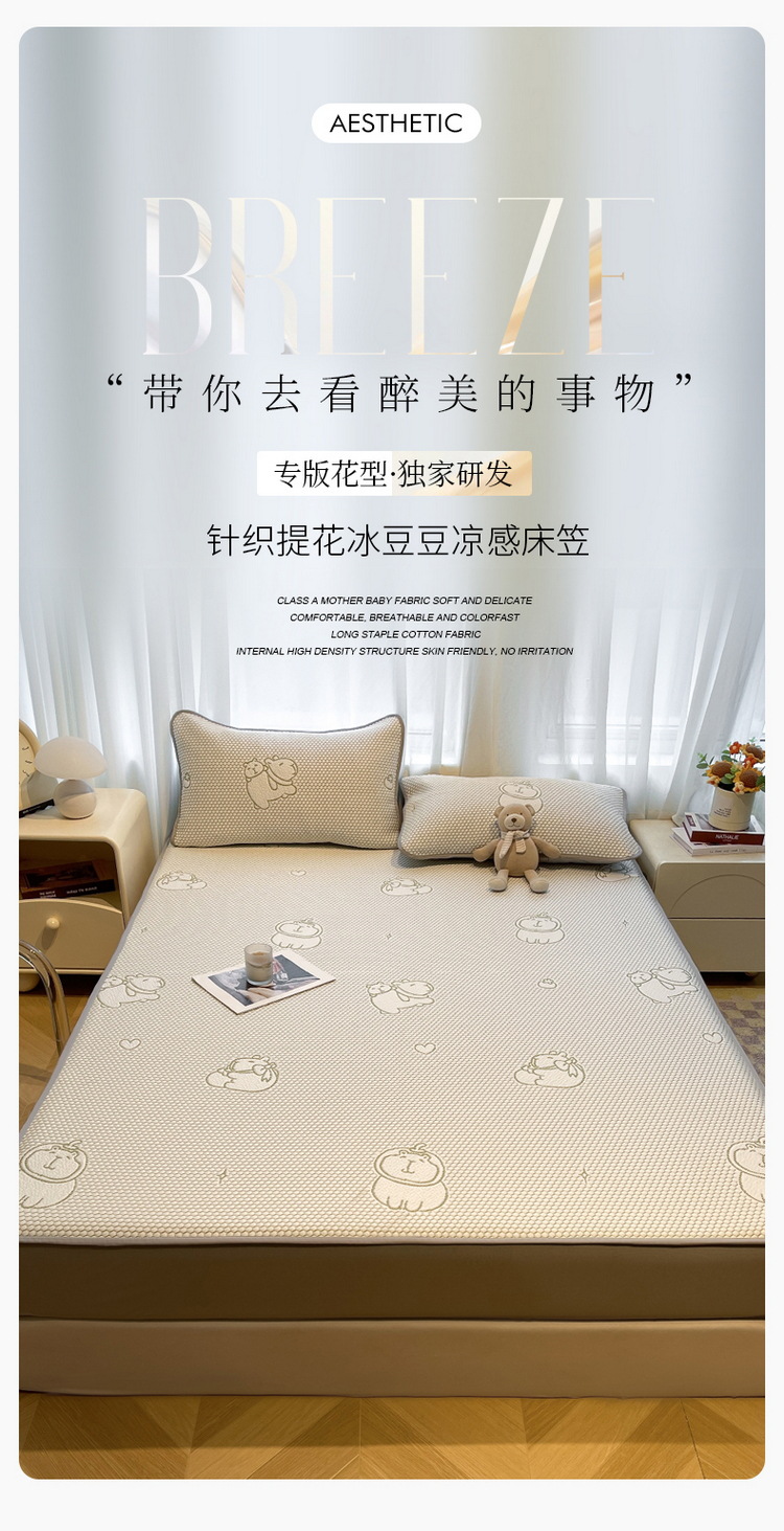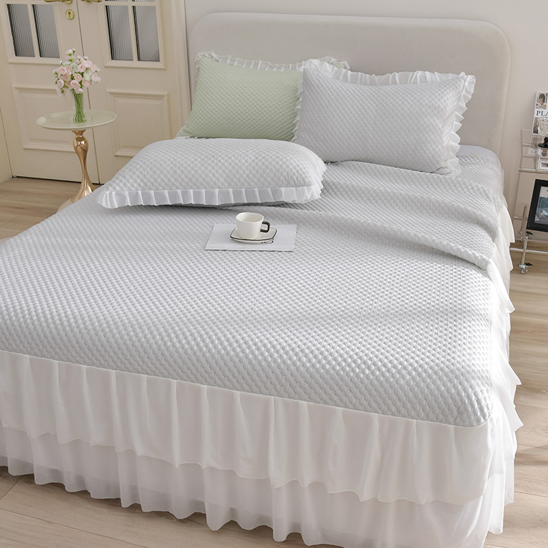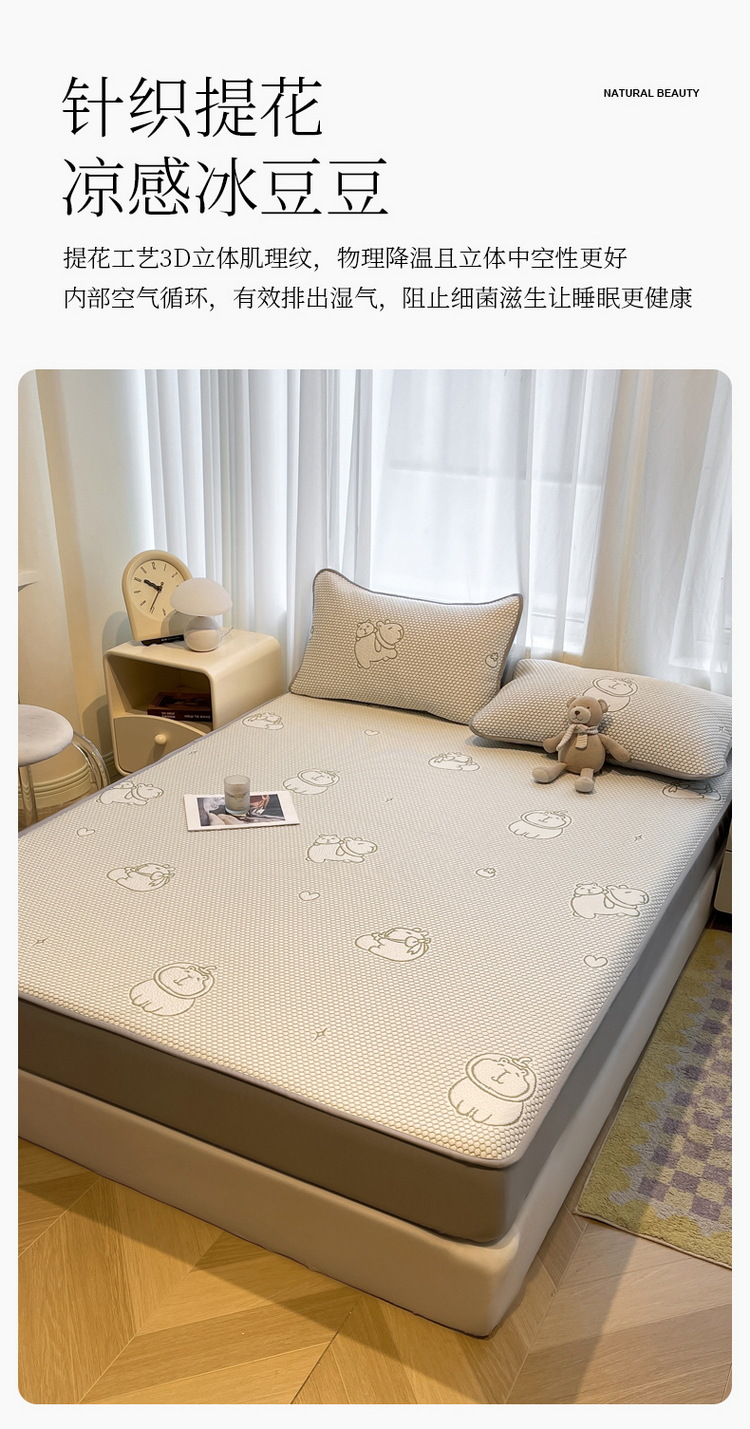 凉席纯色凉感豆凉席三件套床裙款冰丝软席子裸睡凉席透气夏