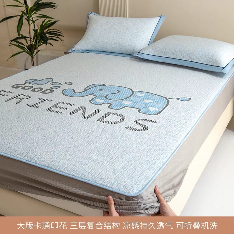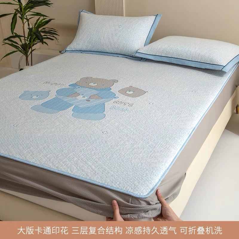 卡通冰丝凉席三件套2025新款儿童豆豆软席a类母婴级可机洗凉感席3