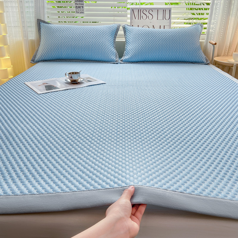 新款A类凉感丝凉席三件套纯色可折叠床笠床裙款席子批发