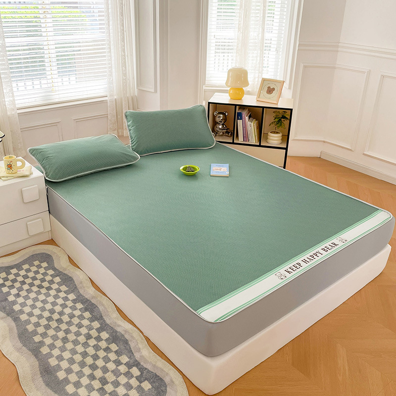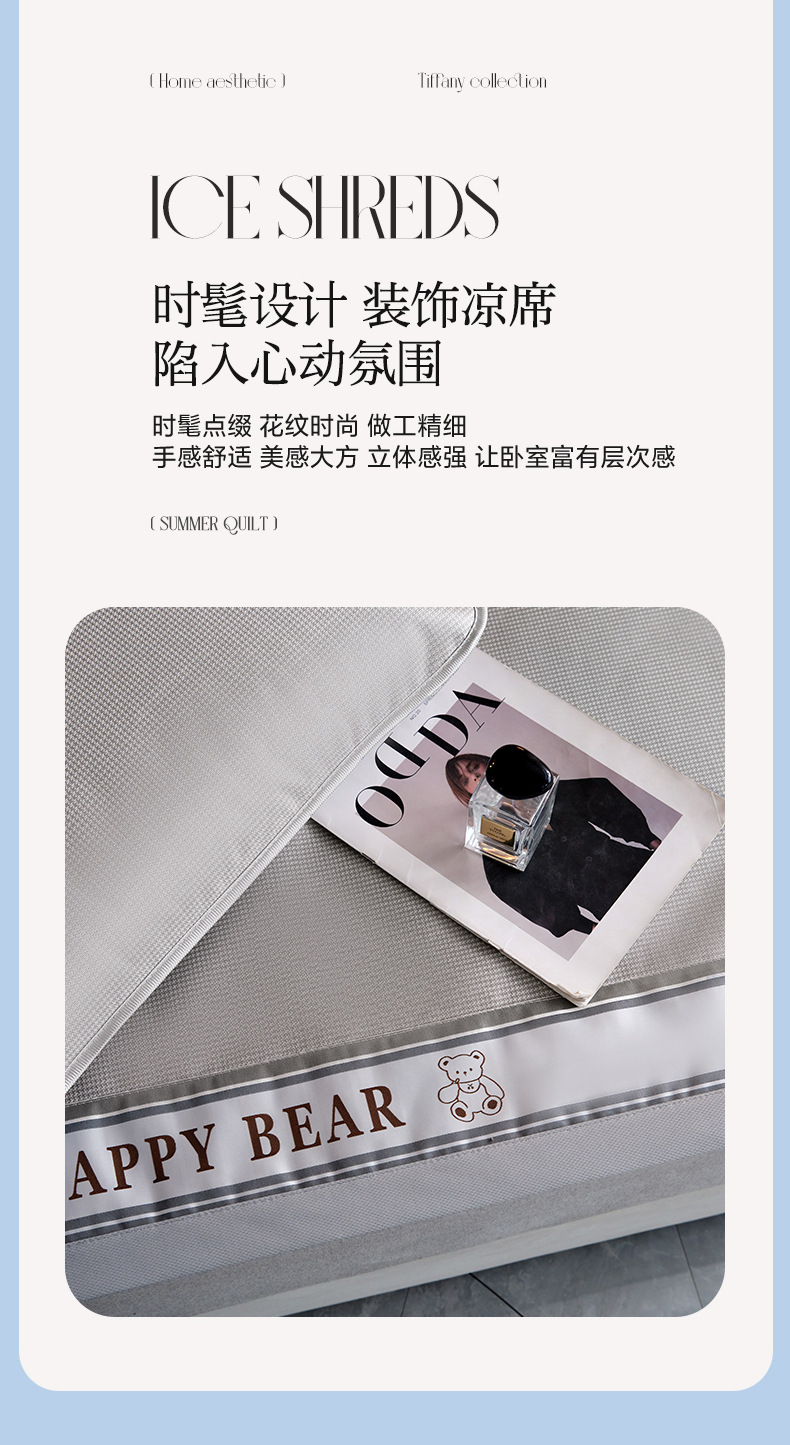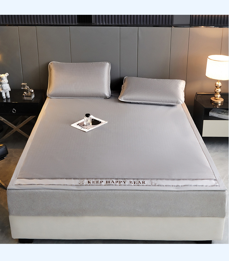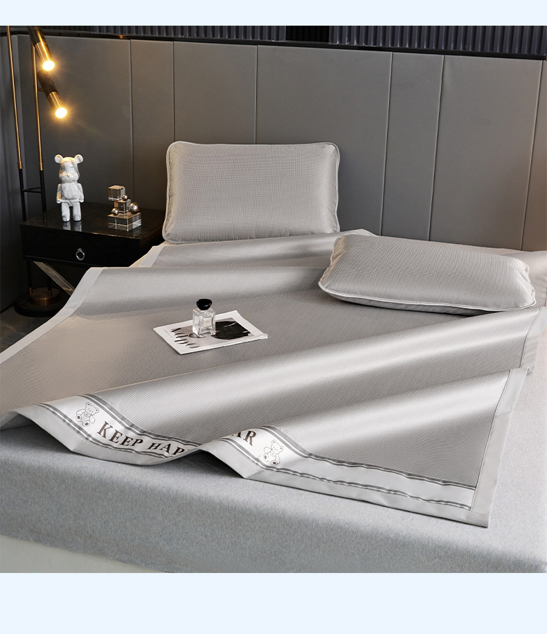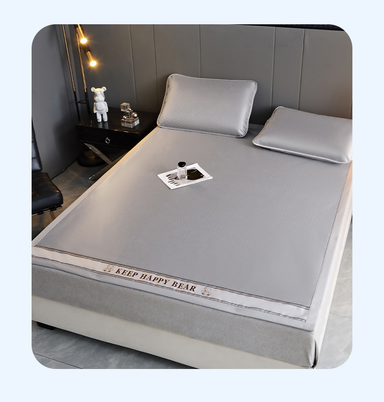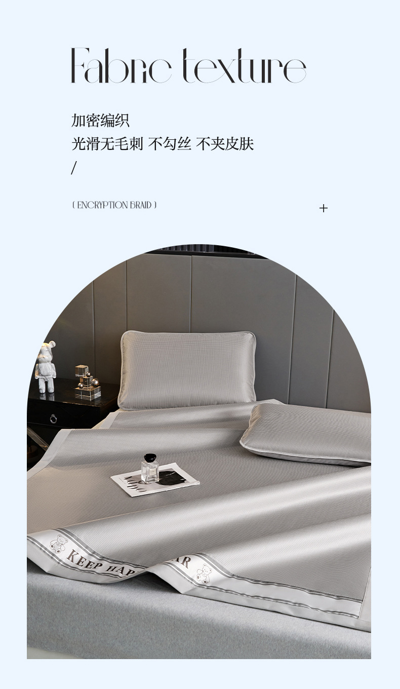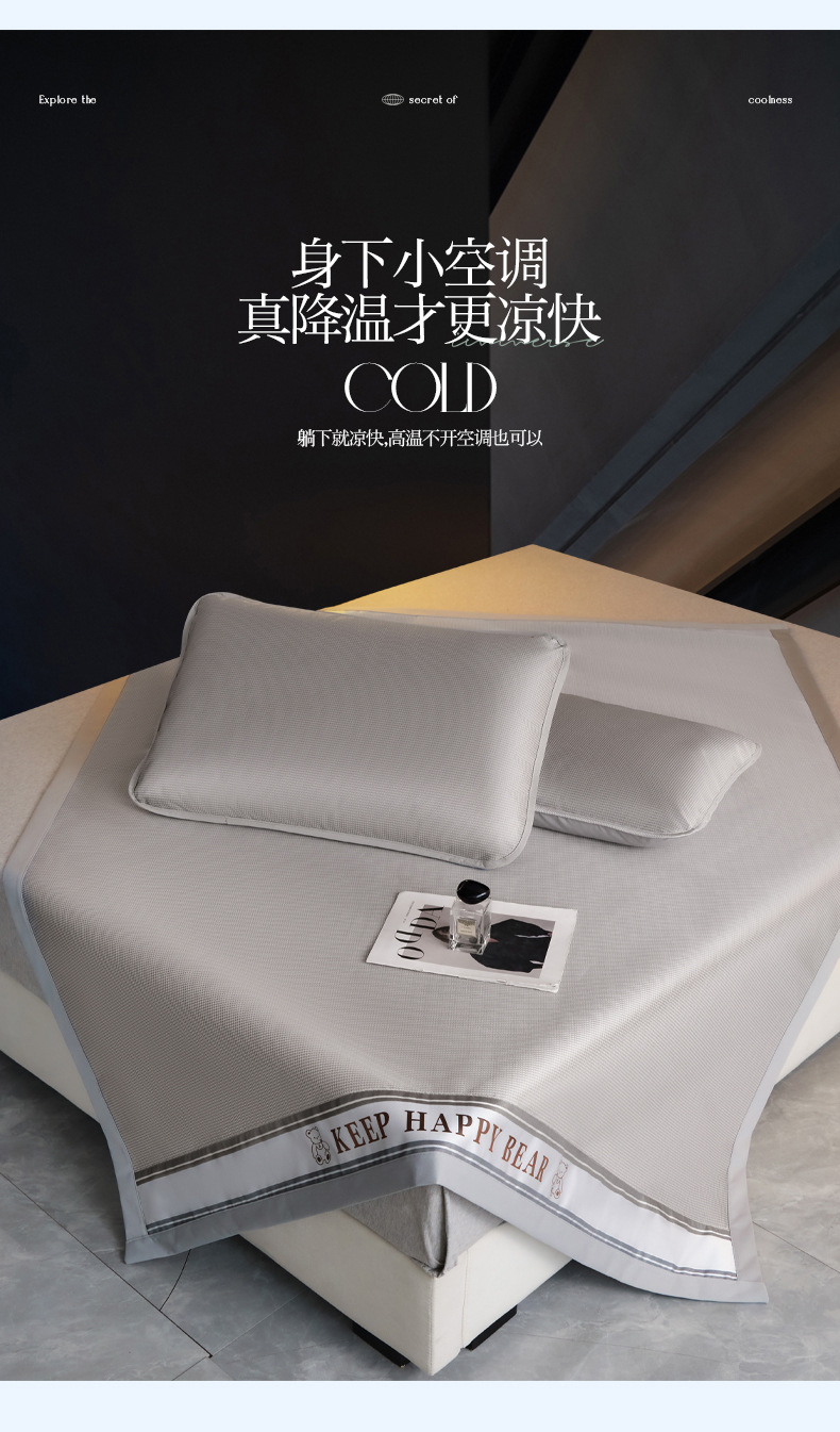 2025新款碳光冰丝席夏季家用可裸睡降温三件套凉席-小熊系列席子