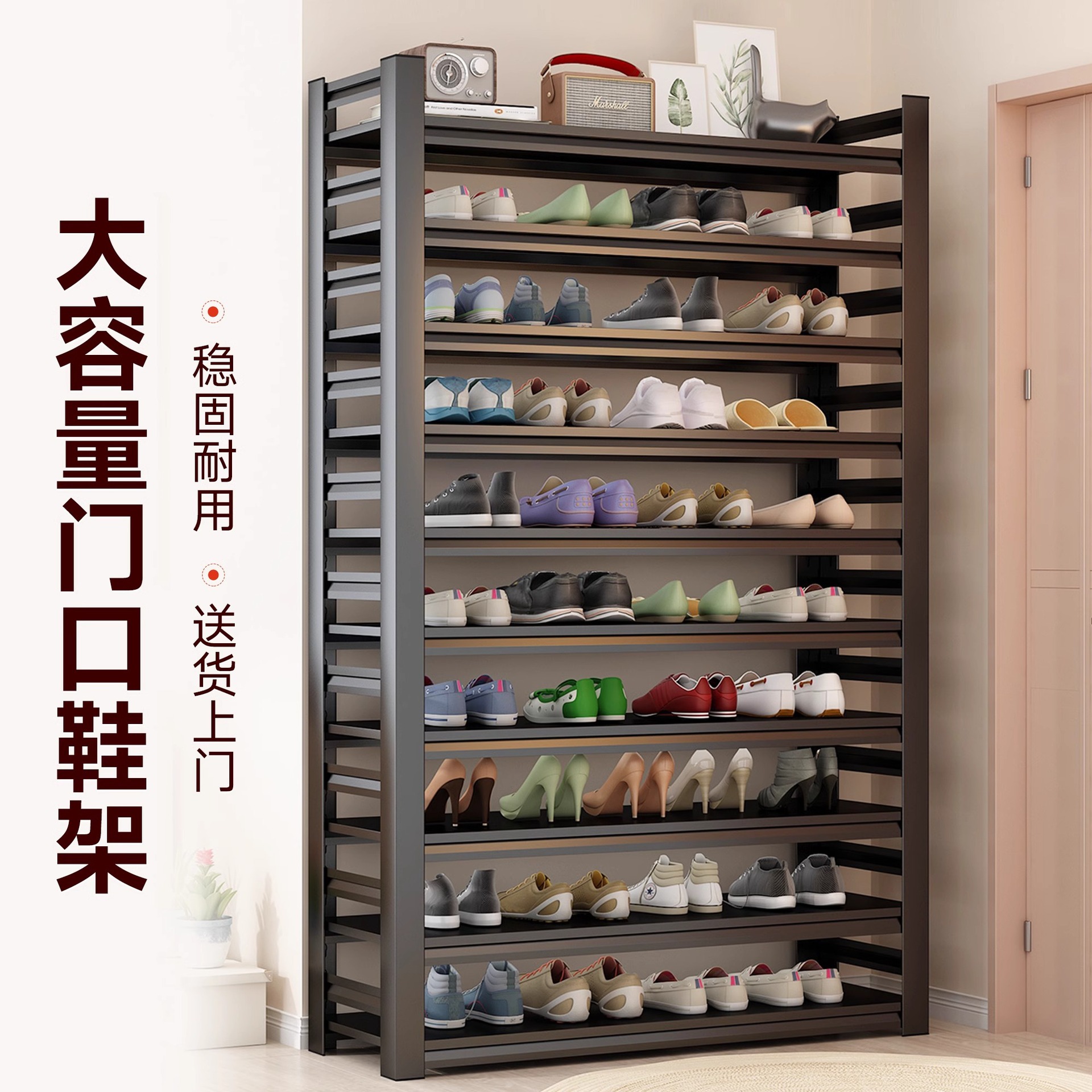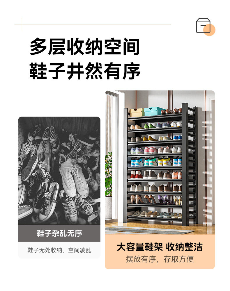 家用钢制鞋架门口落地多层置物架铁艺简易收纳架玄关入户门后鞋柜