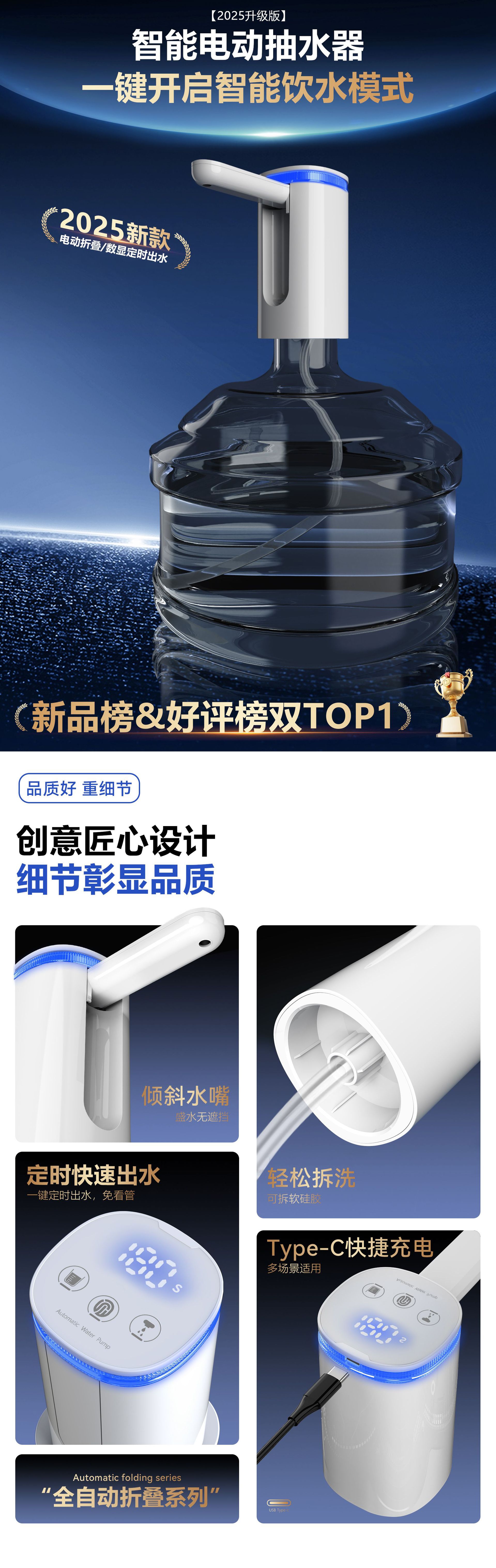 折叠电动桶装水抽水器定量大桶水抽水泵饮水机吸水器上水器矿泉水