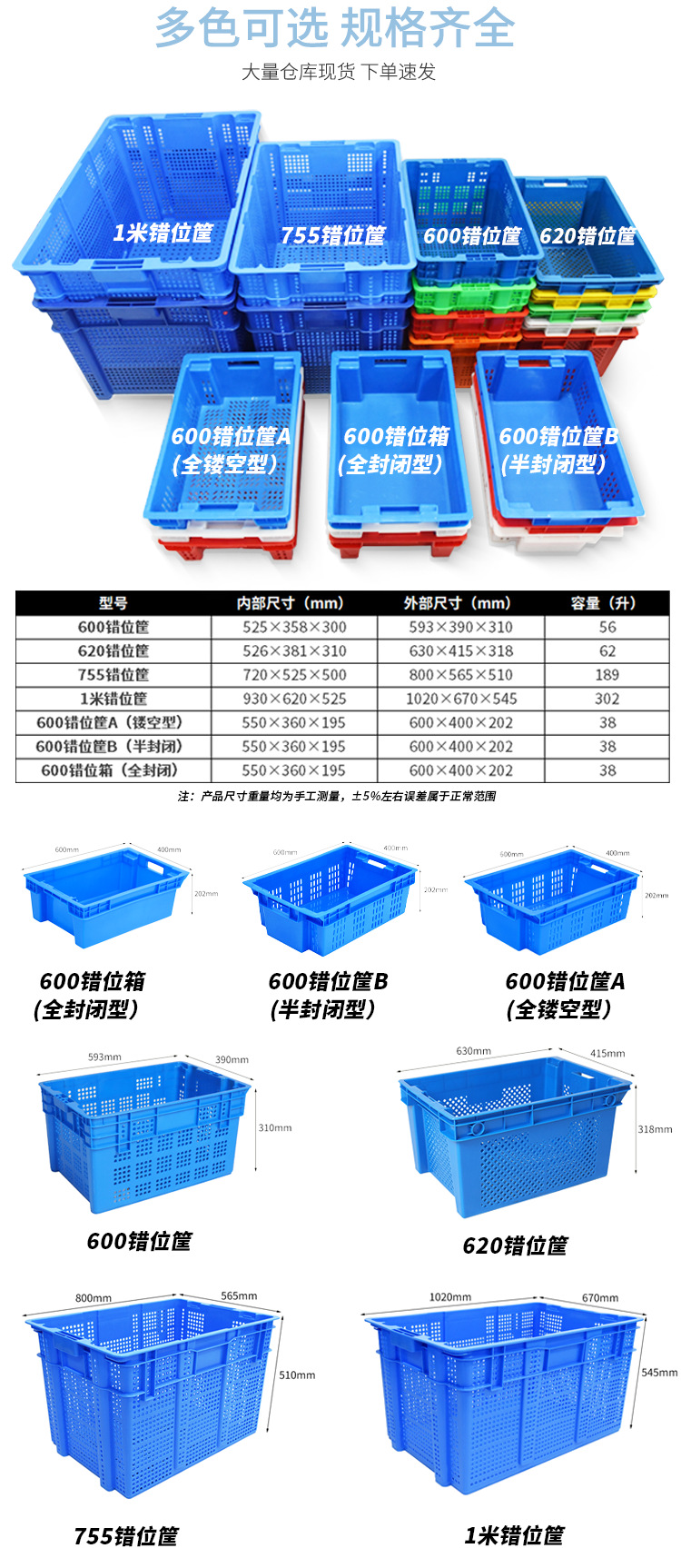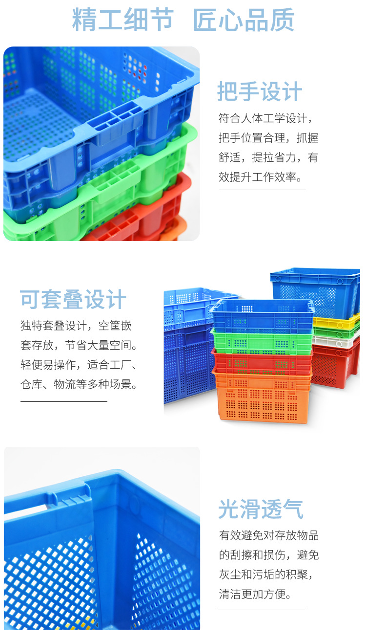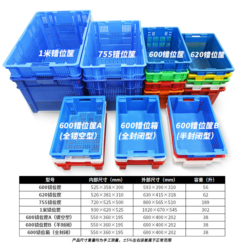 富立卡错位塑料筐堆码摞放仓库物流车间中转1米长冷链团购周转箩