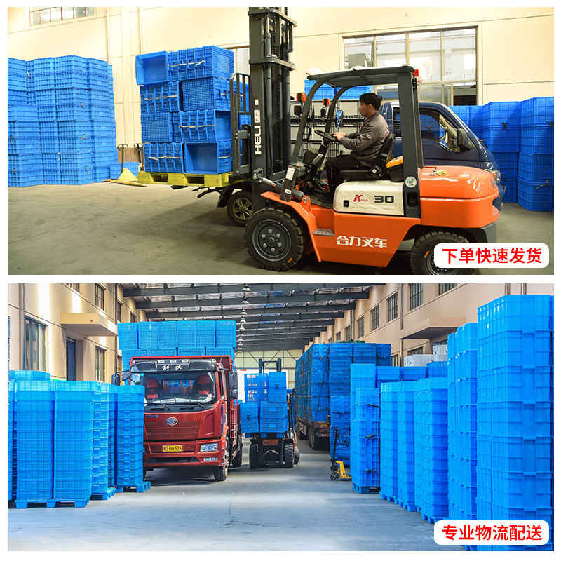 富立卡厂家塑料周转箱加厚带盖胶框工业蓝色塑胶箱子生产批发定制