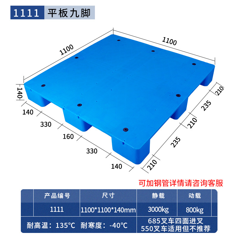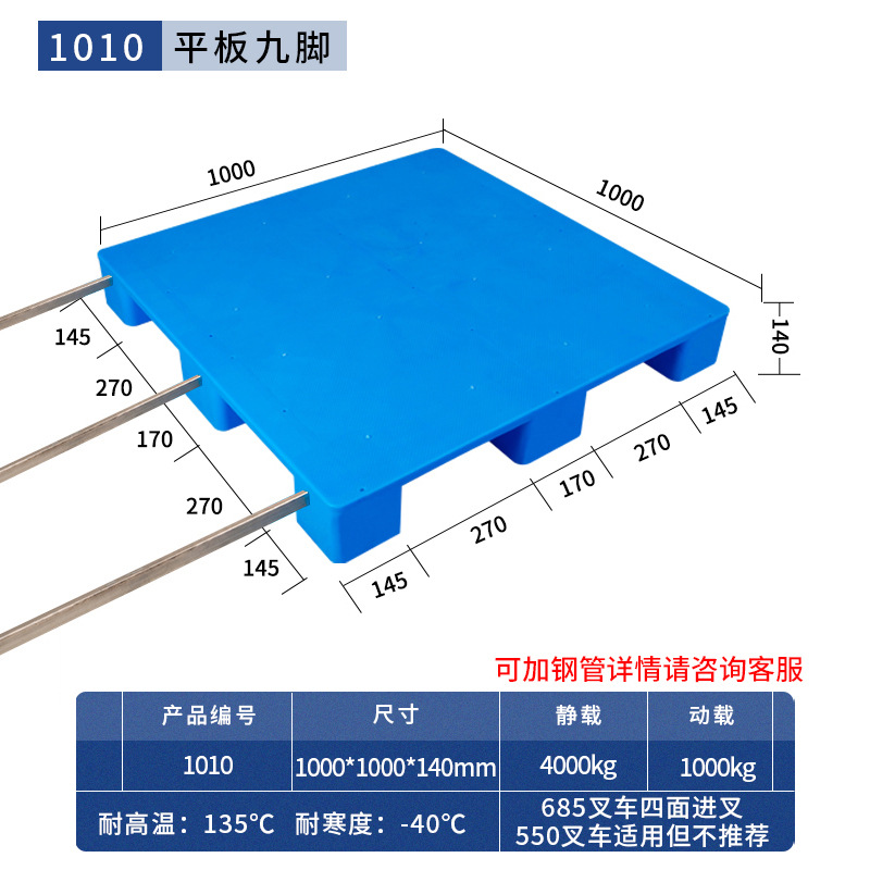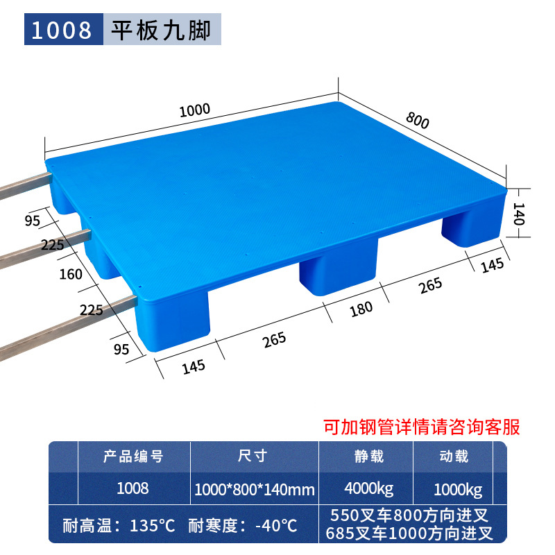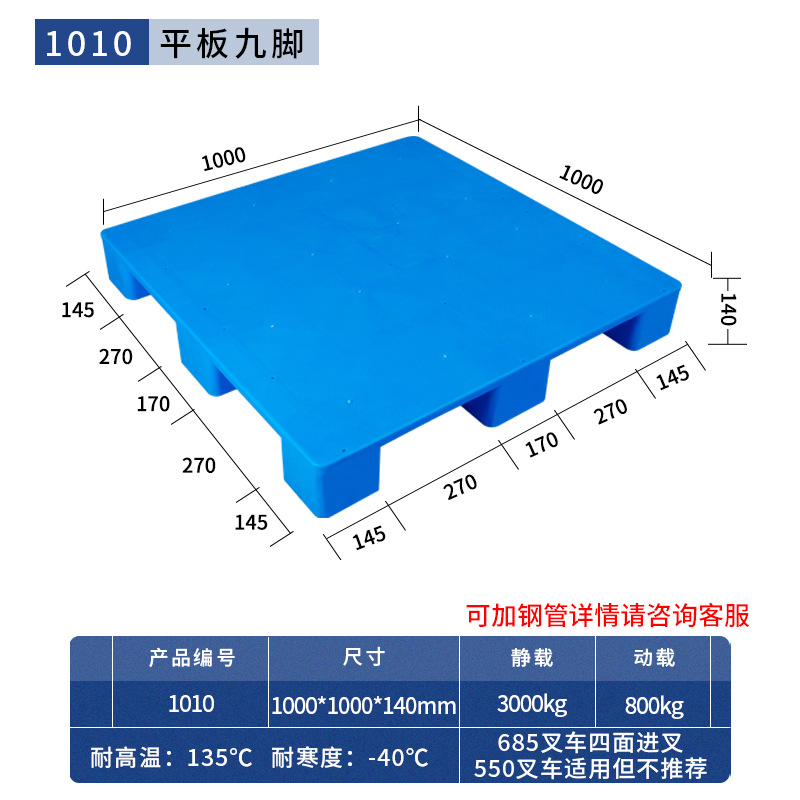 平板九脚塑料叉车托盘仓库货物周转塑胶卡板底托防潮垫板搬运托板