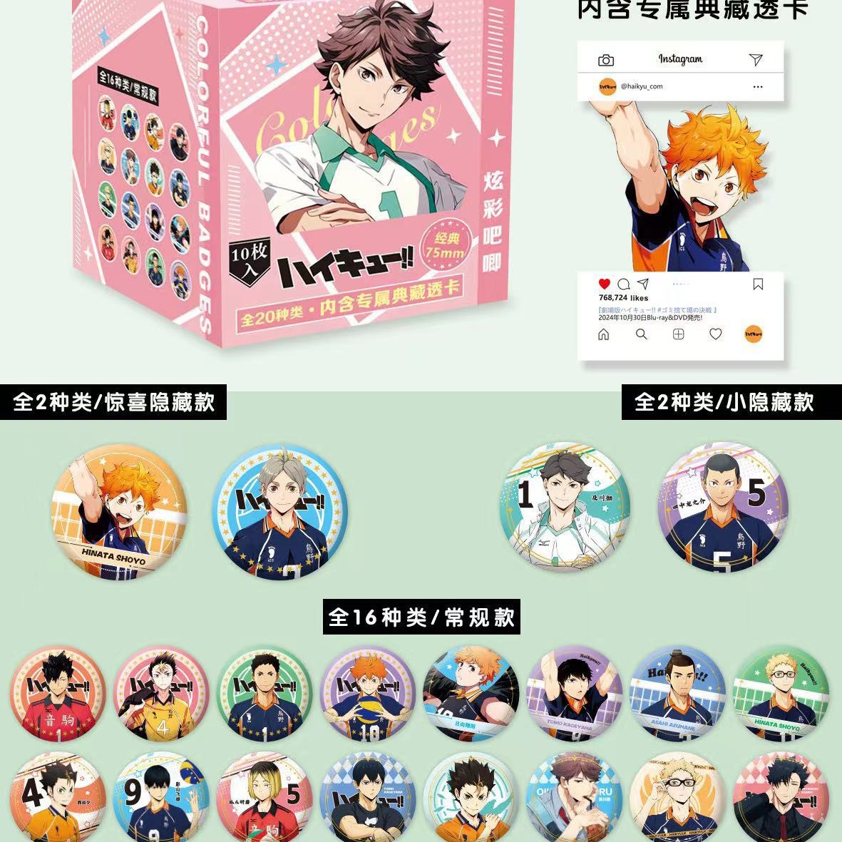 动漫徽章10入双闪吧唧盲盒盲袋排球天宫咒术恋与深空蓝锁送保护套