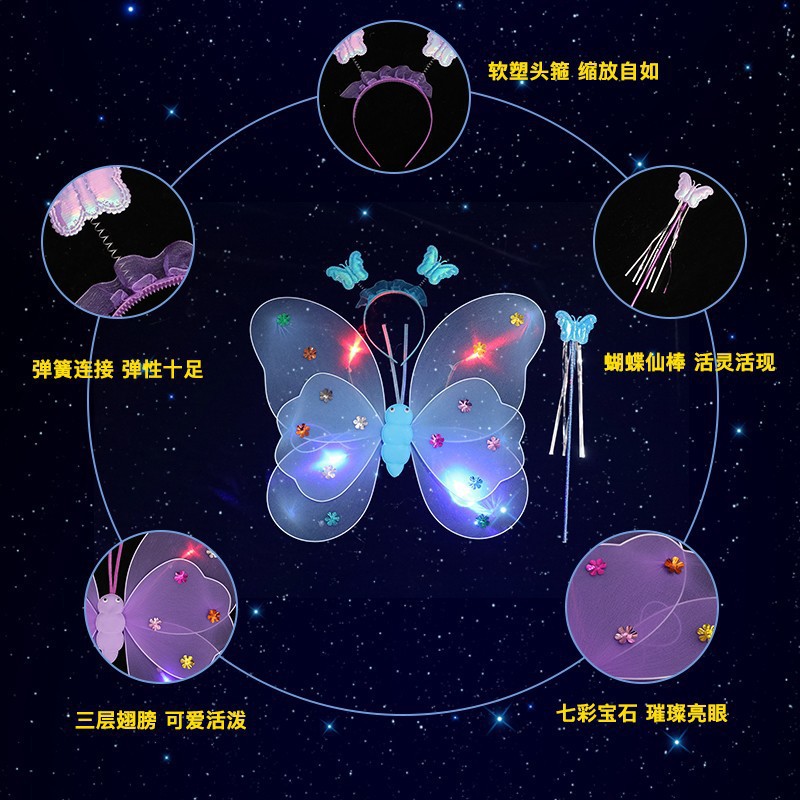 发光蝴蝶翅膀小女孩背饰儿童闪光玩具奇妙仙子魔法棒花仙子三件套