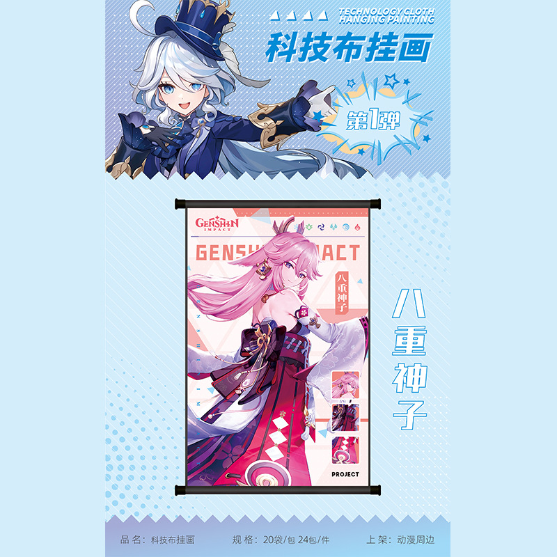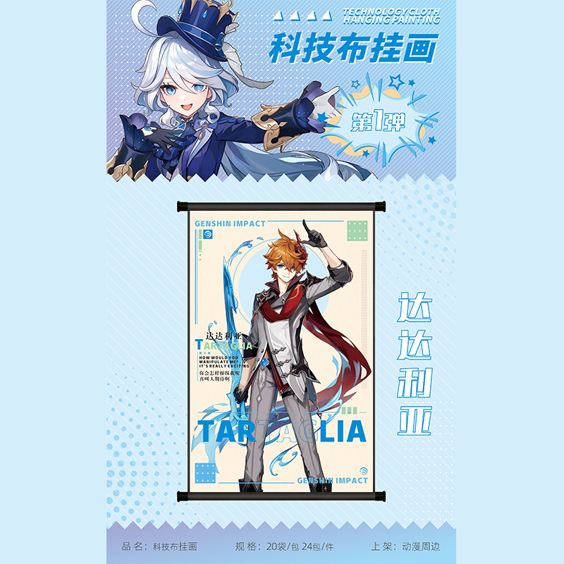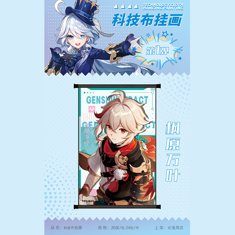 动漫芙宁娜流浪者雷电将军胡桃纳西妲温迪魈那维莱特布艺挂画卷轴
