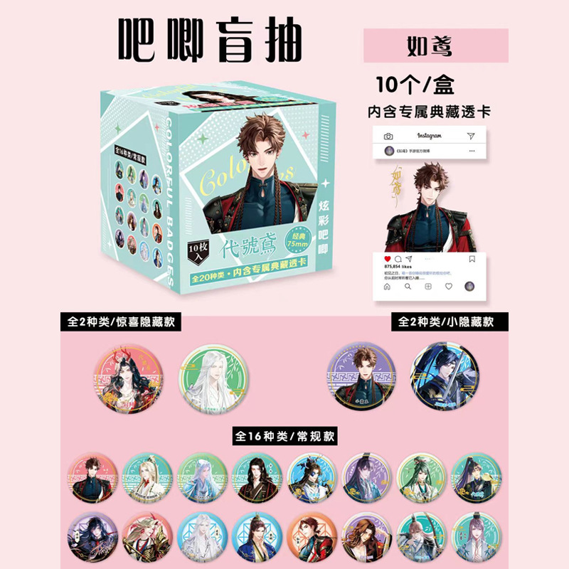 动漫75MM吧唧蓝锁排球咒术天官魔道第五人格徽章10枚/盒双闪徽章2