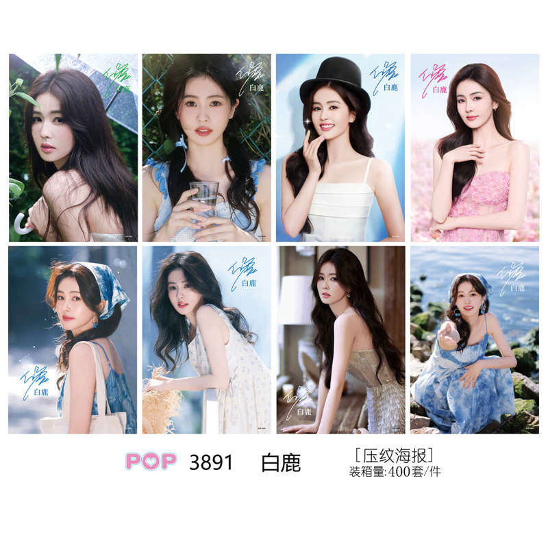 明星白鹿压纹海报墙纸贴画8张一套学生礼品挂画周边
