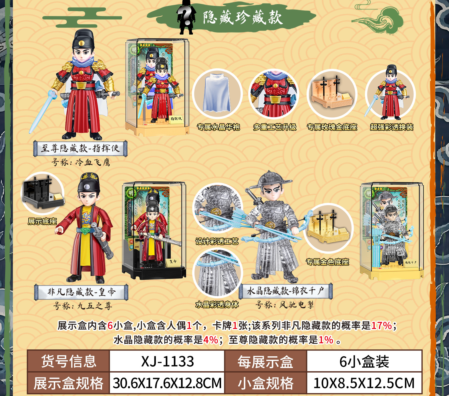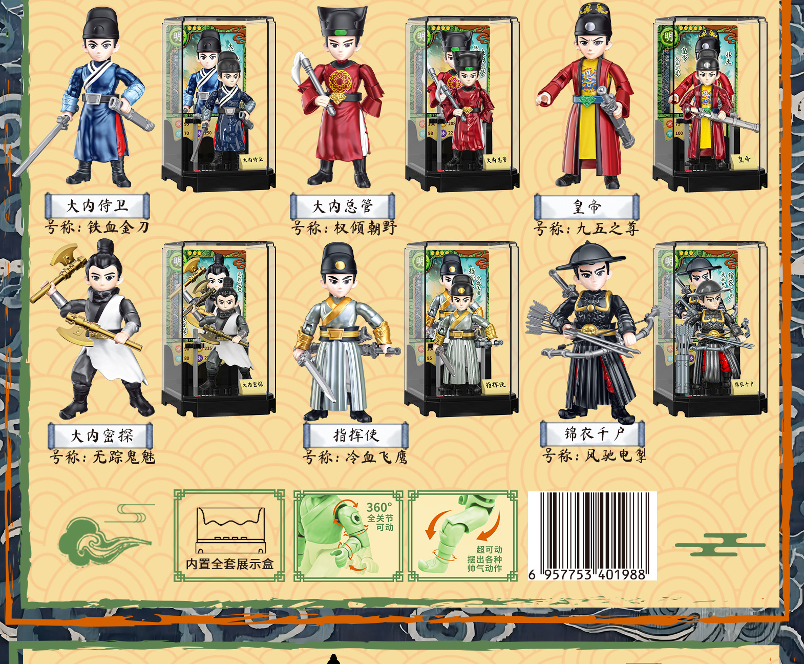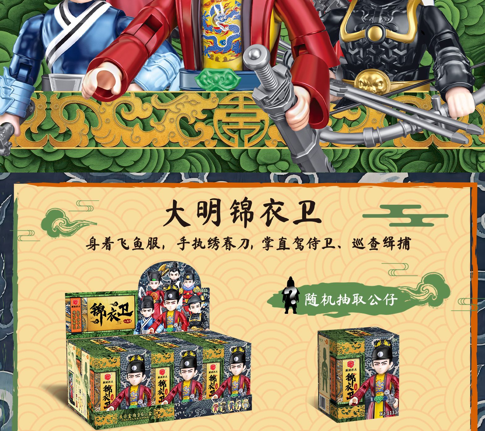 翔竣积木锦衣卫潮盲盒大内侍卫密探指挥使皇帝珍藏版男拼装玩具