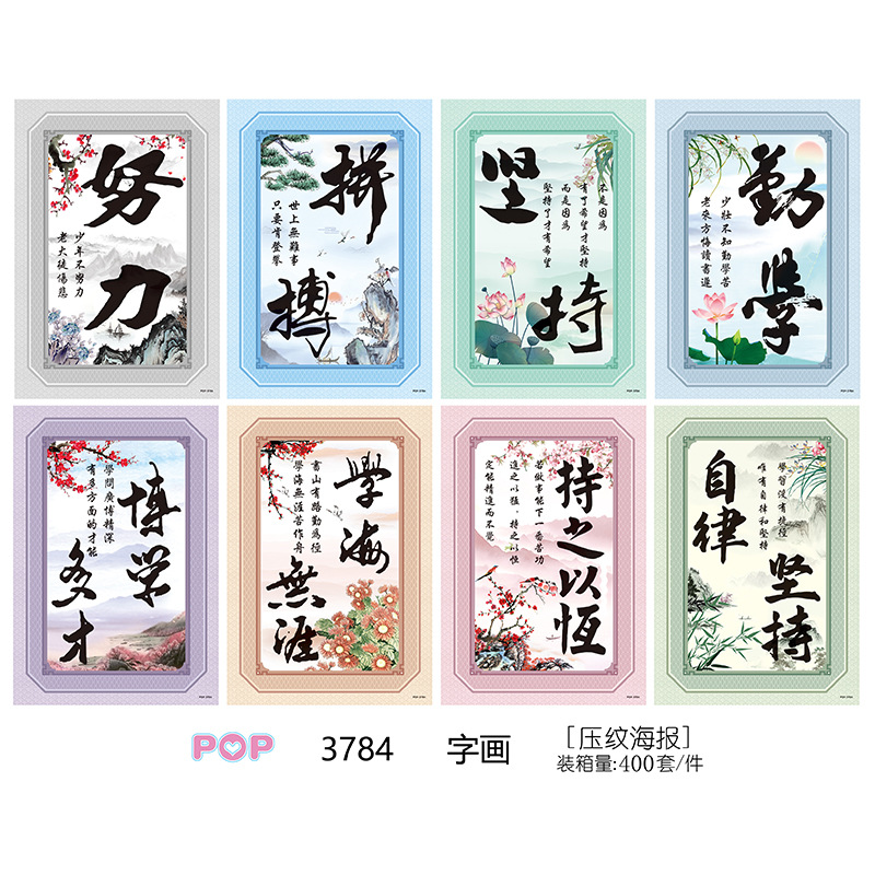 动漫字画励志文字压纹海报墙纸画8张一套二次元谷子周边