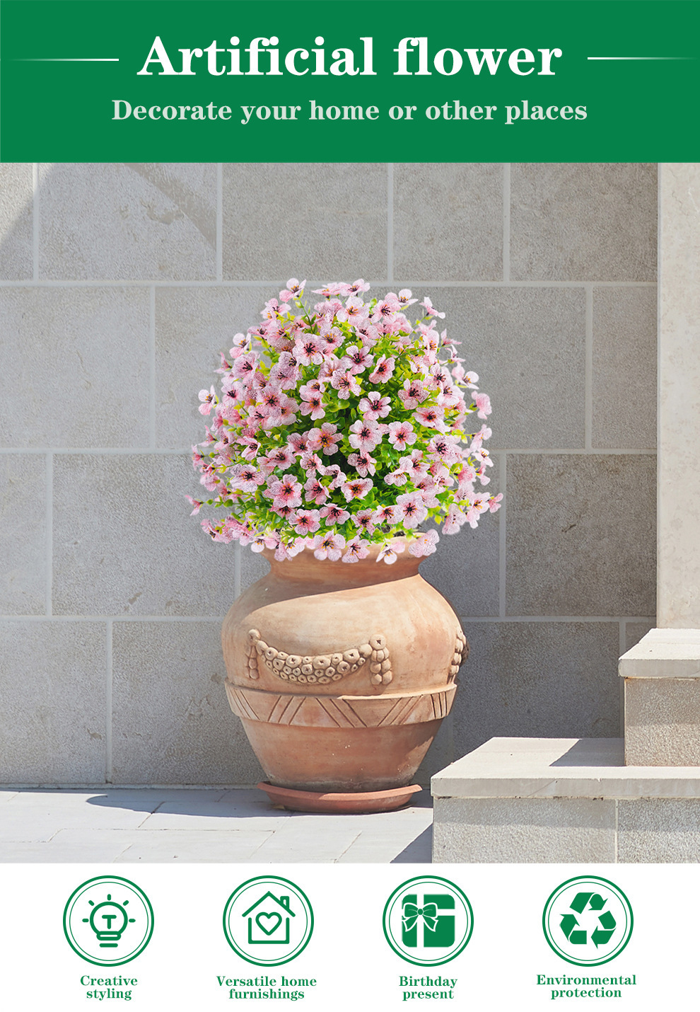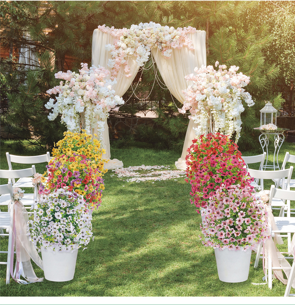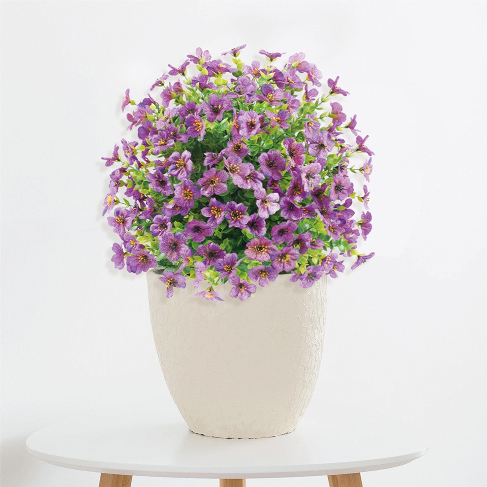 跨境假花尤加利紫罗兰装饰绿植户外拍摄婚庆用花道具仿真花地插