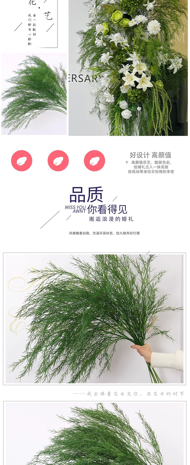 婚庆仿真花绿色系绿草竹峰仿真绿植假植物森系婚礼堂插花挑高叶材