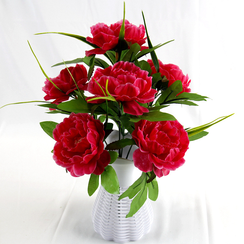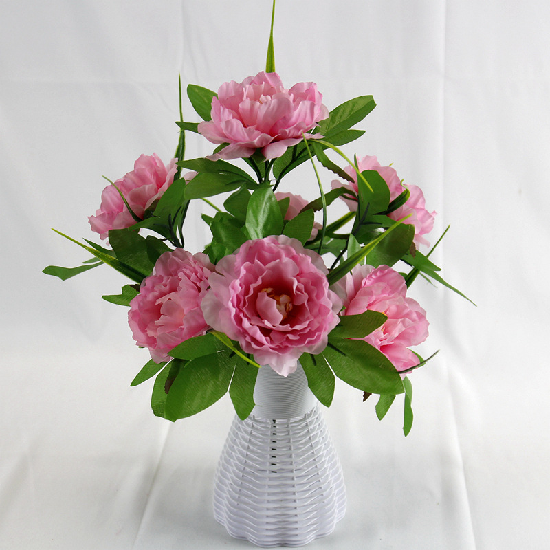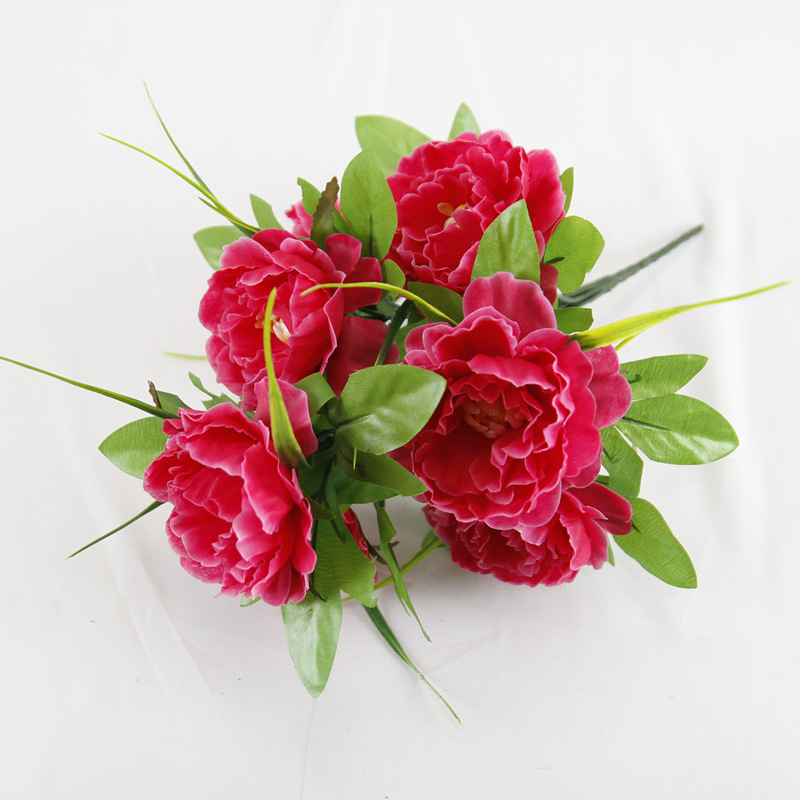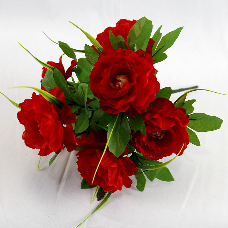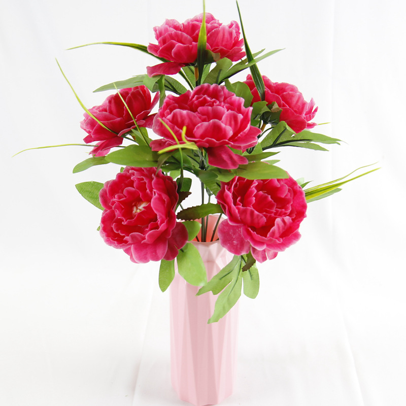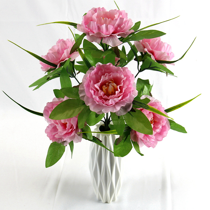 跨境7头洋牡丹仿真花假绢花婚庆布置家居装饰花束塑料花仿真盆景
