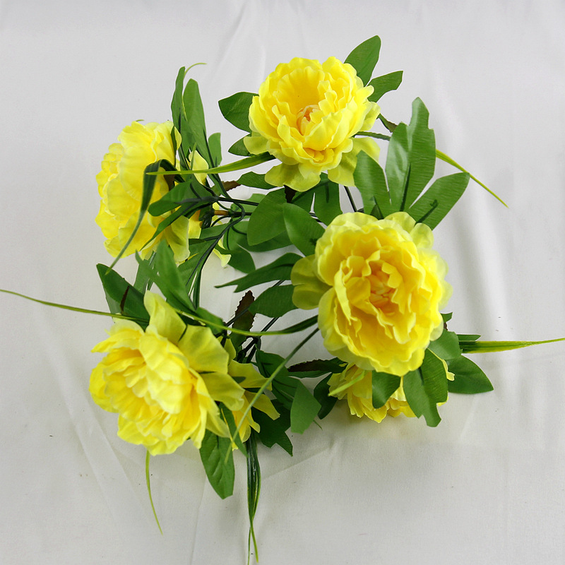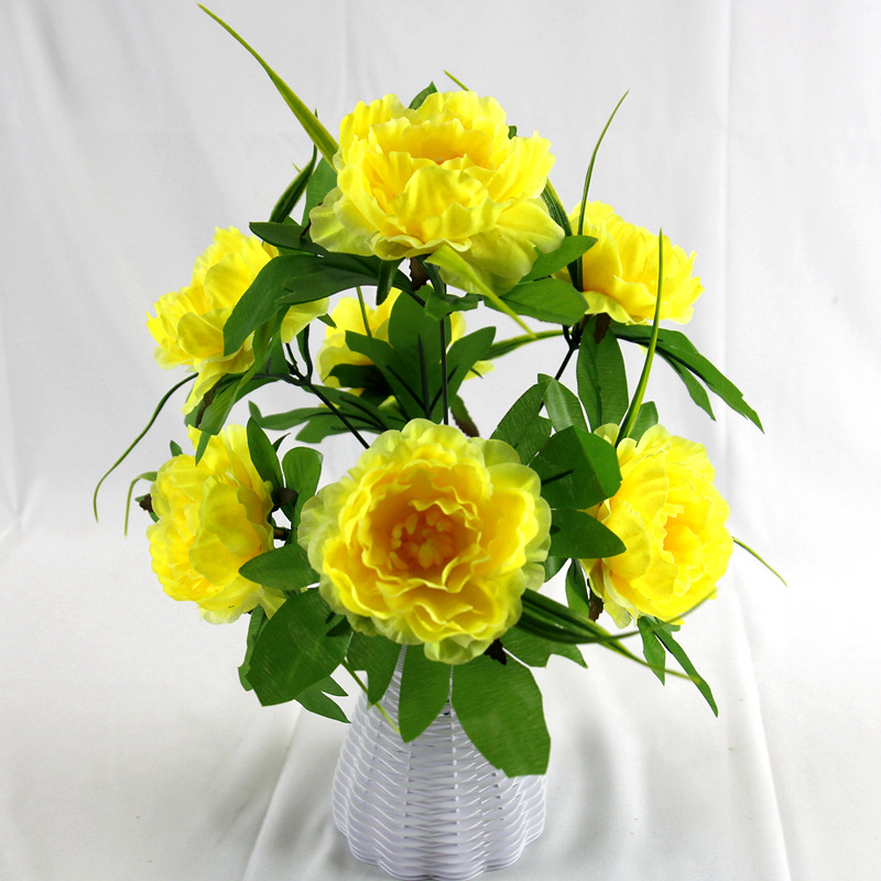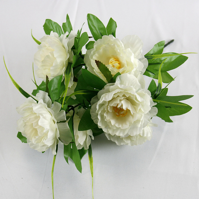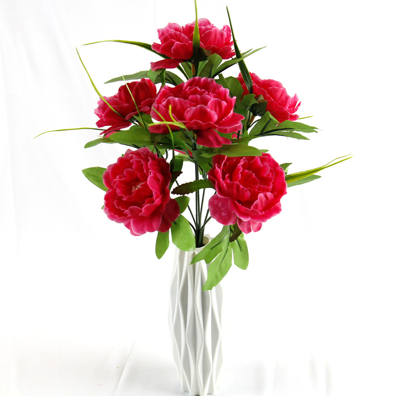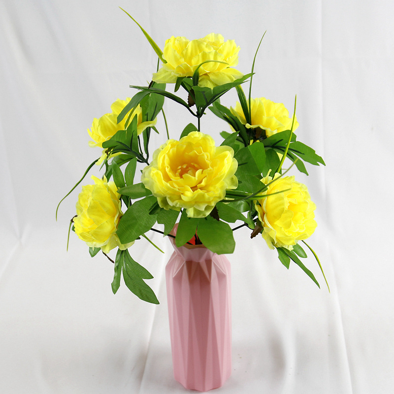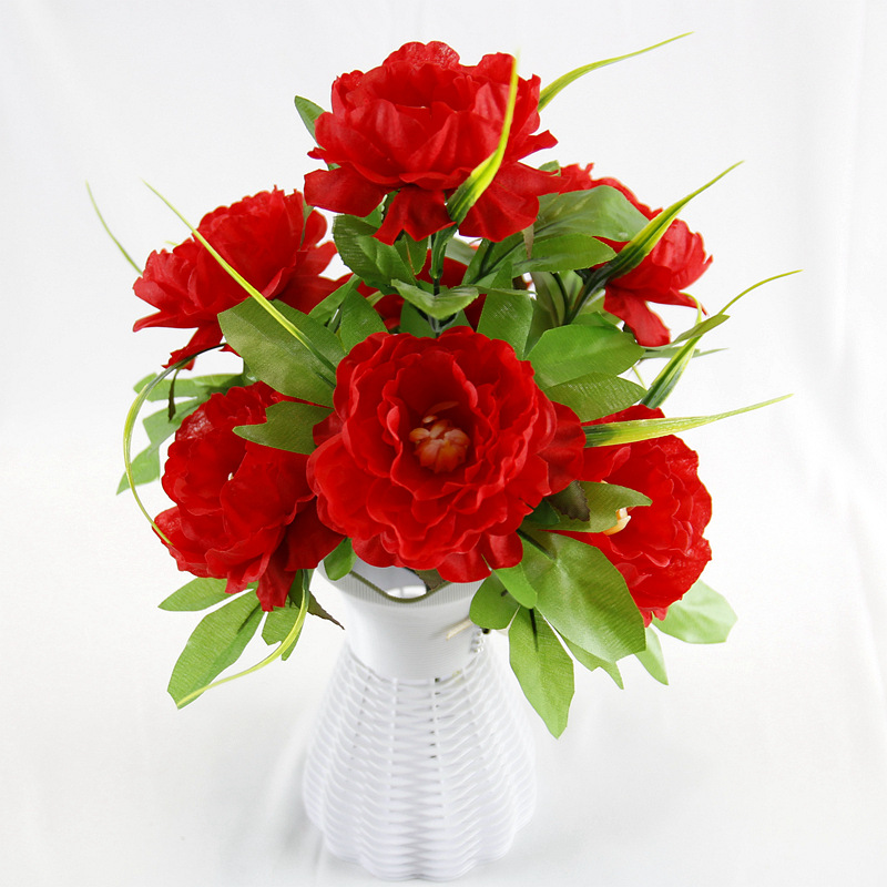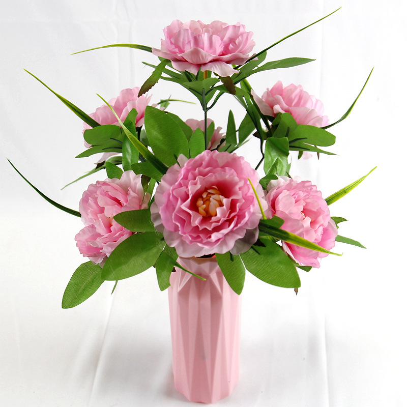 跨境7头洋牡丹仿真花假绢花婚庆布置家居装饰花束塑料花仿真盆景