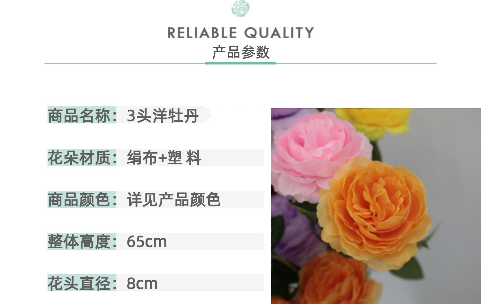 仿真花3头洋牡丹欧式玫瑰婚礼布置家居装饰跨境手工假花摆件批发