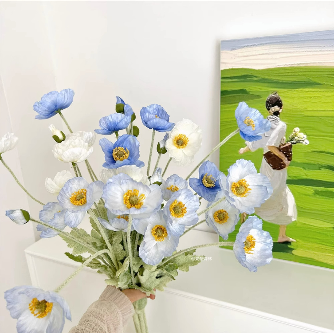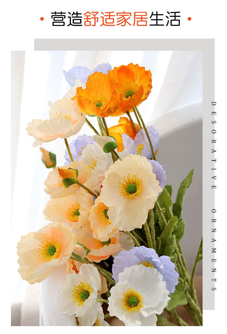 ins风虞美人仿真花假花绿植绢布客厅花瓶花束家居装饰摆件拍照道