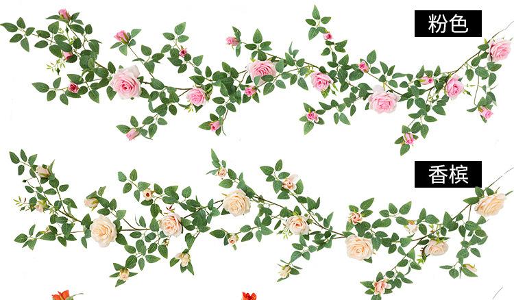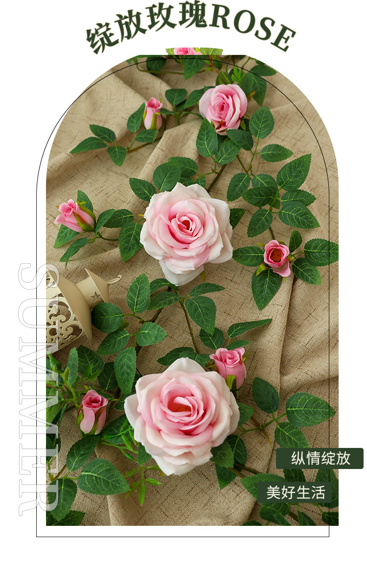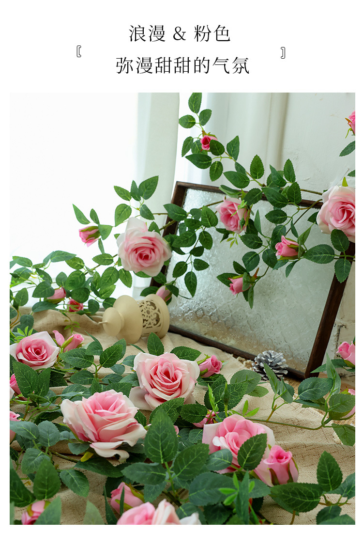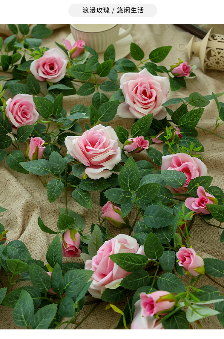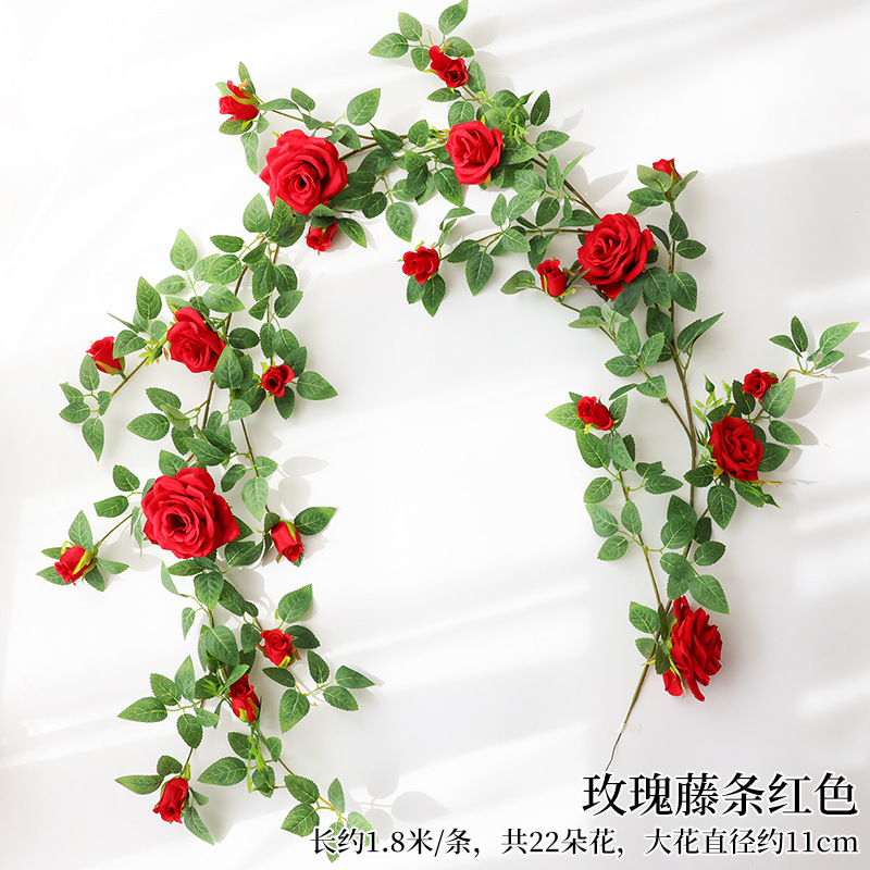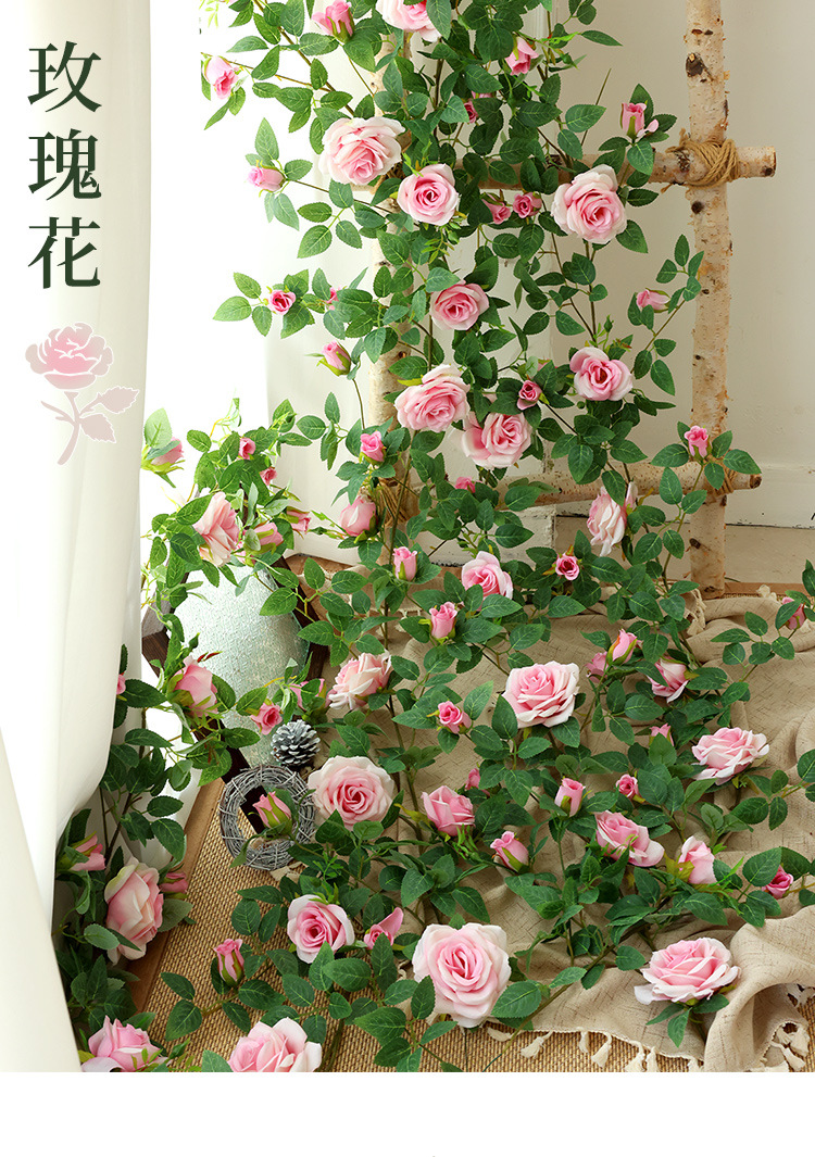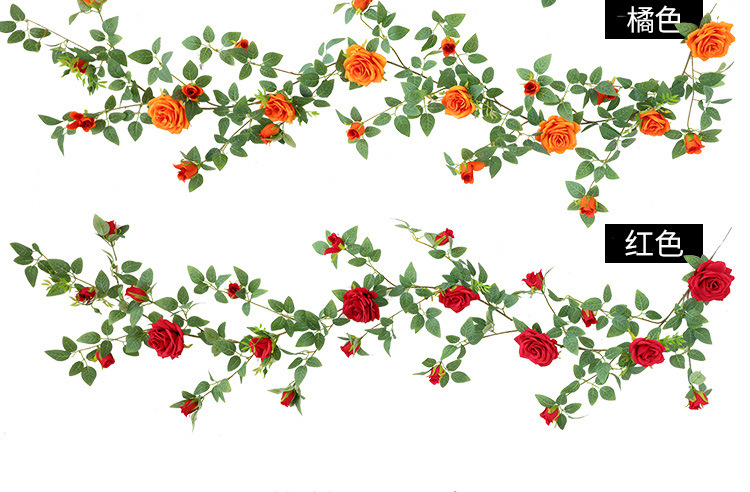 仿真玫瑰花藤蔓客厅室内阳台空调管道庭院装饰假花藤条墙壁挂绿植