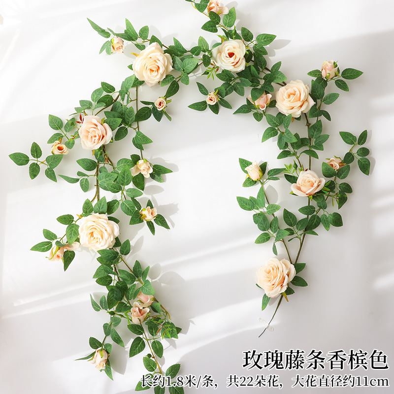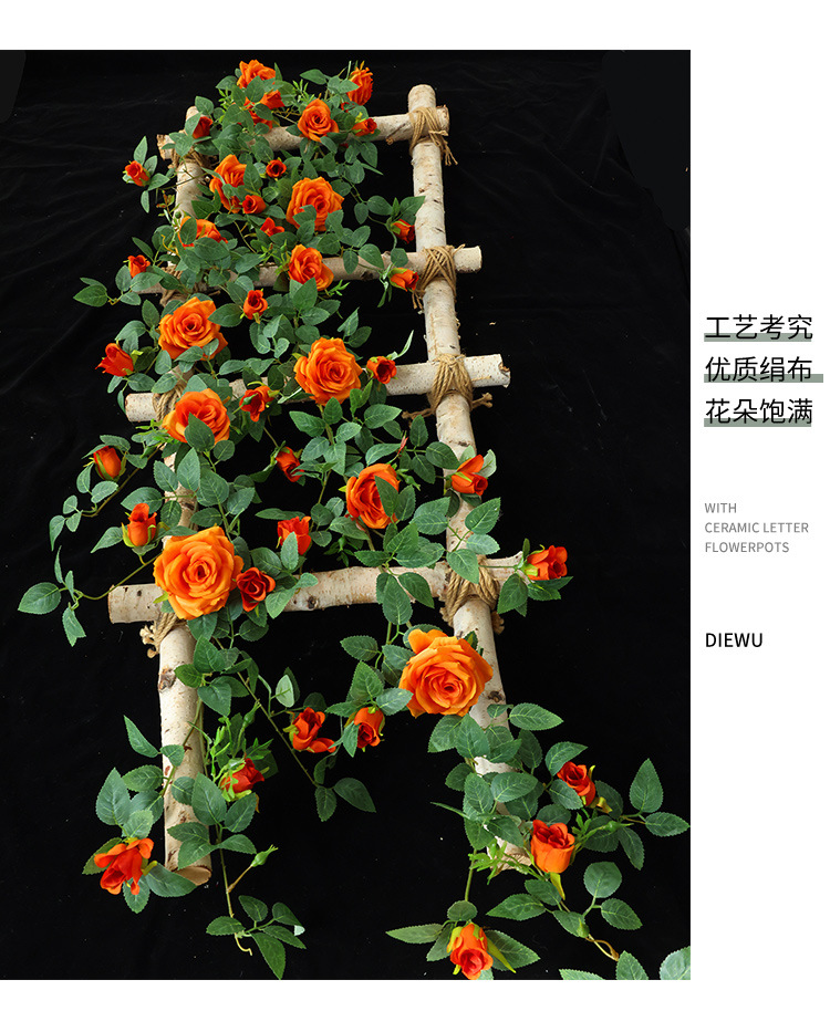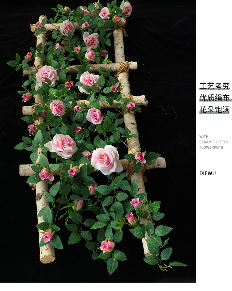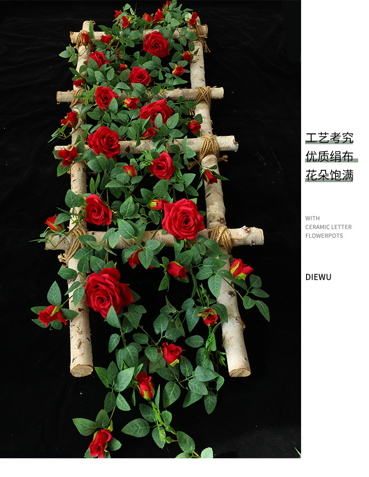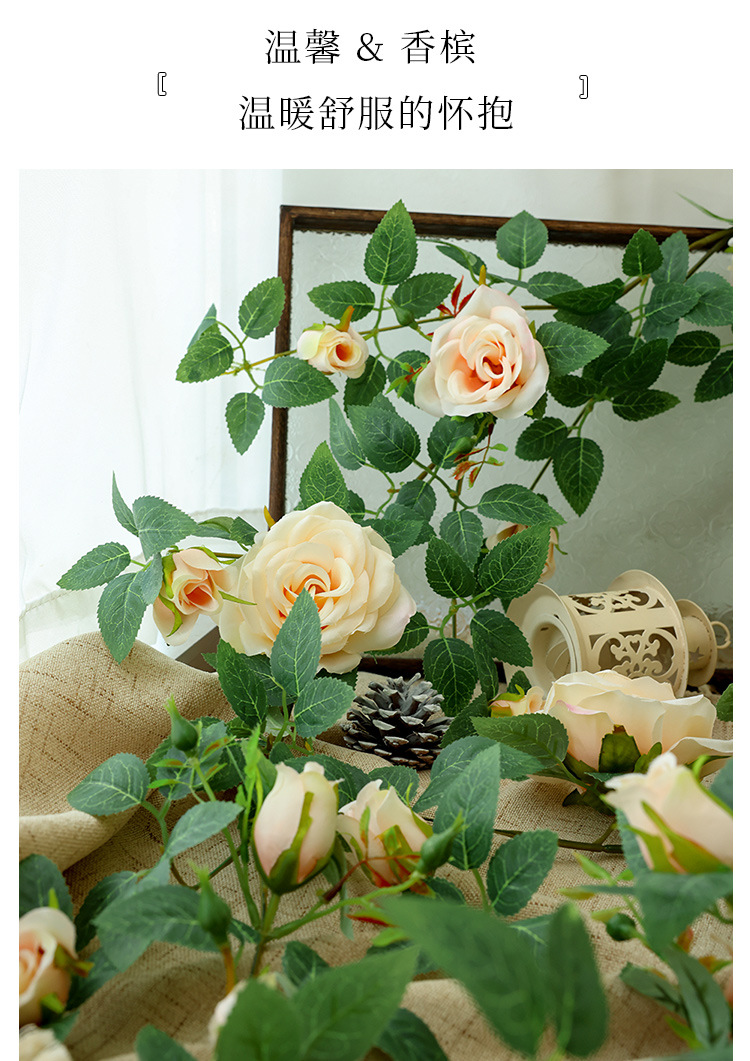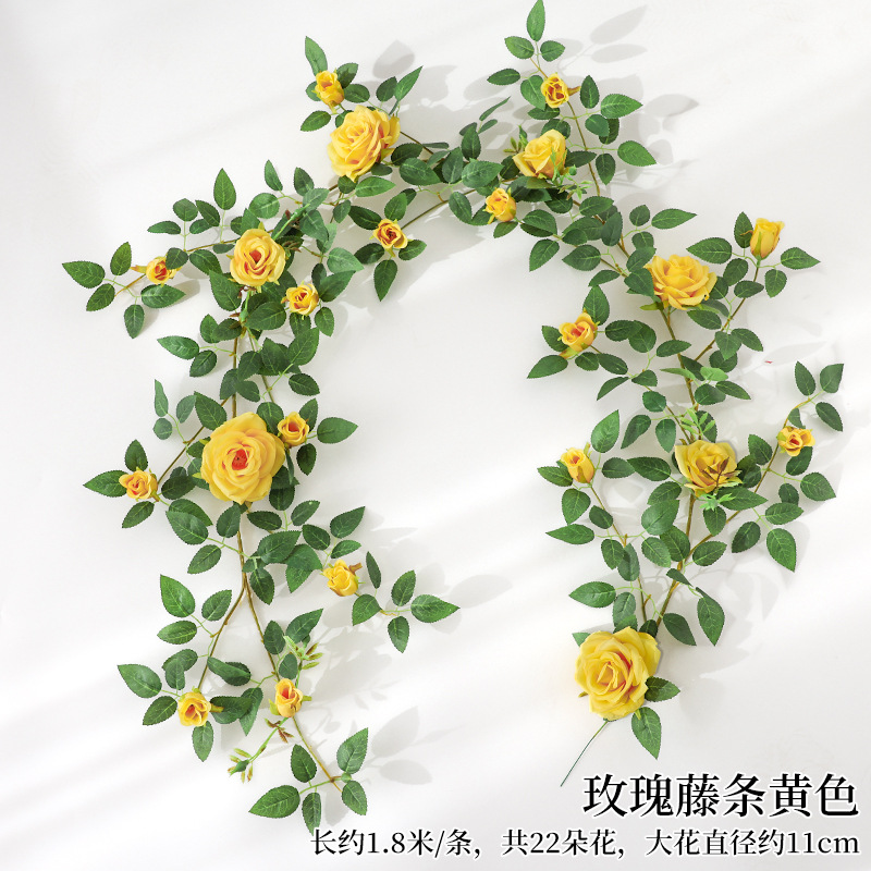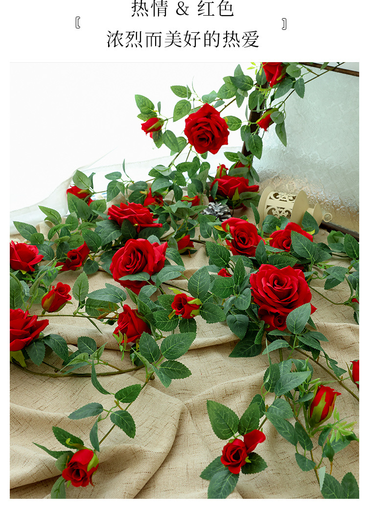 仿真玫瑰花藤蔓客厅室内阳台空调管道庭院装饰假花藤条墙壁挂绿植