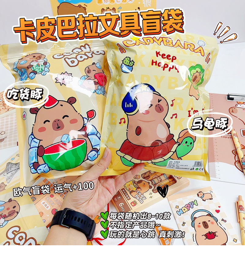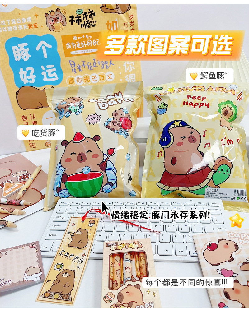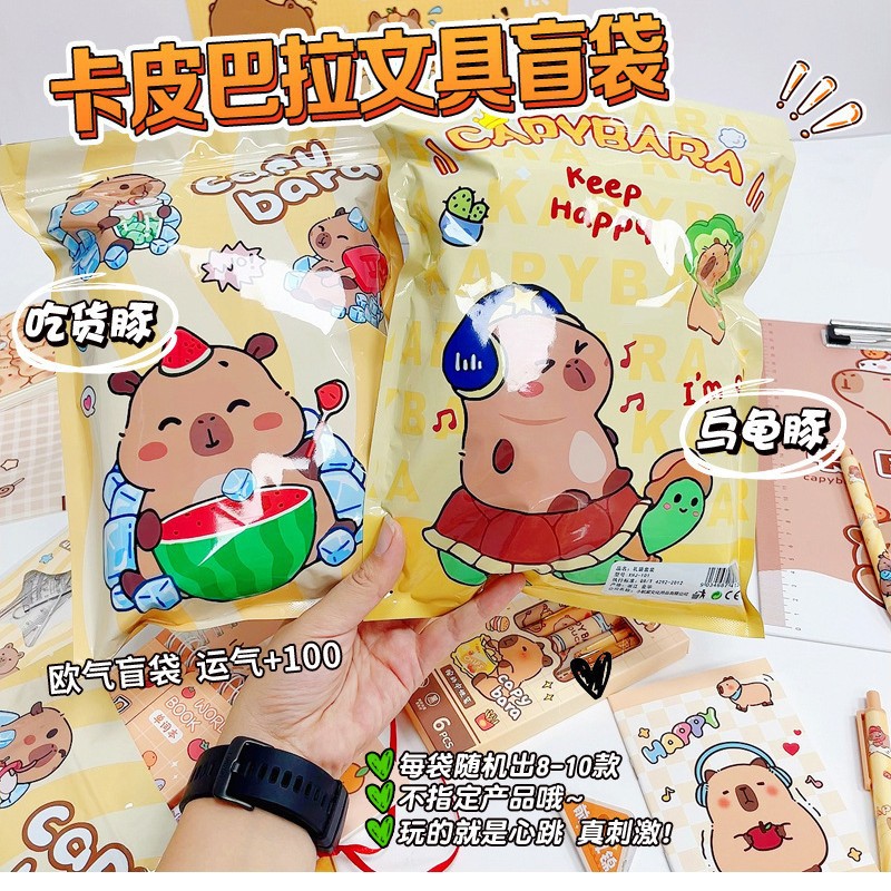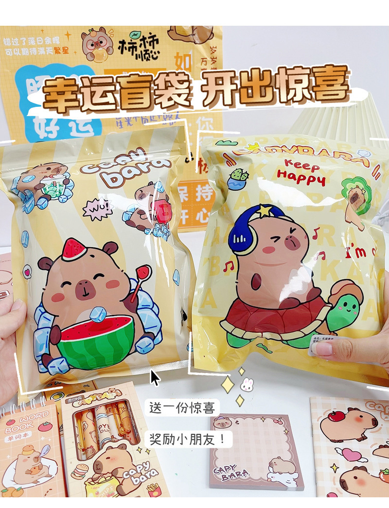 卡皮巴拉文具盲袋文具大礼包开学礼物小学生奖励奖品卡通水豚盲袋