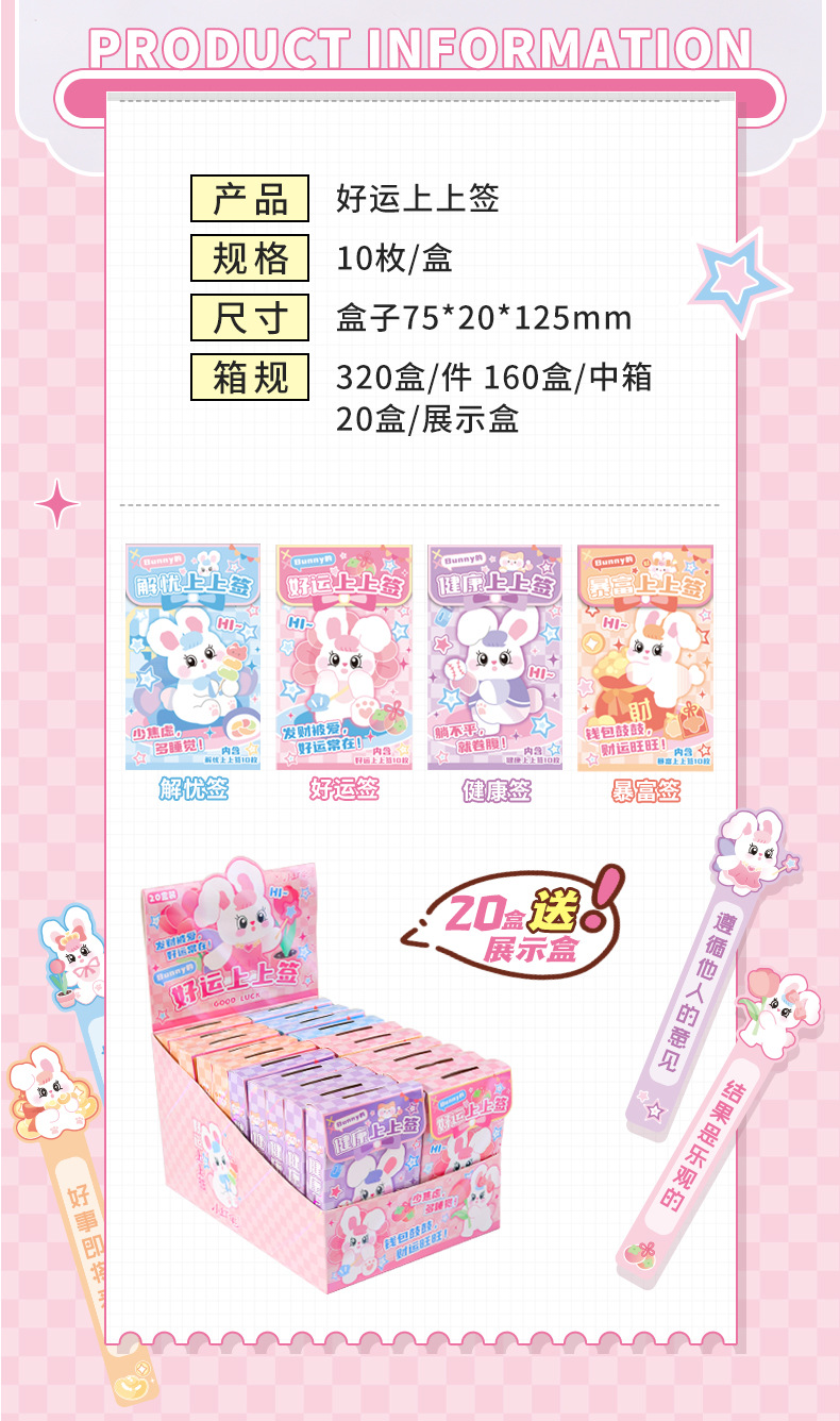 2025新款好运上上签儿童礼物批发可爱抽签桶创意趣味书签文具礼盒