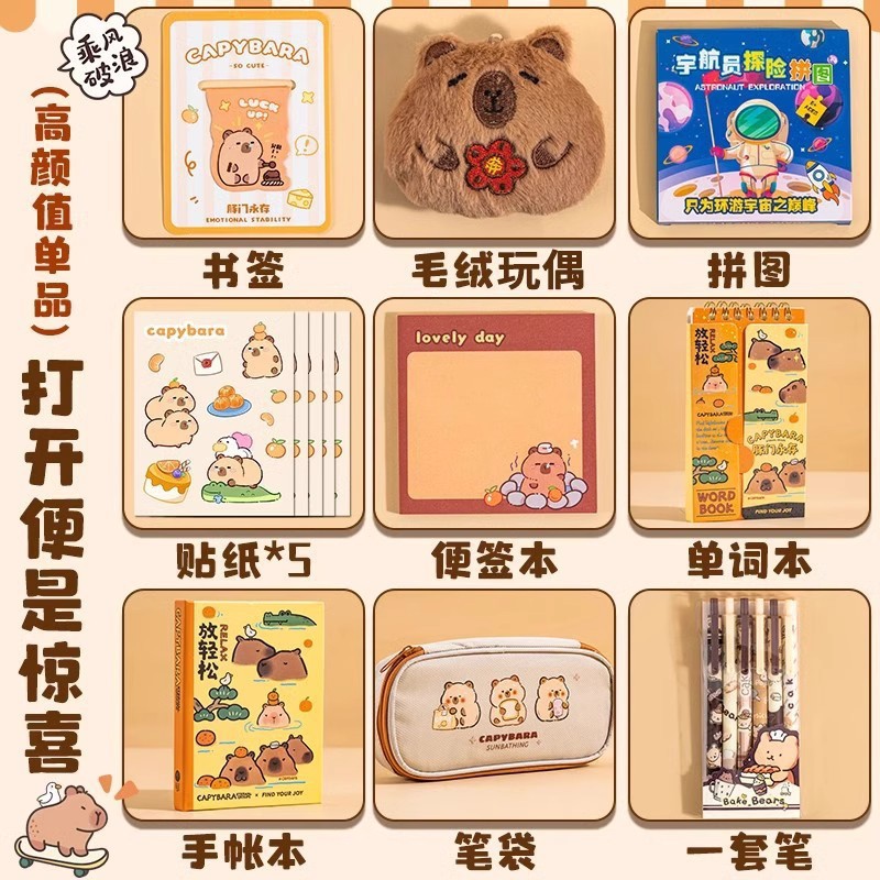 卡皮巴拉文具套装儿童文具大礼包学生礼物实用学习用品奖品伴手礼