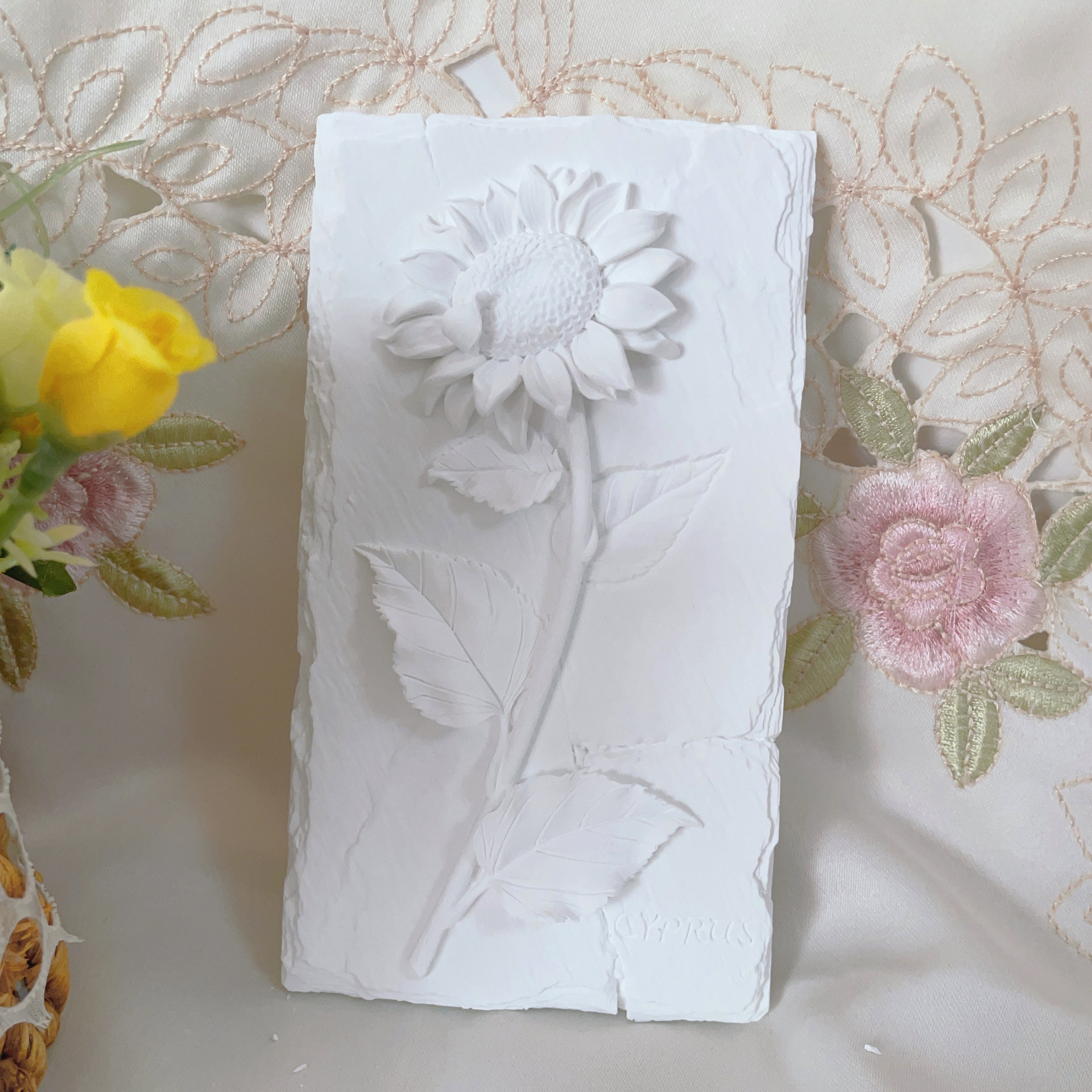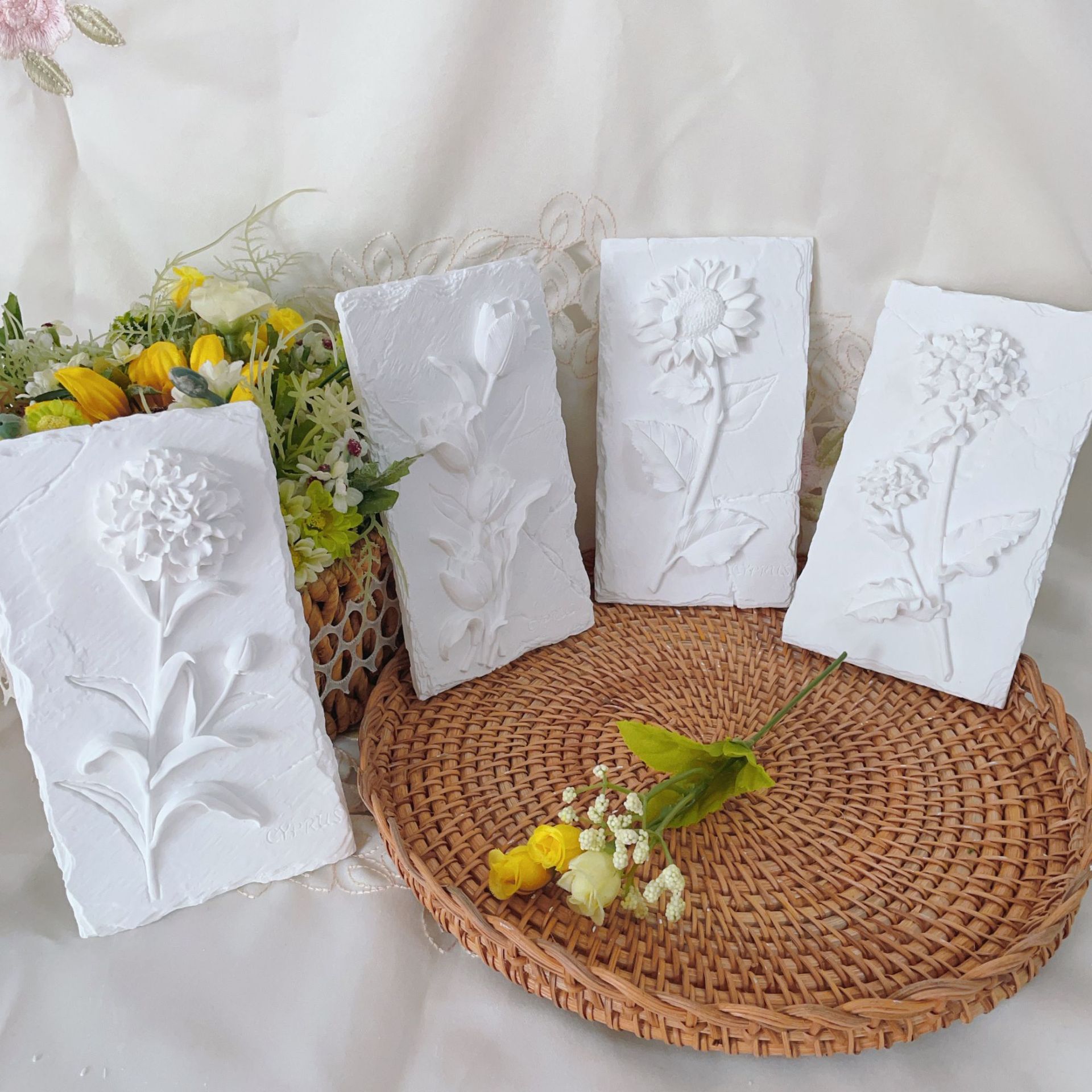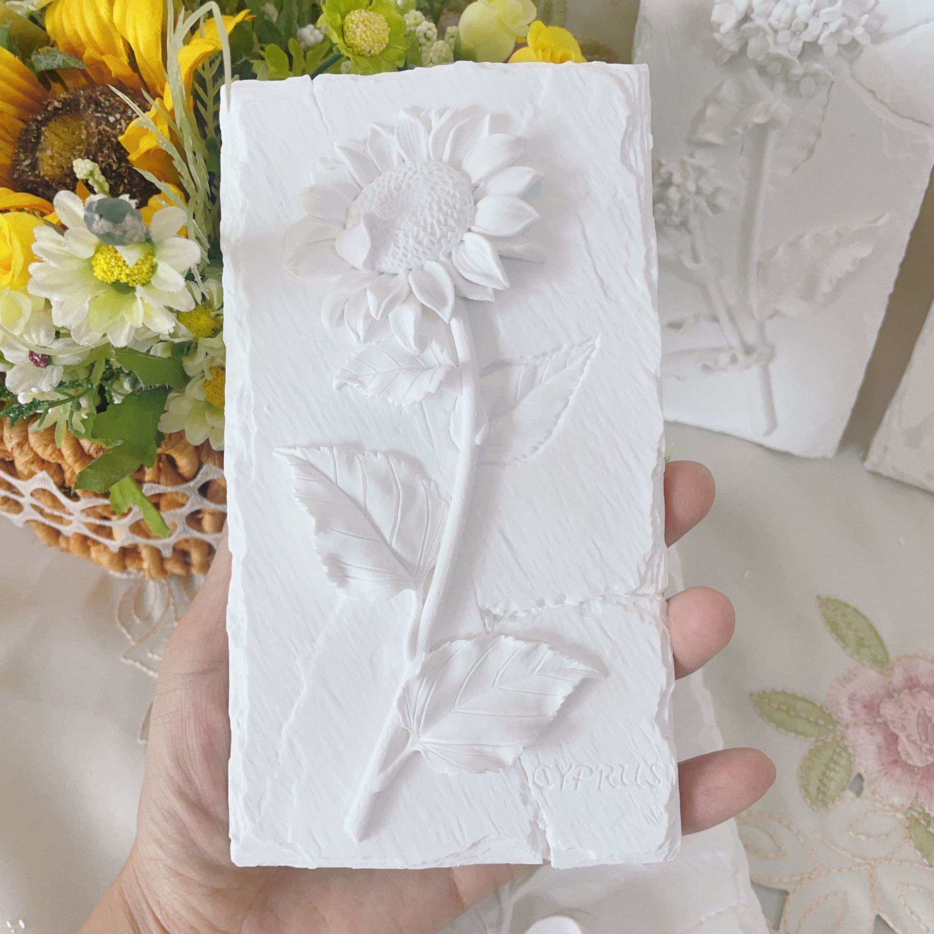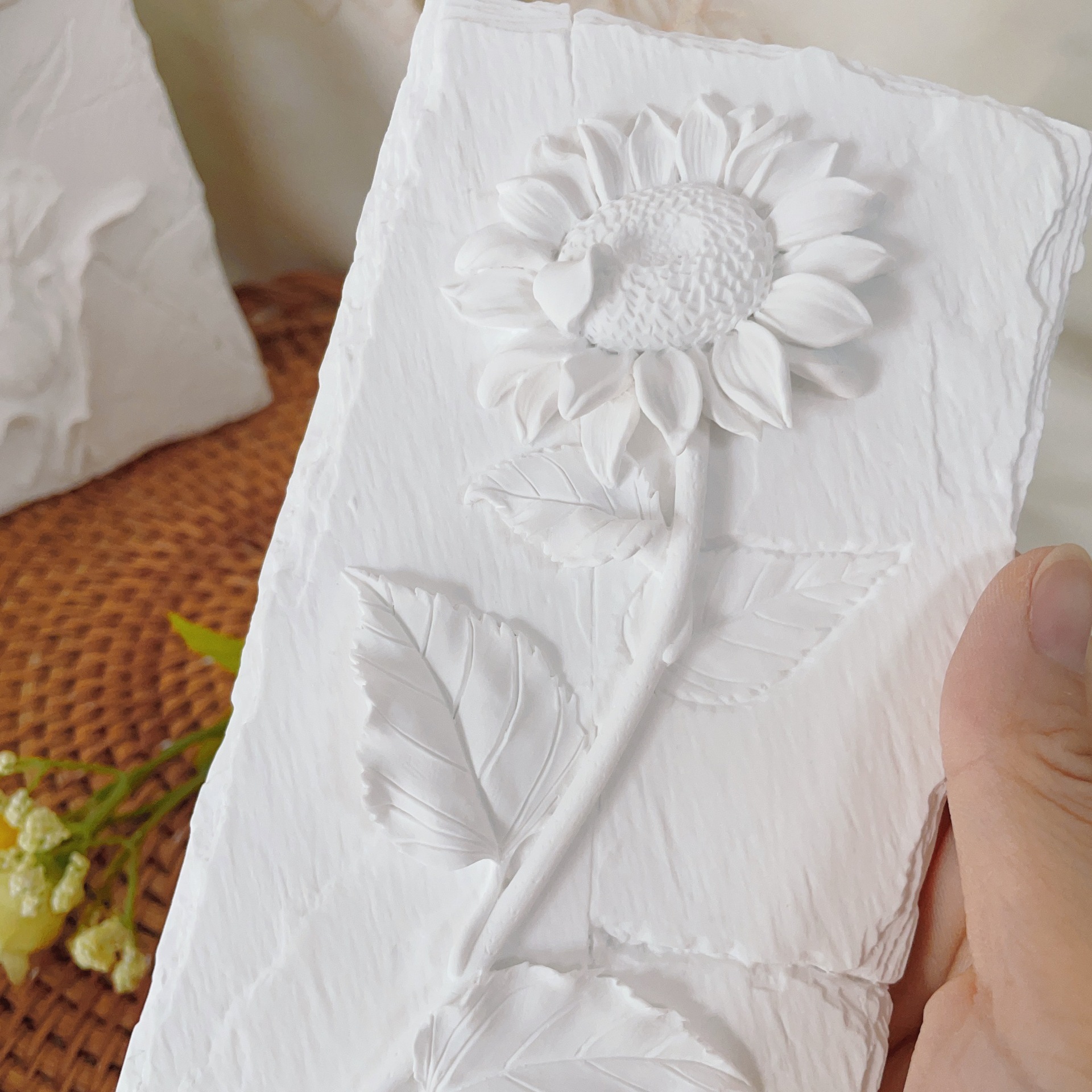 立体石膏画手工浮雕画欧式装饰白胚画彩绘diy涂鸦向日葵创意摆件
