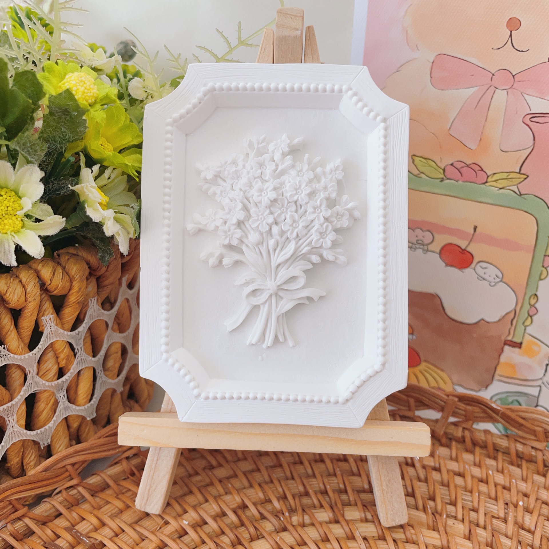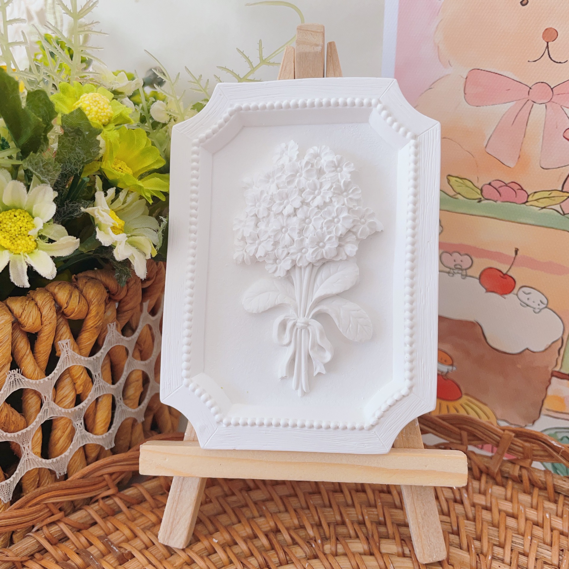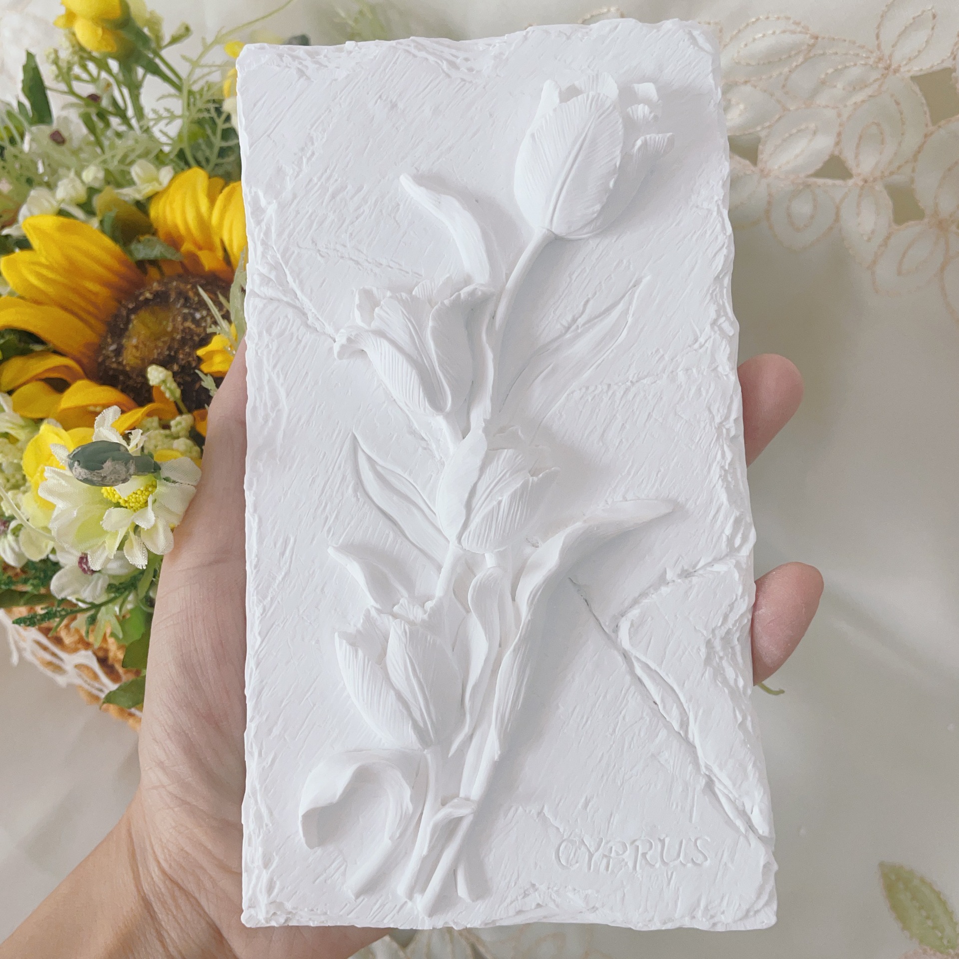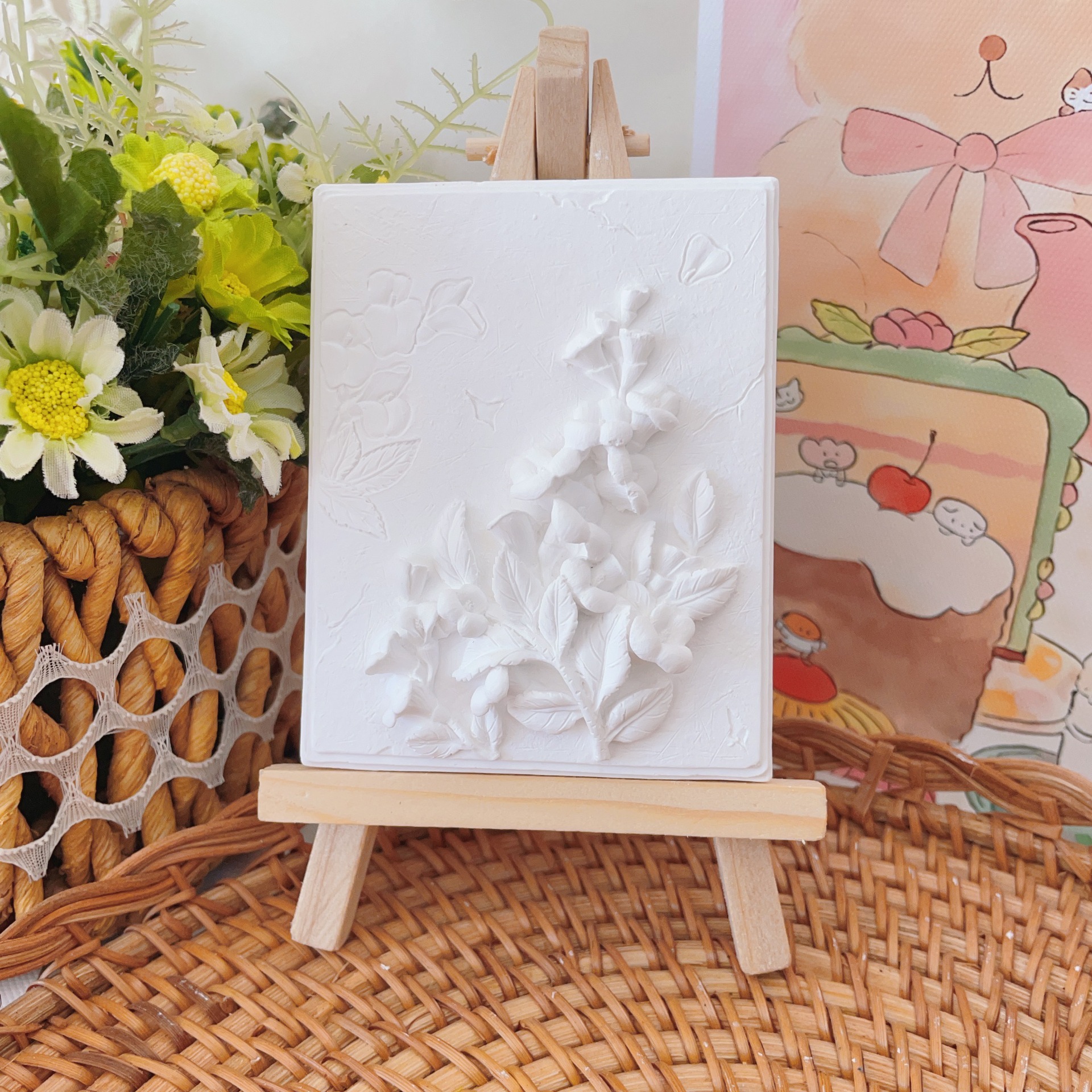 立体石膏画手工浮雕画欧式装饰白胚画彩绘diy涂鸦向日葵创意摆件
