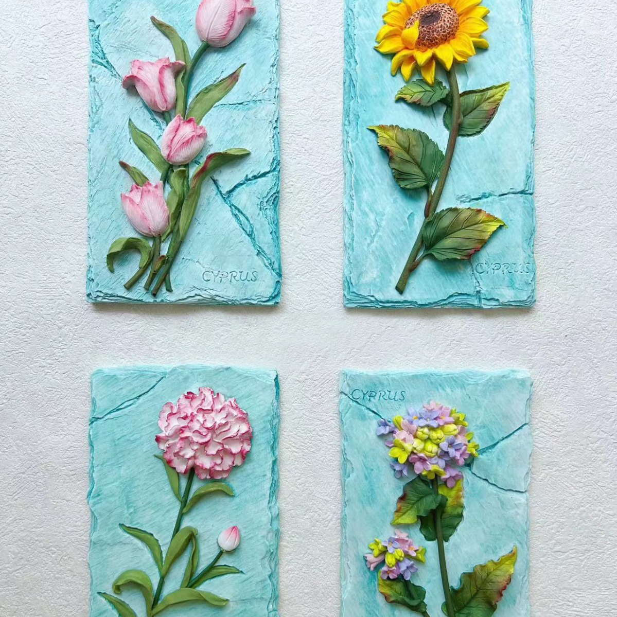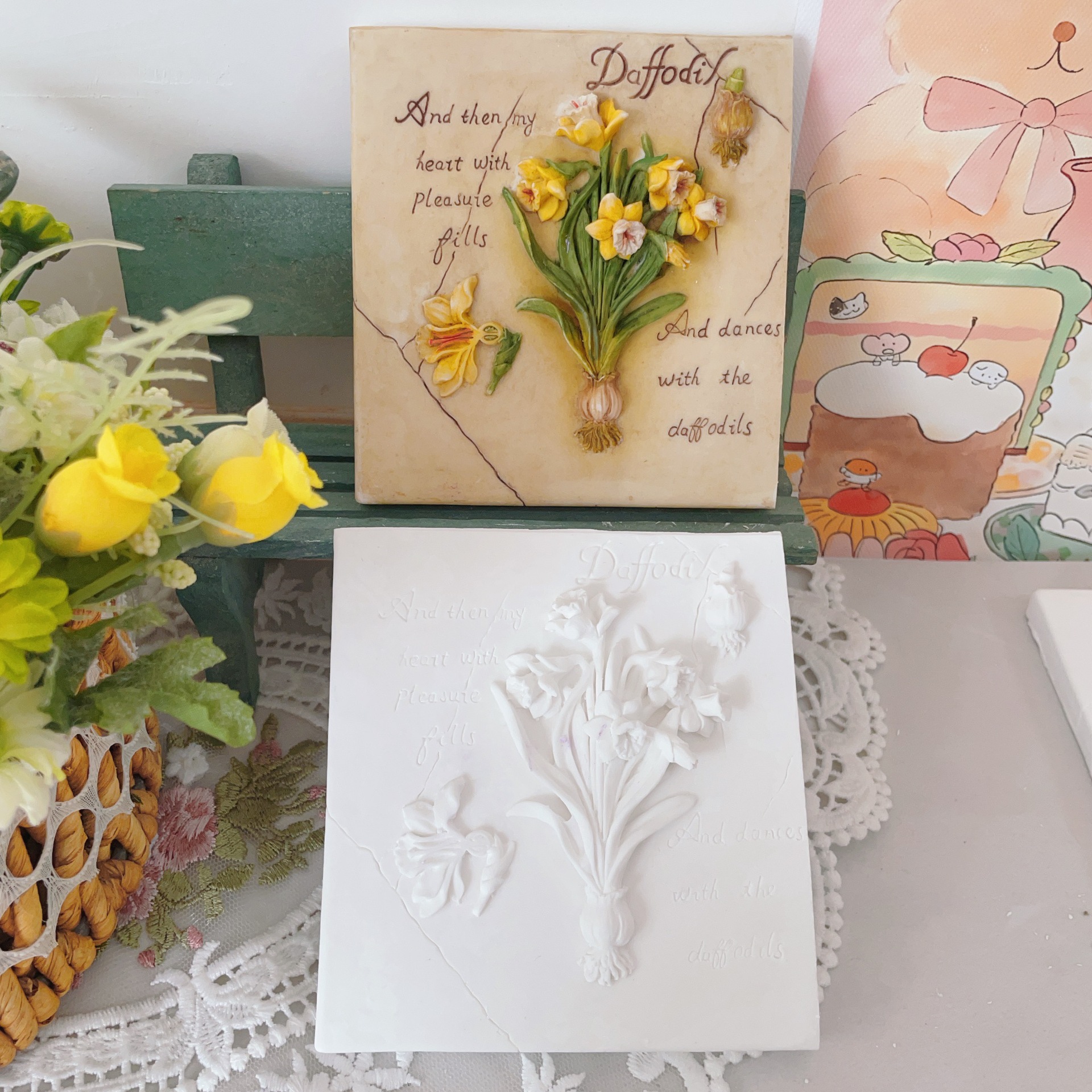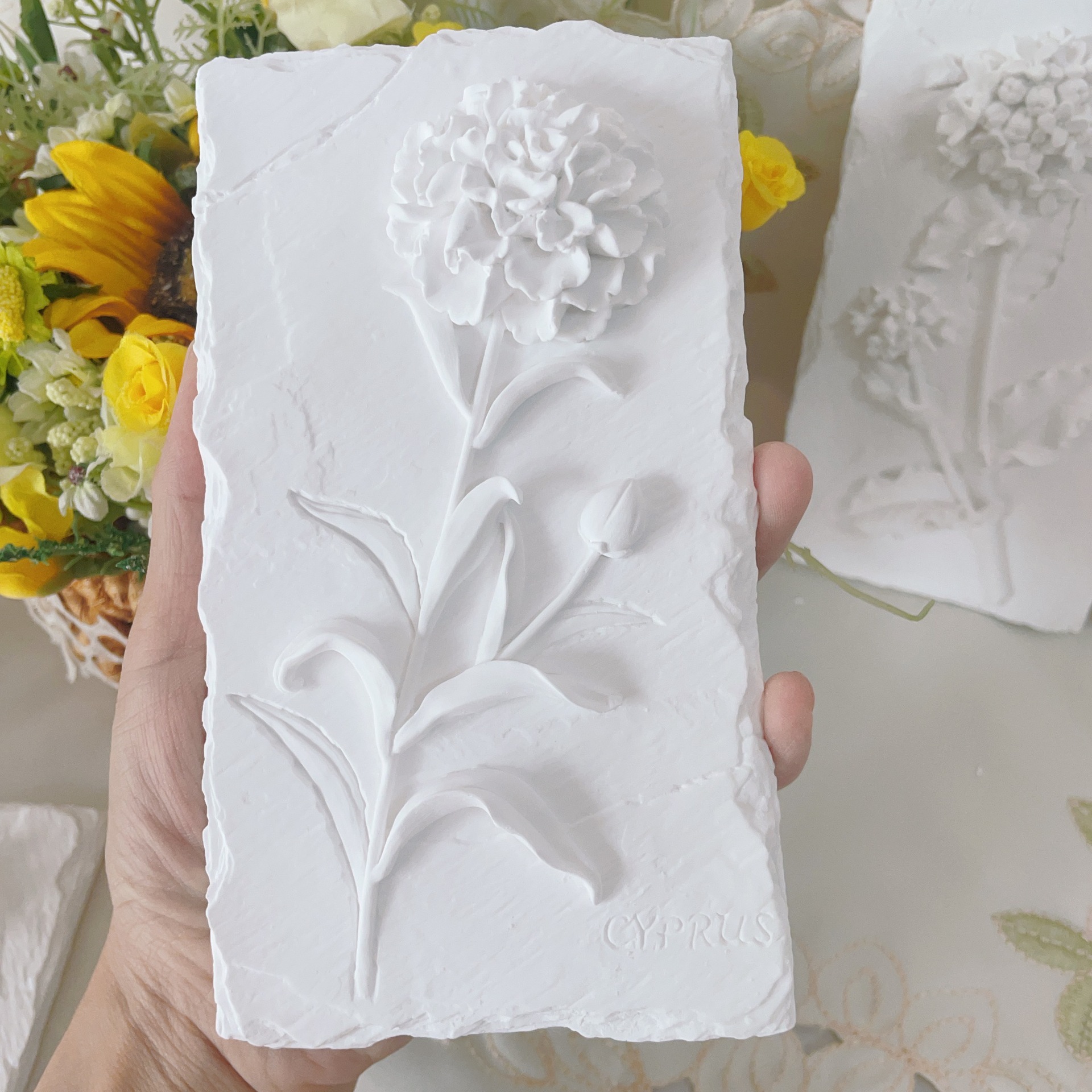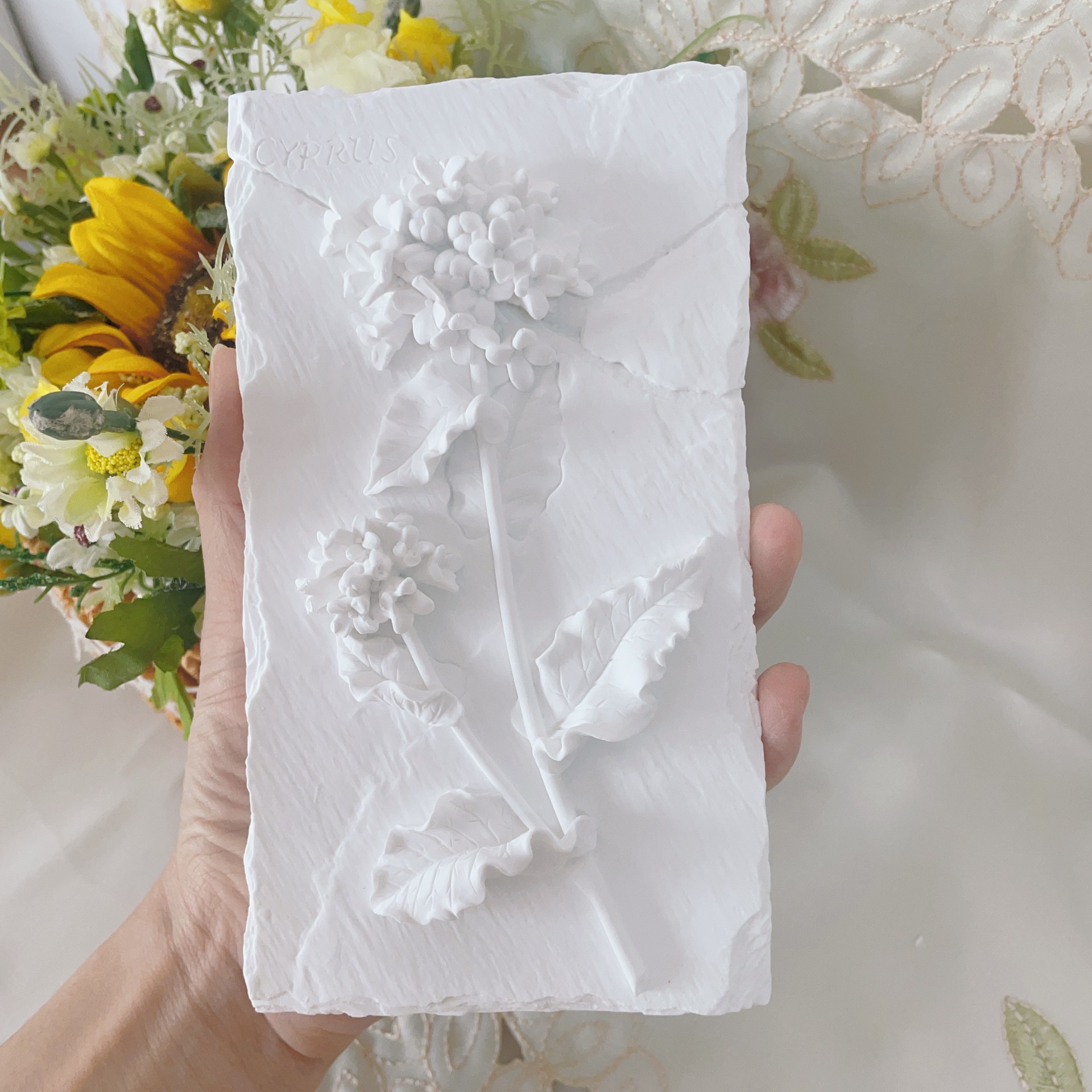 立体石膏画手工浮雕画欧式装饰白胚画彩绘diy涂鸦向日葵创意摆件