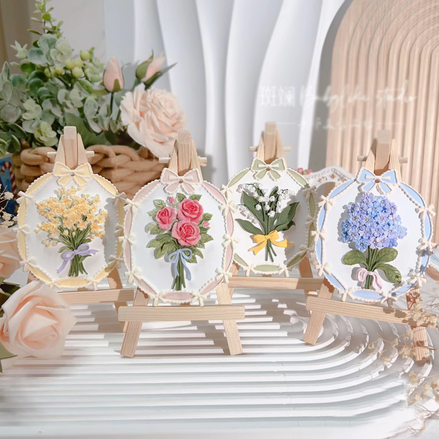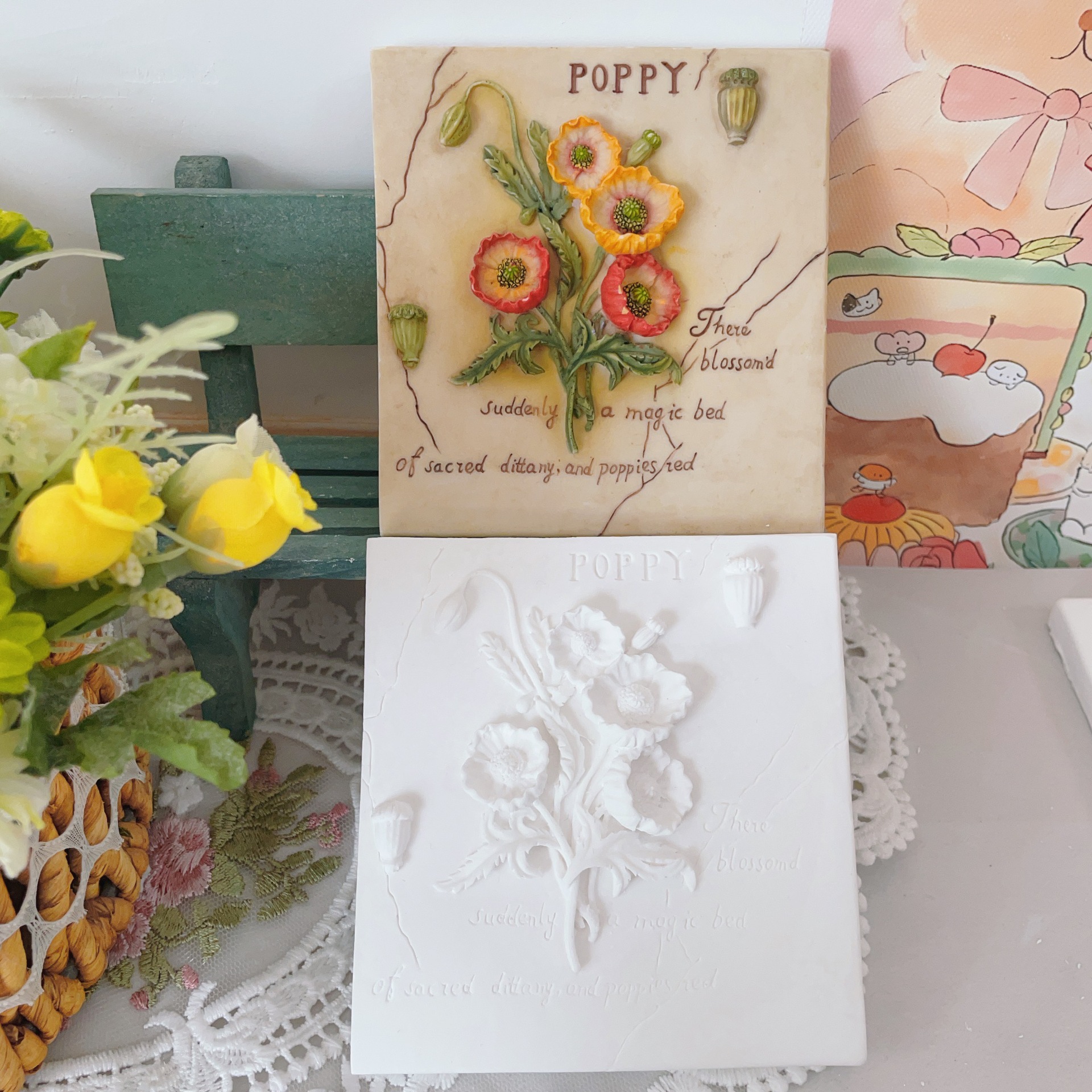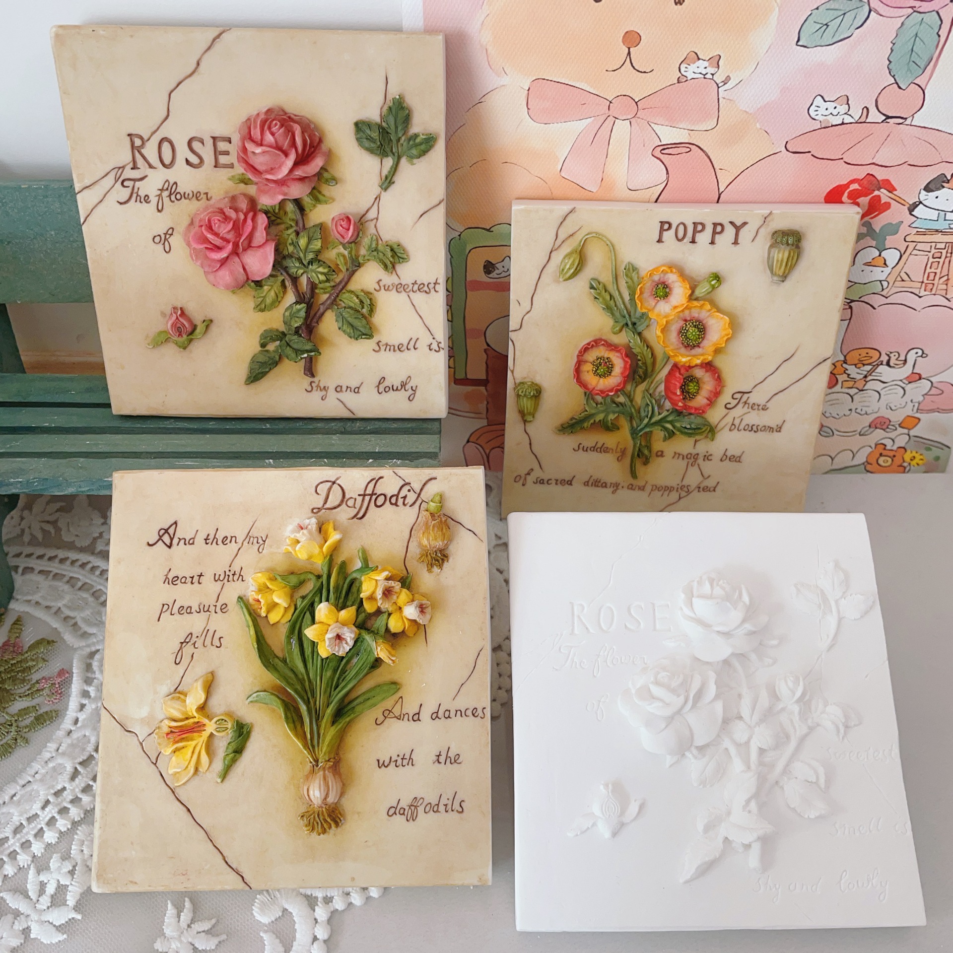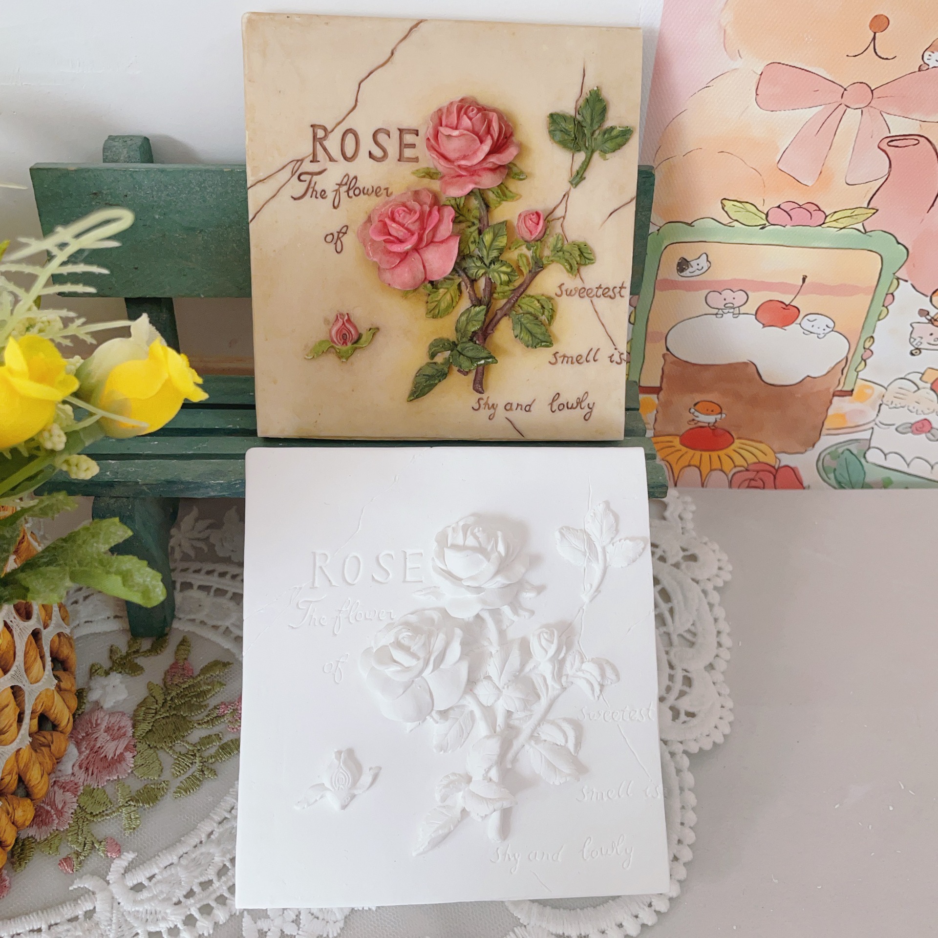 立体石膏画手工浮雕画欧式装饰白胚画彩绘diy涂鸦向日葵创意摆件
