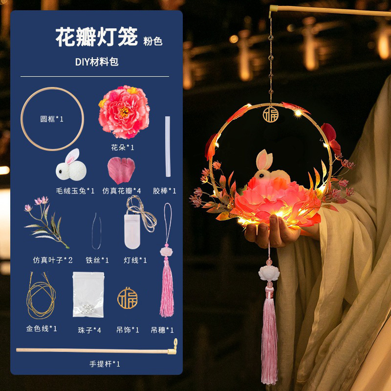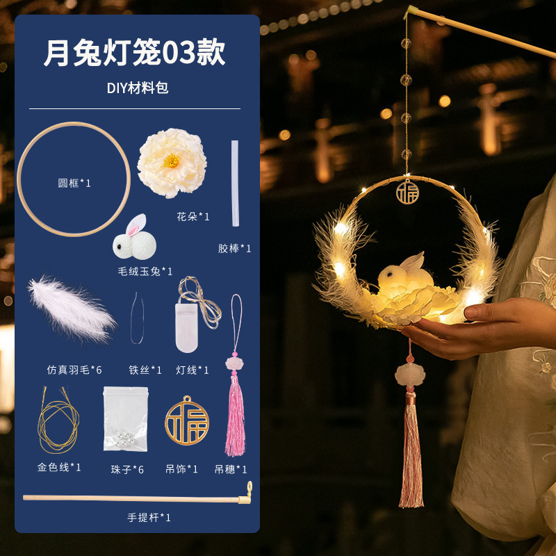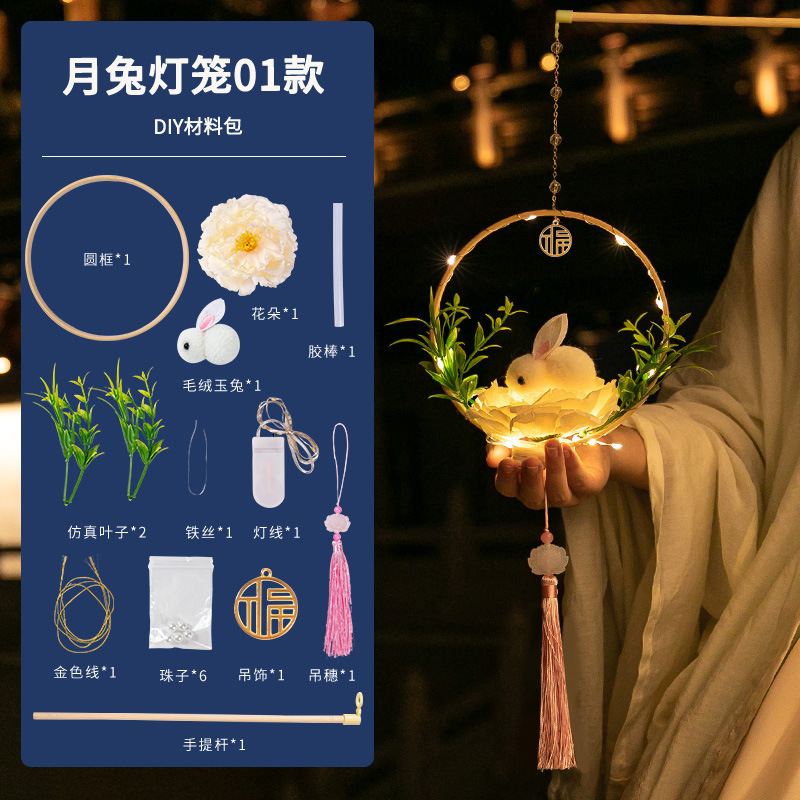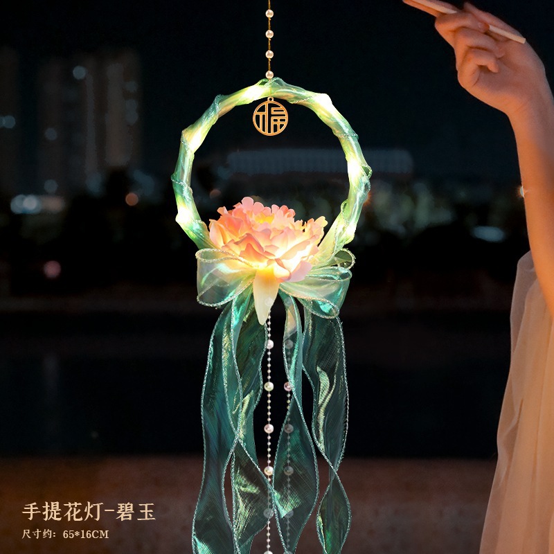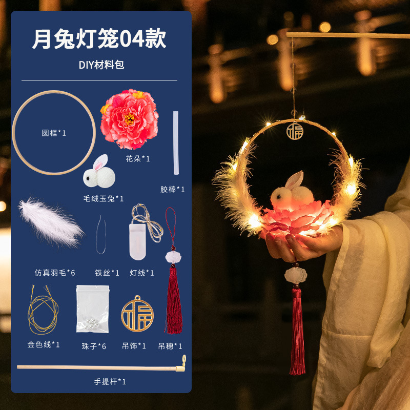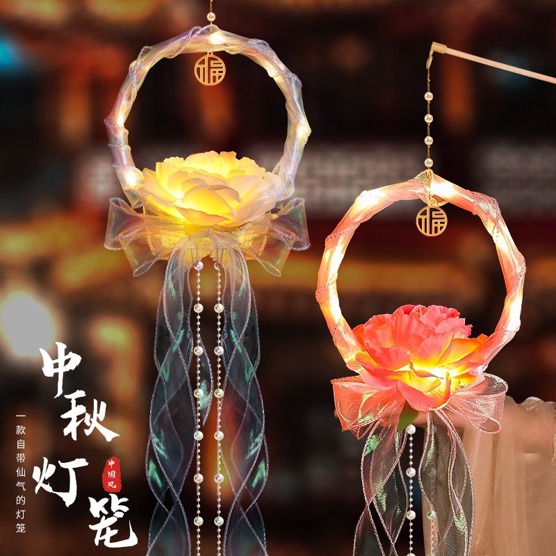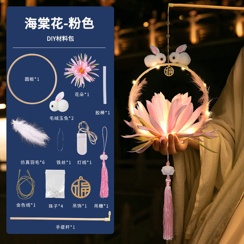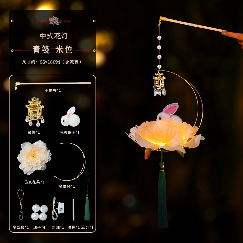 中秋节国庆牡丹手提宫灯发光水母灯笼儿童手工diy材料包手提花灯