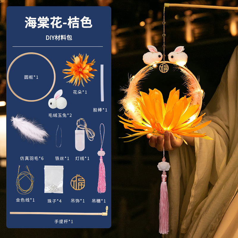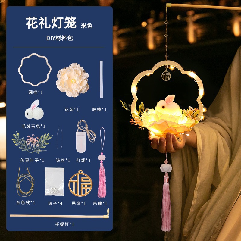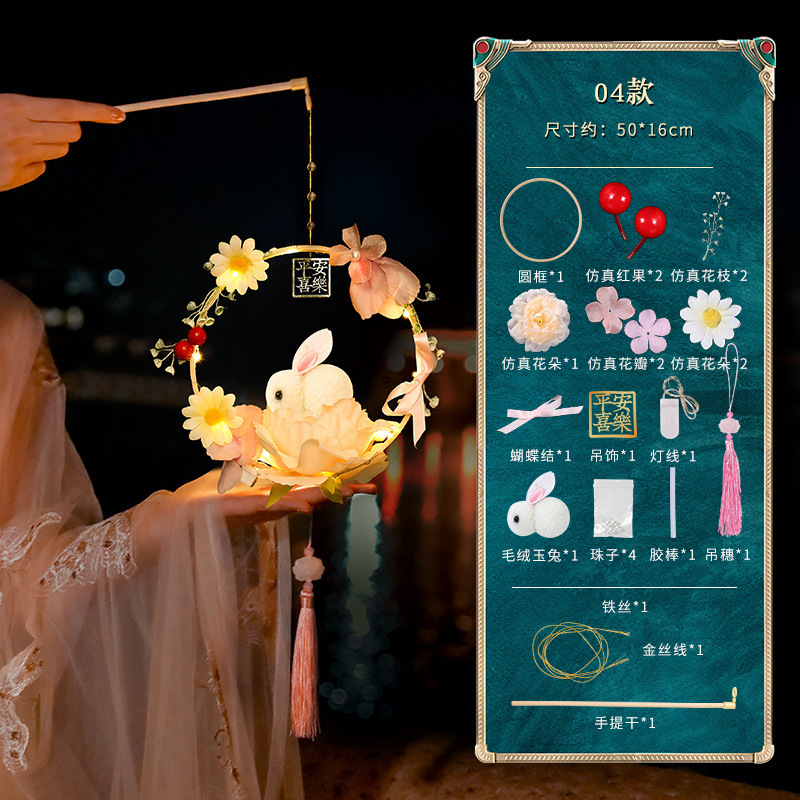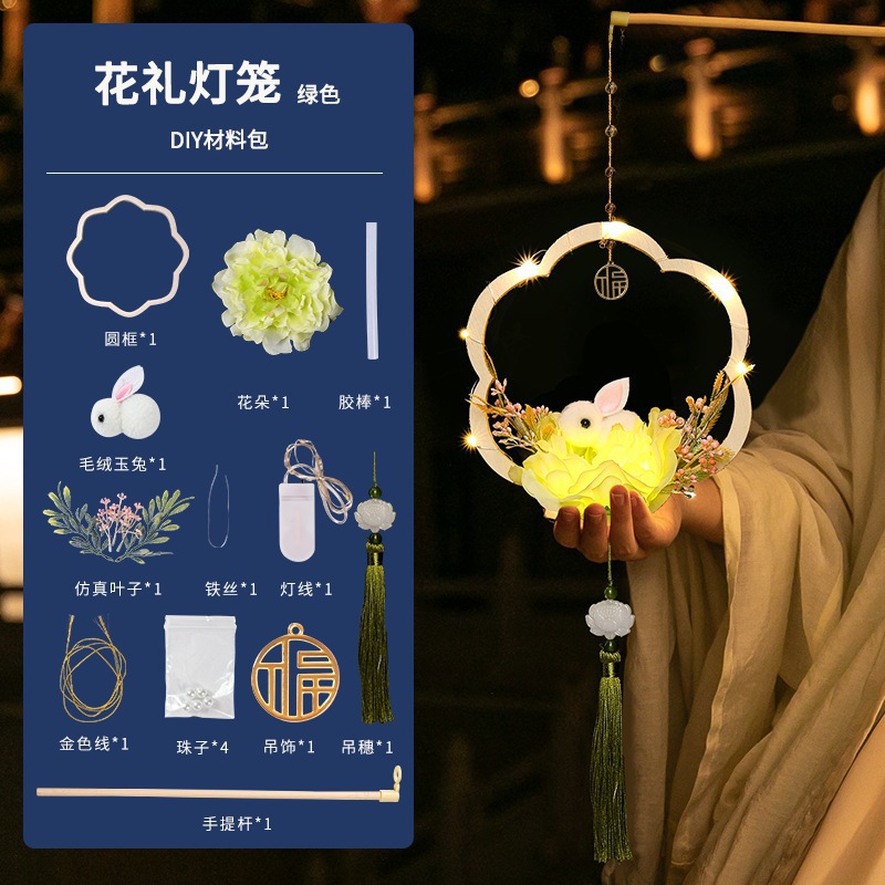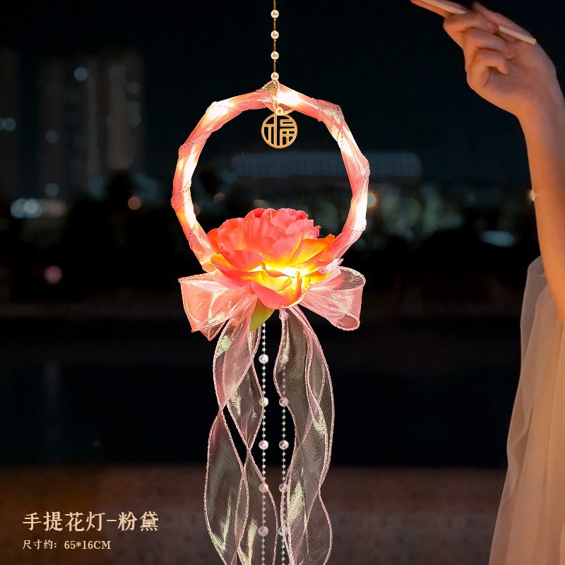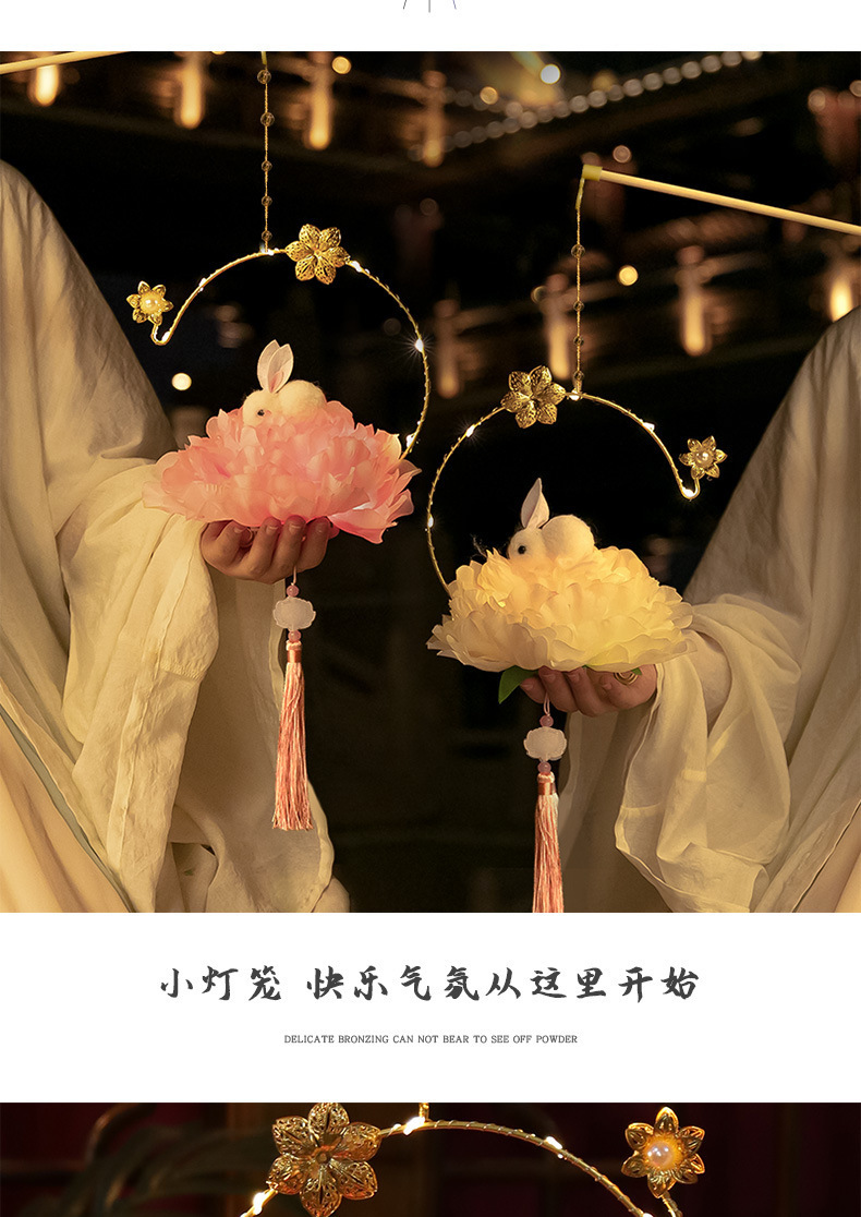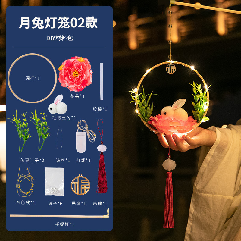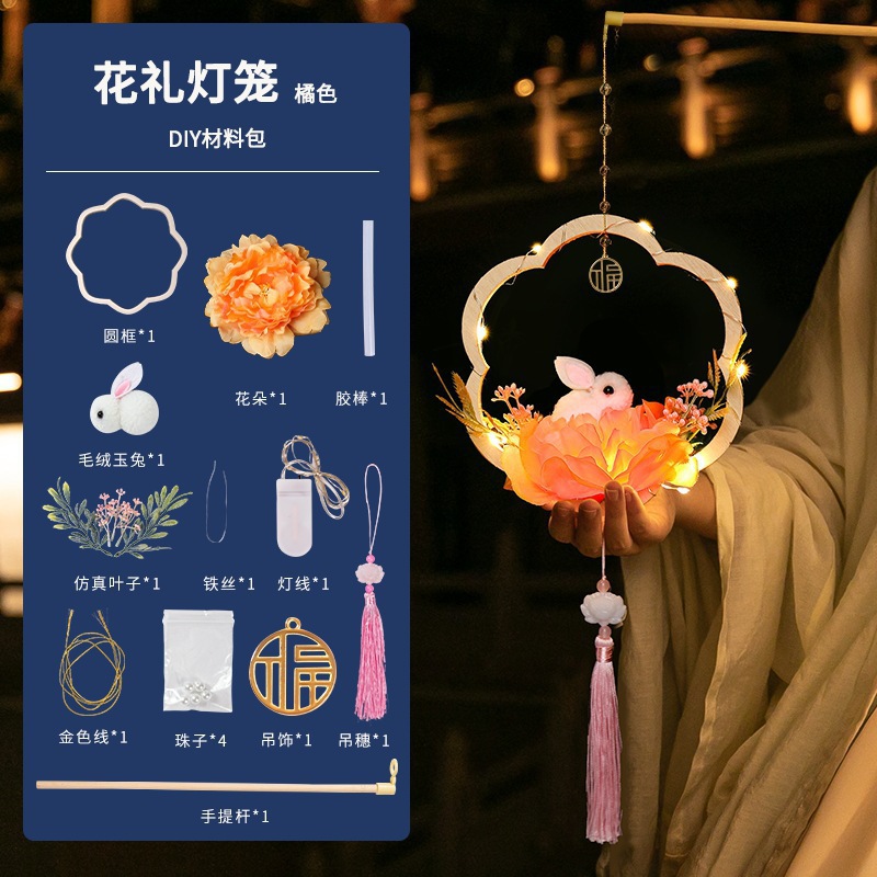 中秋节国庆牡丹手提宫灯发光水母灯笼儿童手工diy材料包手提花灯