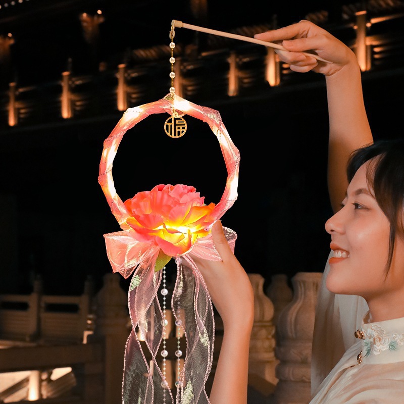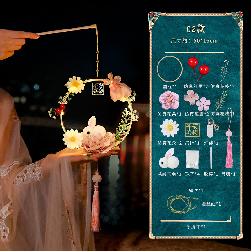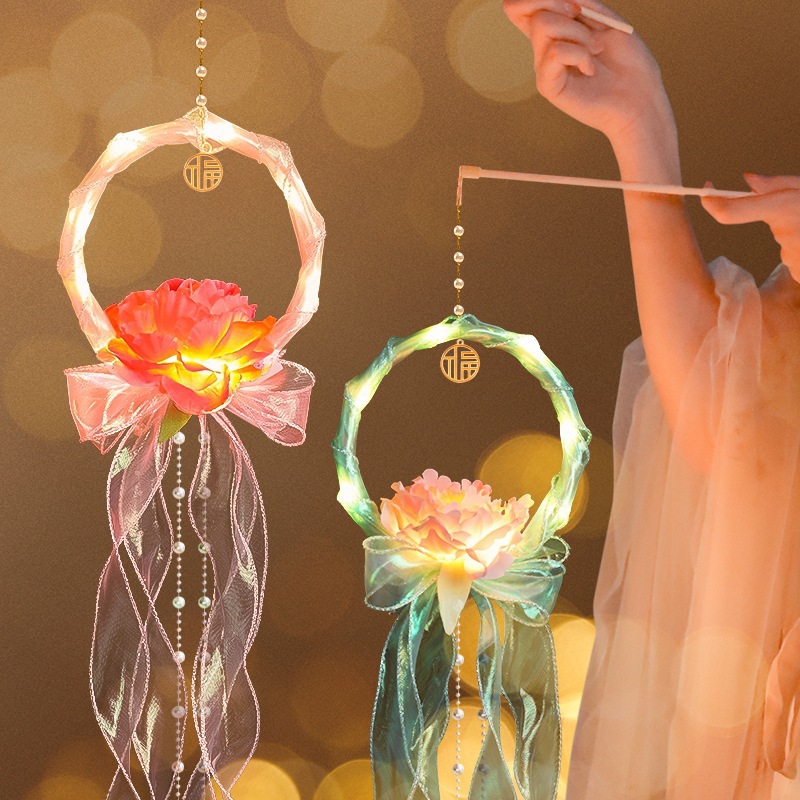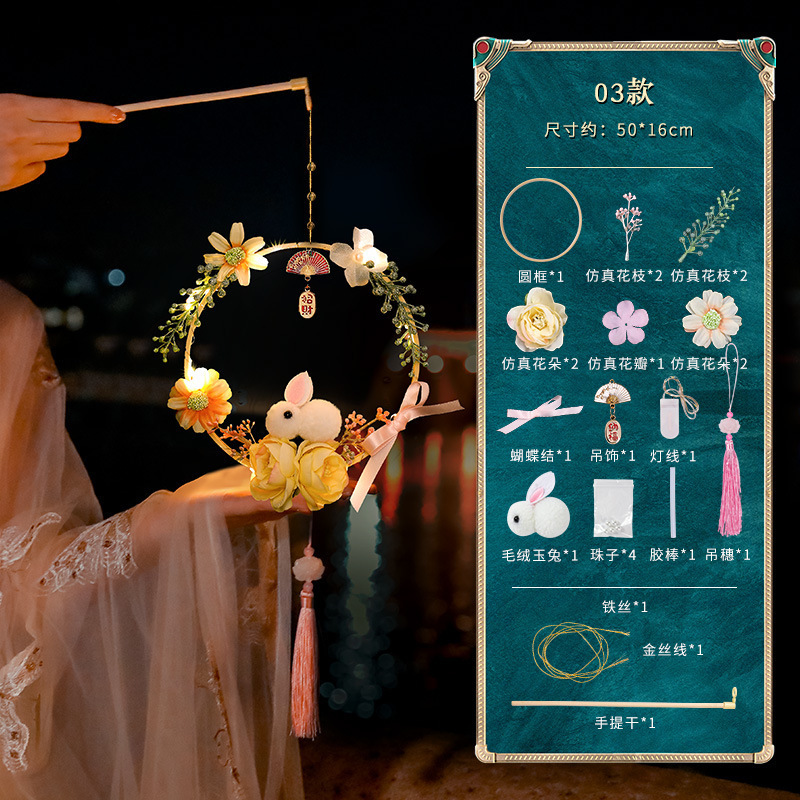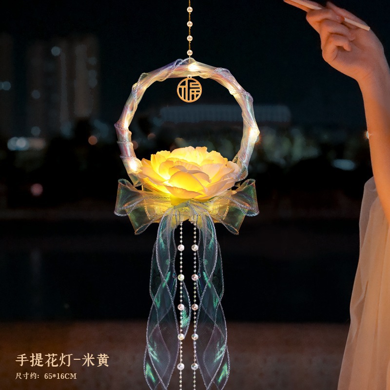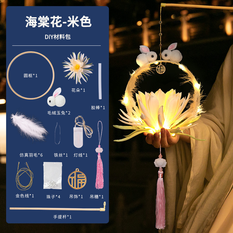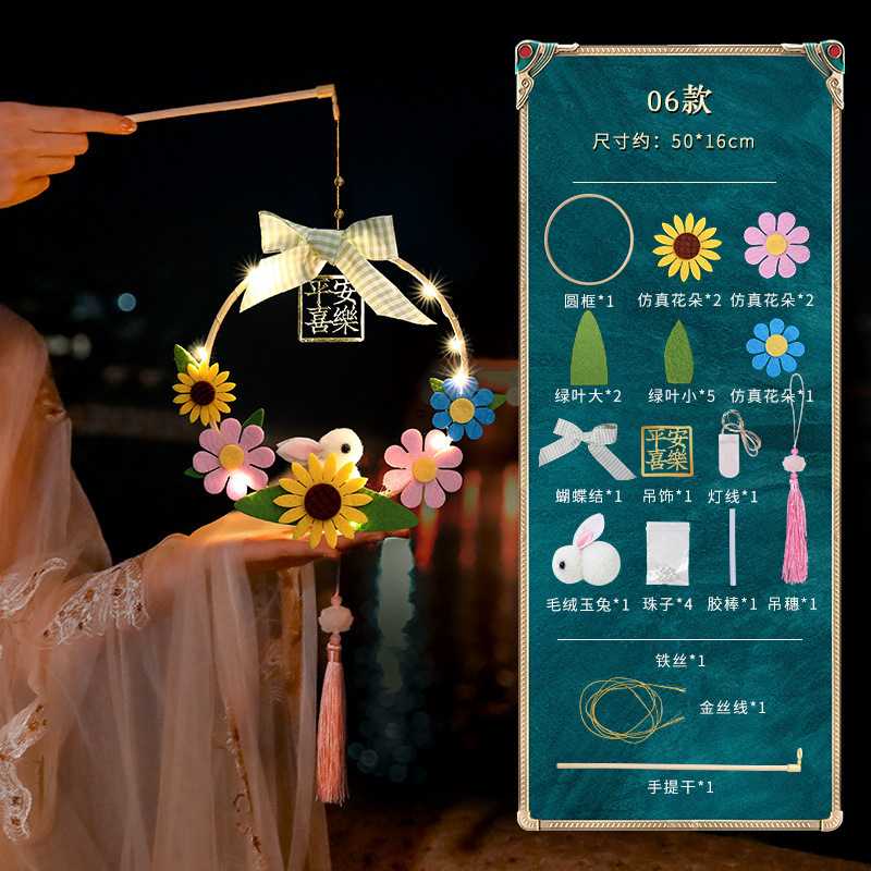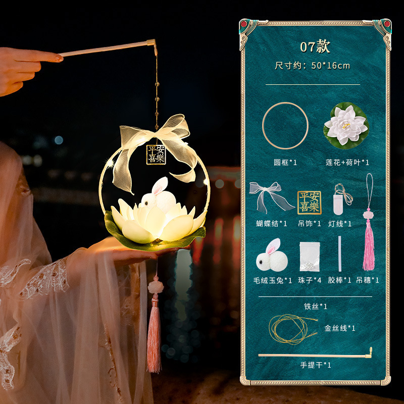 中秋节国庆牡丹手提宫灯发光水母灯笼儿童手工diy材料包手提花灯