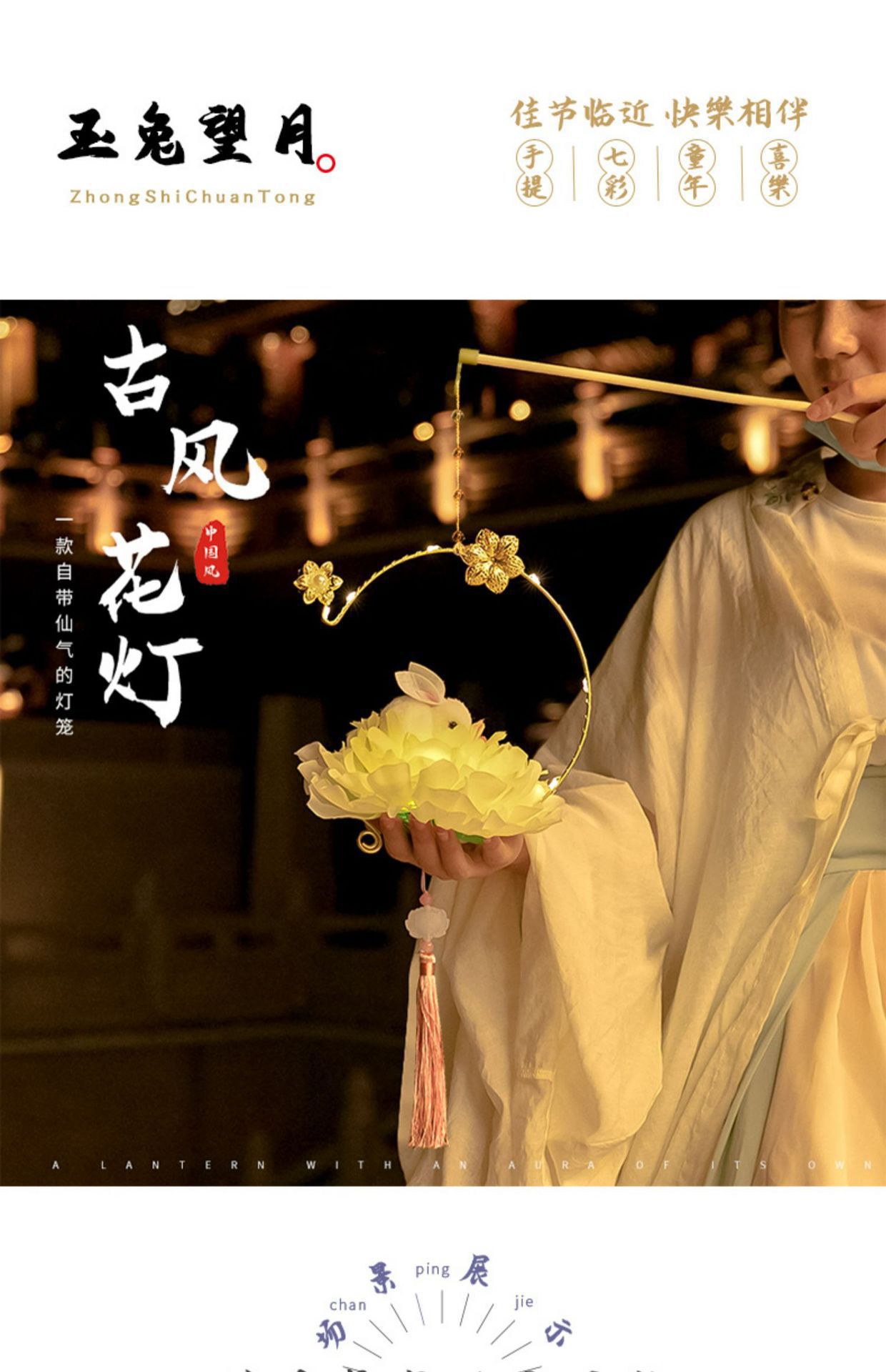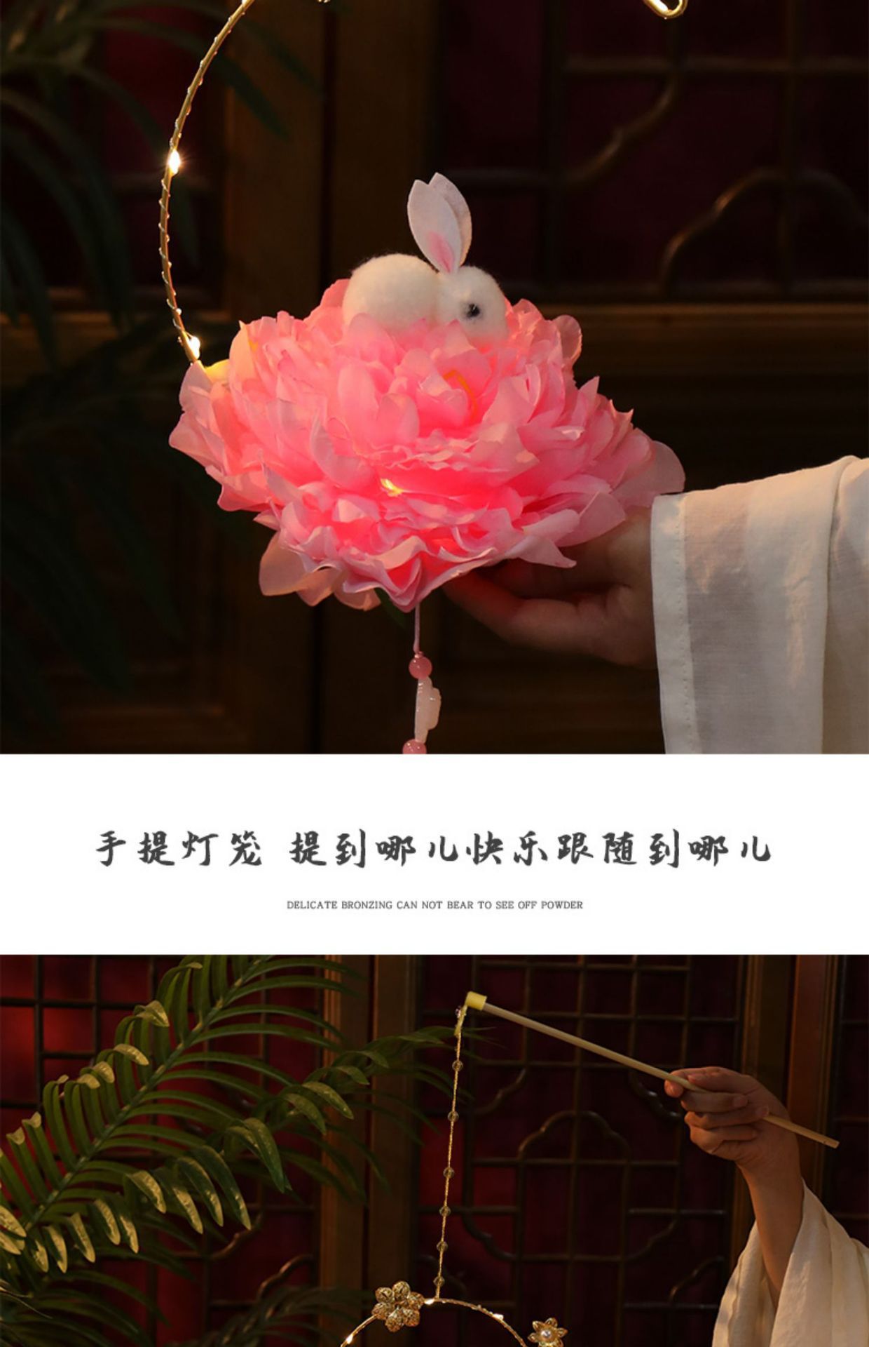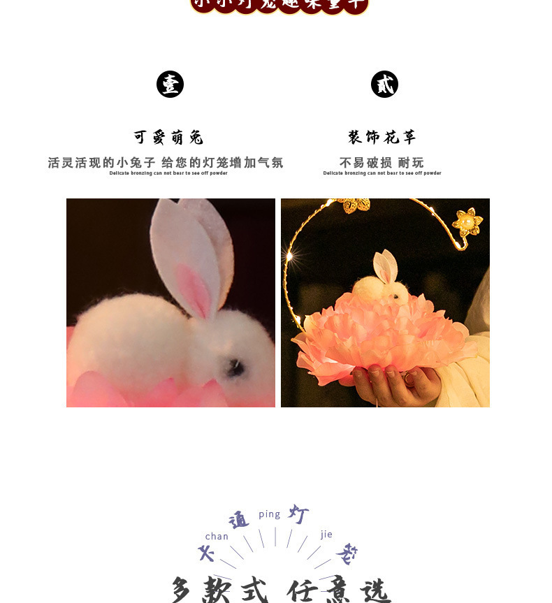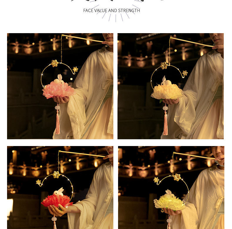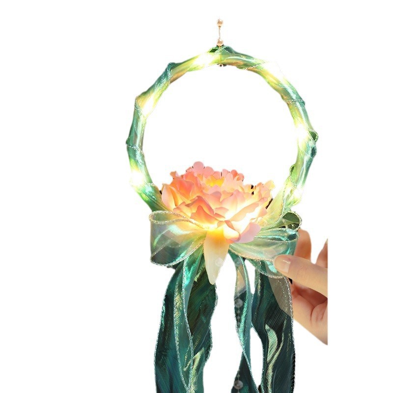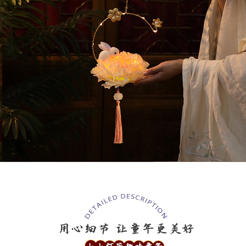 中秋节国庆牡丹手提宫灯发光水母灯笼儿童手工diy材料包手提花灯