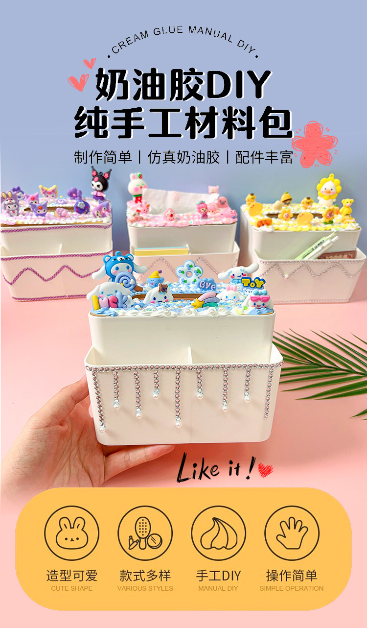 抽纸盒奶油胶DIY材料包学生收纳盒手工制作礼物家用客厅纸巾盒