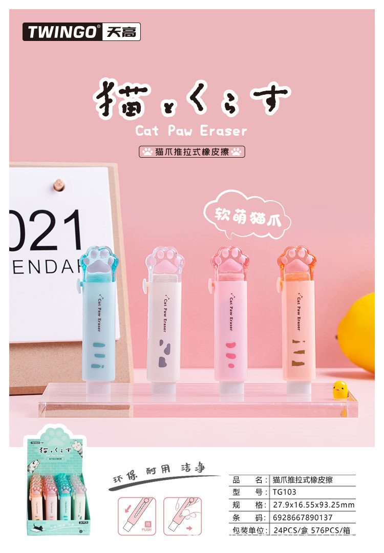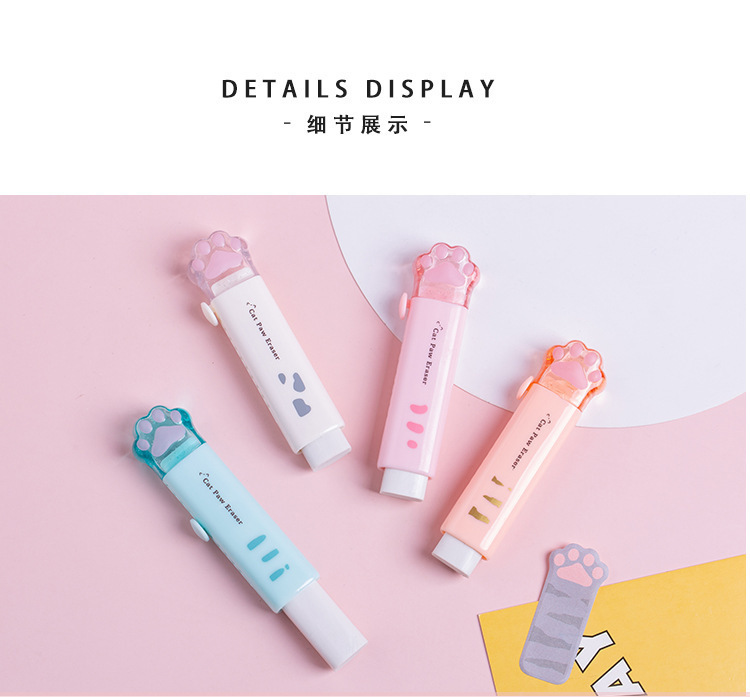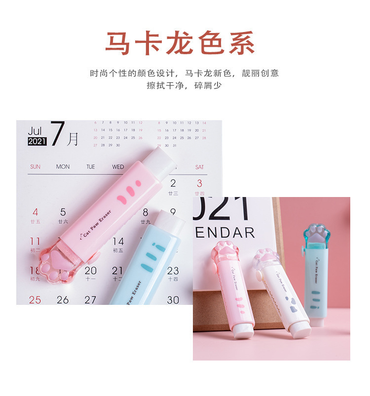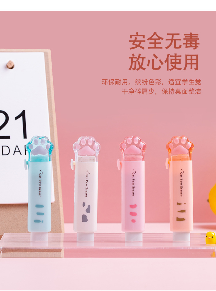 橡皮擦可伸缩推拉式创意卡通猫爪造型不留痕学生专用文具便携橡皮